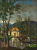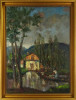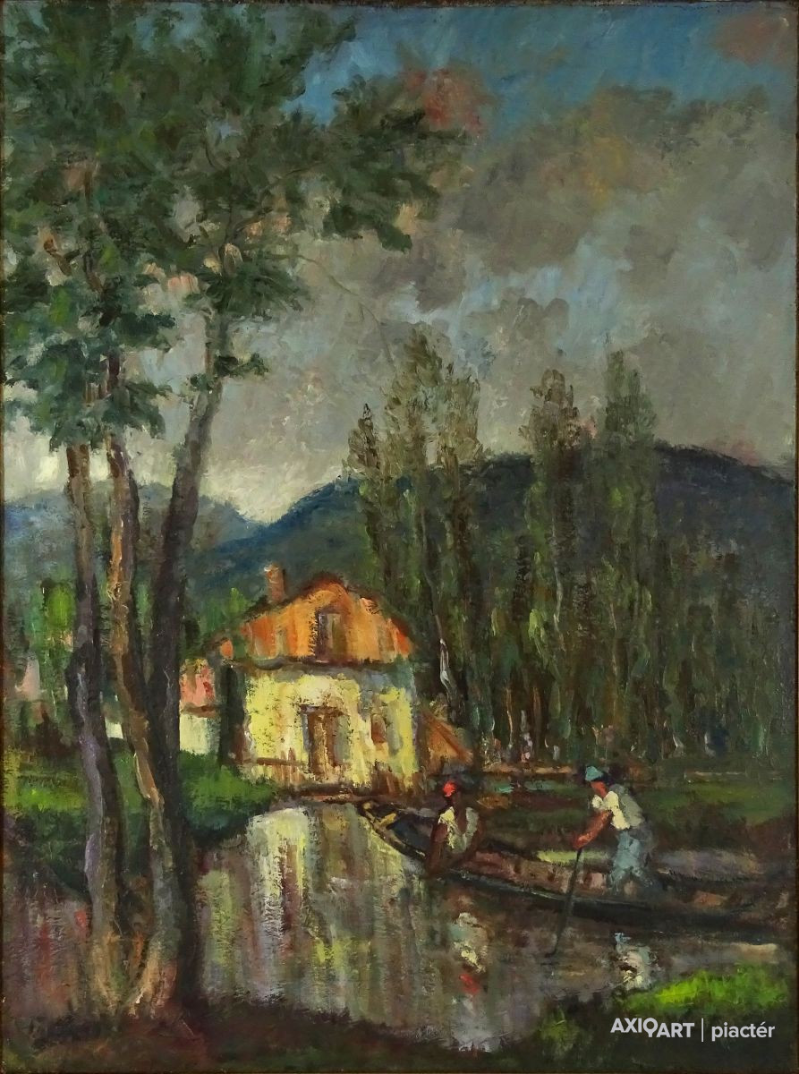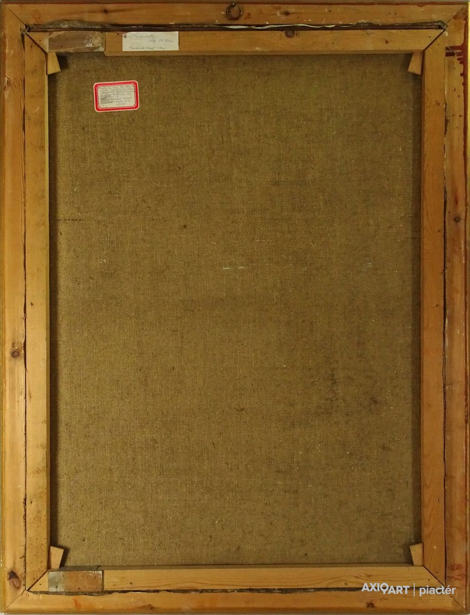 [FK2668/Bp301/4] A kép mérete: 50,5 x 80,5 cm keret nélkül. Készült: Olaj, Vászon A kép Moldován István (Kolozsvár, 1911) alkotása. Jelezve Jobbra lent "Moldován István" A festmény jó állapotban van. Keret: Ép A festmény hátoldalán a Képcsarnokvállalat raglapja láltható. Magyar festők és grafikusok életrajzi lexikona I-II. Festő. Tanulmányait Kolozsvárott, a Szépművészeti Főiskolán kezdte 1930-ban. A következő esztendőben a nagybányai Szépművészeti Iskolában Thorma János és Krizsán János korrektúráján képezte magát. 1931-ben a budapesti Képzőművészeti Főiskola hallgatója lett. Réti István, később Szőnyi István volt a mestere. Már mint főiskolás sok díjat és kitüntetést nyert. 1948-ban megkapta a római ösztöndíjat, de lemondva róla, Erdélybe ment. 1948-1950 között Erdélyben élt, és népművészetben gazdag vidékein festett. 1943-ban Kolozsvárott, 1946-ban Gyöngyösön, 1955-ben, 1959-ben és 1962-ben a Kulturális Kapcsolatok Intézetében, illetve a Csók Galériában rendezett egyéni bemutatókat. Ezen kívül több Európai országban, az USA-ban, Kanadában és Indiában is bemutatta munkáit. Eleinte sajátos atmoszférájú, lírai tájképeket, eleven színvilágú képmásokat festett, később mondernebb, erőteljesebben szerkesztett művekkel jelentkezett. A Pécsi Tanárképző Főiskola számára mozaikot készített. Erdély szerelmese volt. A székely népművészet gazdag formavilágának hatása döntő jelentőségűvé vált sokoldalú művészetében. Műv. díjak: a Szinyei Társaság elismerő oklevele, a Főváros festészeti-díja, "Kolozsvár a képzőművészetben" II. díj, állami ösztöndíj, római ösztöndíj, a Képzőművészek Szövetsége Észak-Magyarországi festészeti díja, SZOT festészeti díj. Több murális művet (mozaik) alkotott. A Magyar Nemzeti Galéria több alkotását őrzi. (M. L.: Műv. 1967/6, RI-NM) Magyar festők és grafikusok életrajzi lexikona I-II. Műgyűjtők és kereskedők kézikönyve Festő. Tanulmányait a kolozsvári Szépművészeti Főiskolán kezdte 1930-ban. A nagybányai szabadiskolában is megfordult. Itt Thorma János és Krizsán János korrektúráján képezte magát. 1931-ben Budapesten a Képzőművészeti Főiskola hallgatója lett. Réti István, később Szőnyi István volt a mestere. Már mint főiskolás sok díjat nyert. 1948-ban megkapta a római ösztöndíjat, de lemondva róla, Erdélybe ment. 1948-1950 k. Erdélyben élt, és népművészetben gazdag vidékein festett. 1943-ban Kolozsváron, 1946-ban Gyöngyösön, 1955-ben, 1959-ben és 1962-ben a Kulturális Kapcsolatok Intézetében, illetve a Csók Galériában rendezett önálló kiállítást. Ezen kívül több Európai országban, az USA-ban, Kanadában és Indiában is bemutatta műveit. Eleinte sajátos atmoszférájú, lírai tájképeket, eleven színvilágú képmásokat festett, később mondernebb, erőteljesebben szerkesztett művekkel jelentkezett. A Pécsi Tanárképző Főiskola számára mozaikot készített. Erdély szerelmese volt. A székely népművészet gazdag formavilágának hatása döntő jelentőségűvé vált sokoldalú művészetében. 1942-ben megkapta a Szinyei Társaság elismerését, és a Főváros festészeti-díjat,1943-ban elnyerte a "Kolozsvár a képzőművészetben" c. díjat. 1947-ben állami ösztöndíjat,1948-ban a római ösztöndíjat, 1972-ben a Képzőművészek Szövetsége Észak-Magyarországi festészeti díját kapta meg. A MNG több művét őrzi. (M. L.: Műv.-1976/6) Magyar festők és grafikusok adattára Tanulmányait Kolozsvárott a Képzőművészeti Főiskolán, majd Nagybányán Thorma János és Krizsán János irányítása mellett kezdte, 1931-től Budapesten megszakításokkal a Képzőművészeti Főiskolán Réti István és Szőnyi István növendékeként fejezte be. 1949-ben és 1950-ben ösztöndíjjal dolgozott Erdélyben, majd hosszú tanulmányutakra indult Nyugat-Európába, az Egyesült Államokba, s a Szovjetunióba. Először Kolozsvárott lépett a nyilvánosság elé 1943-ban, majd 1946-ban Egerben és Gyöngyösön, 1947-ben Miskolcon, 1948-ban Hatvanban, 1955, 1961 és 1981-ben a Csók Galériában, 1959-ben a KKI-ben, 1960-ban Nagykanizsán, 1963-ban Kiskunfélegyházán, 1966-ban Debrecenben, 1969 és 1975-ben Békéscsabán, 1971-ben a Mednyánszky Teremben, 1973-ban Gyöngyösön és Debrecenben, 1977-ben Egerben, 1979-ben Veszprémben, 1983-ban Miskolcon, 1984-ben Csepelen, 1986-ban a Vigadó Galériában rendezett önálló kiállítást. Külföldi kiállításai: Moszkva, Varsó, India, Szófia, Párizs, Bukarest, Belgrád, New York, Montreál és Toronto. Eddig közel kétezer színes táblaképet festett, de szívesen foglalkozik mozaikkészítéssel is. 1964-ben a Pécsi Pedagógiai Főiskola, 1968-ban a Salgótarjáni Kórház, 1969-ben a názáreti templom és 1970-ben a Videoton Vállalat díszterme részére mozaikot készített. - Erdély szerelmese. A székely népművészet gazdag formavilágának hatása döntő jelentőségűvé vált festészetében. Olyan formanyelvet alakított ki magának, amely színvilágában és summázó formaalakításában sajátos erdélyi zamat érződik, ugyanakkor korszerűen modern is konstruktivista stílusa. Munkásságát 1942-ben a Szinyei Társaság elismerésével és a Fővárosi festészeti-díjjal, 1943-ben Római-ösztöndíjjal, 1947-ben Állam ösztöndíjjal (Románai), 1963-ben a SZOT festészeti-díjával, 1972-ben a Képzőművészek Szövetsége Észak-Magyarországi festészeti-díjával tüntették ki. - Irod.: Bíró Béla: Kolozsváry Moldován István. Erdélyi Helikon, 1943.; Felvinczi Takács Zoltán: Kolozsváry Moldován István. Kolozsvár, 1943.; Dutka Mária: Magyar Nemzet, 1961.; Maksay László: Moldován István. Művészet, 1965.; D. Fehér Zsuzsa. Moldován István, Bp. 1971.; Theisler G