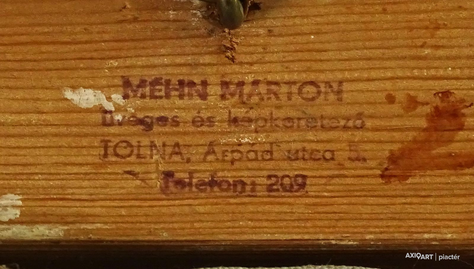 Hátoldalán címke, rajta felirat: