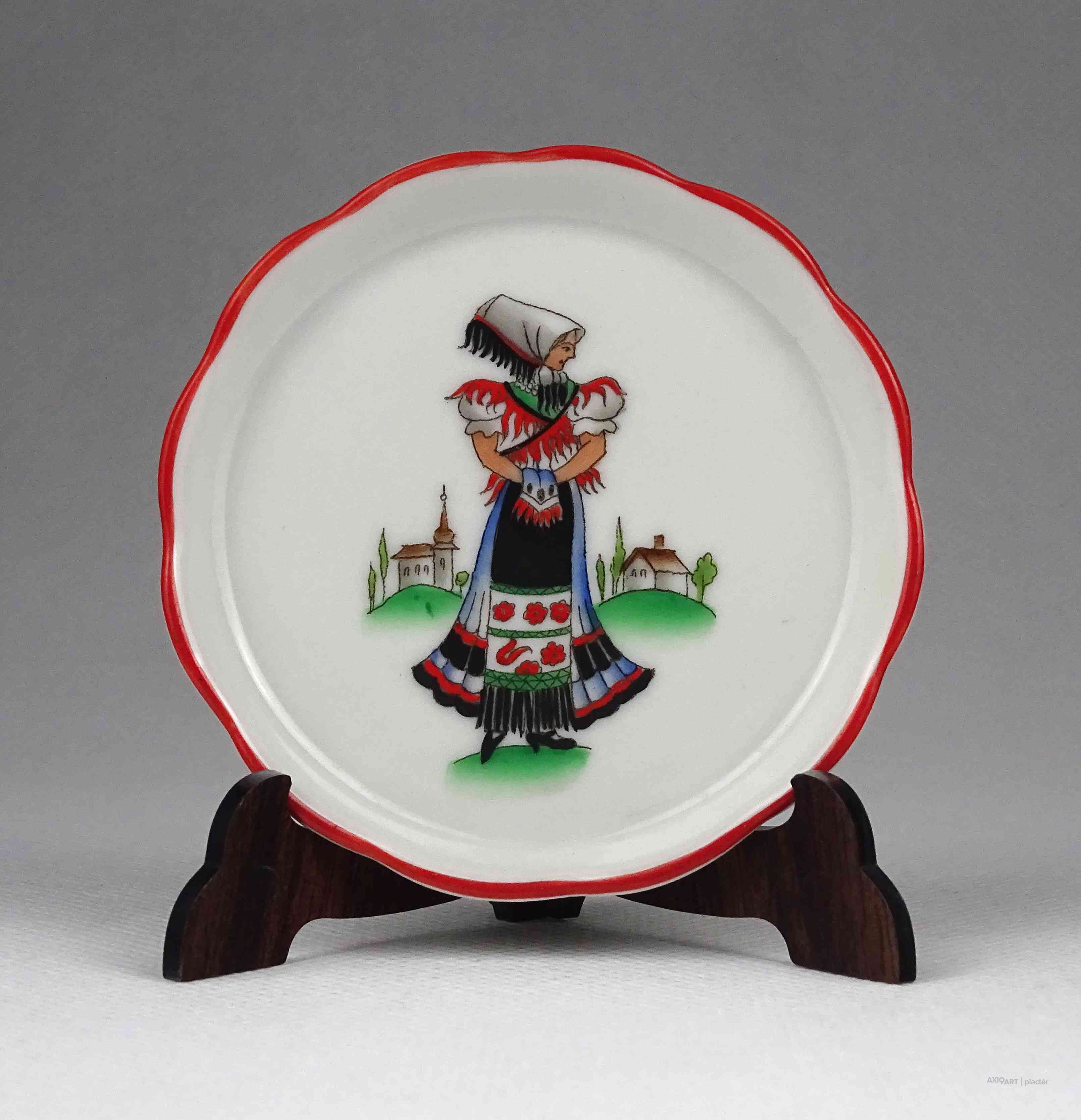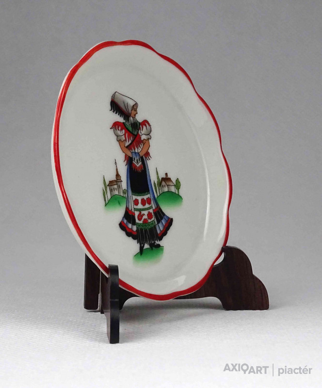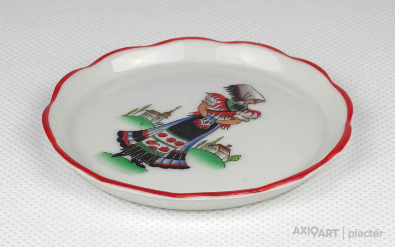 Matyó népviseletes nőalakkal díszített Herendi porcelán tál tálka hamutál