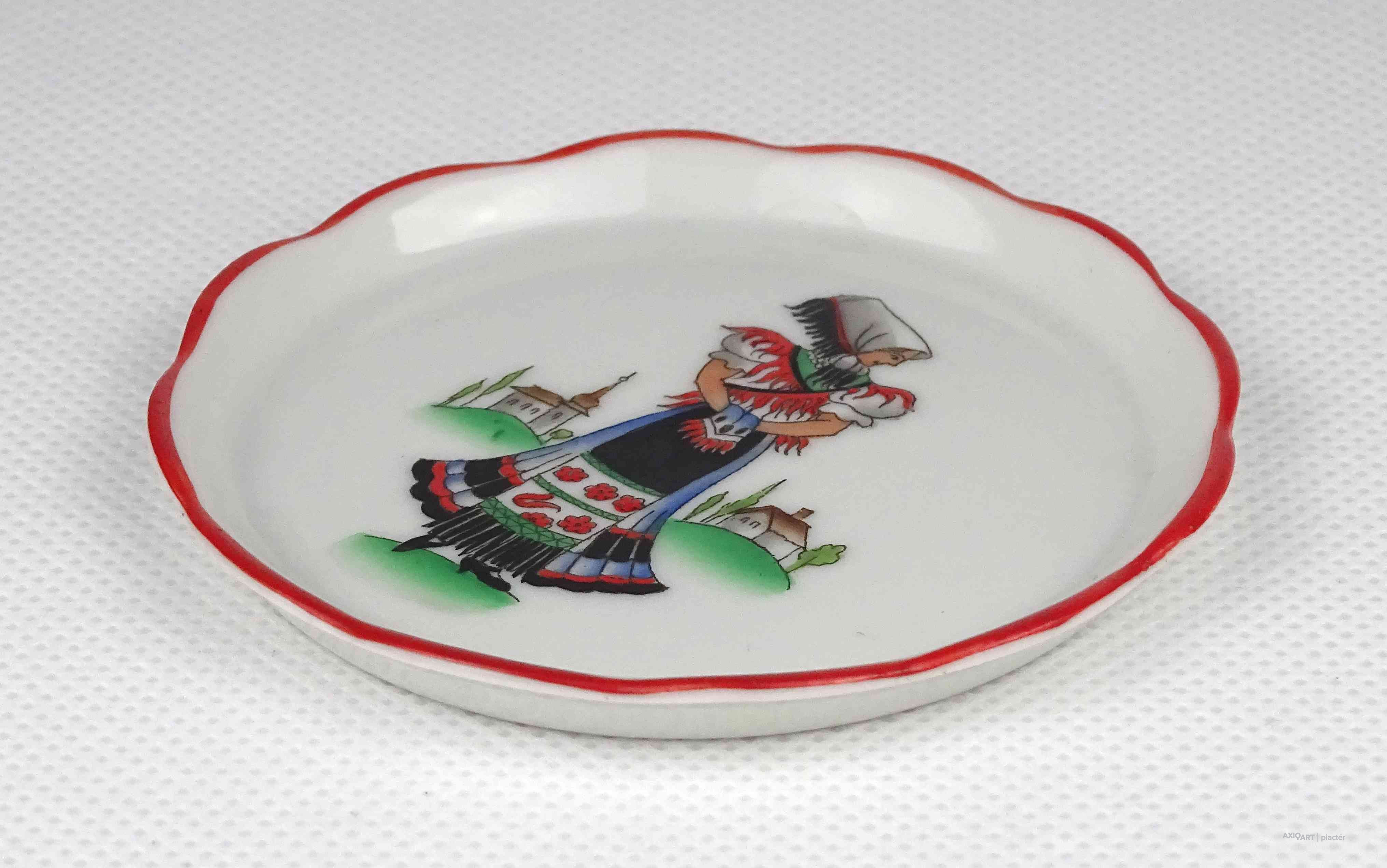 Hibátlan állapotú, Matyó népviseletes nőalakkal díszített Herendi porcelán tálka, hamutál.