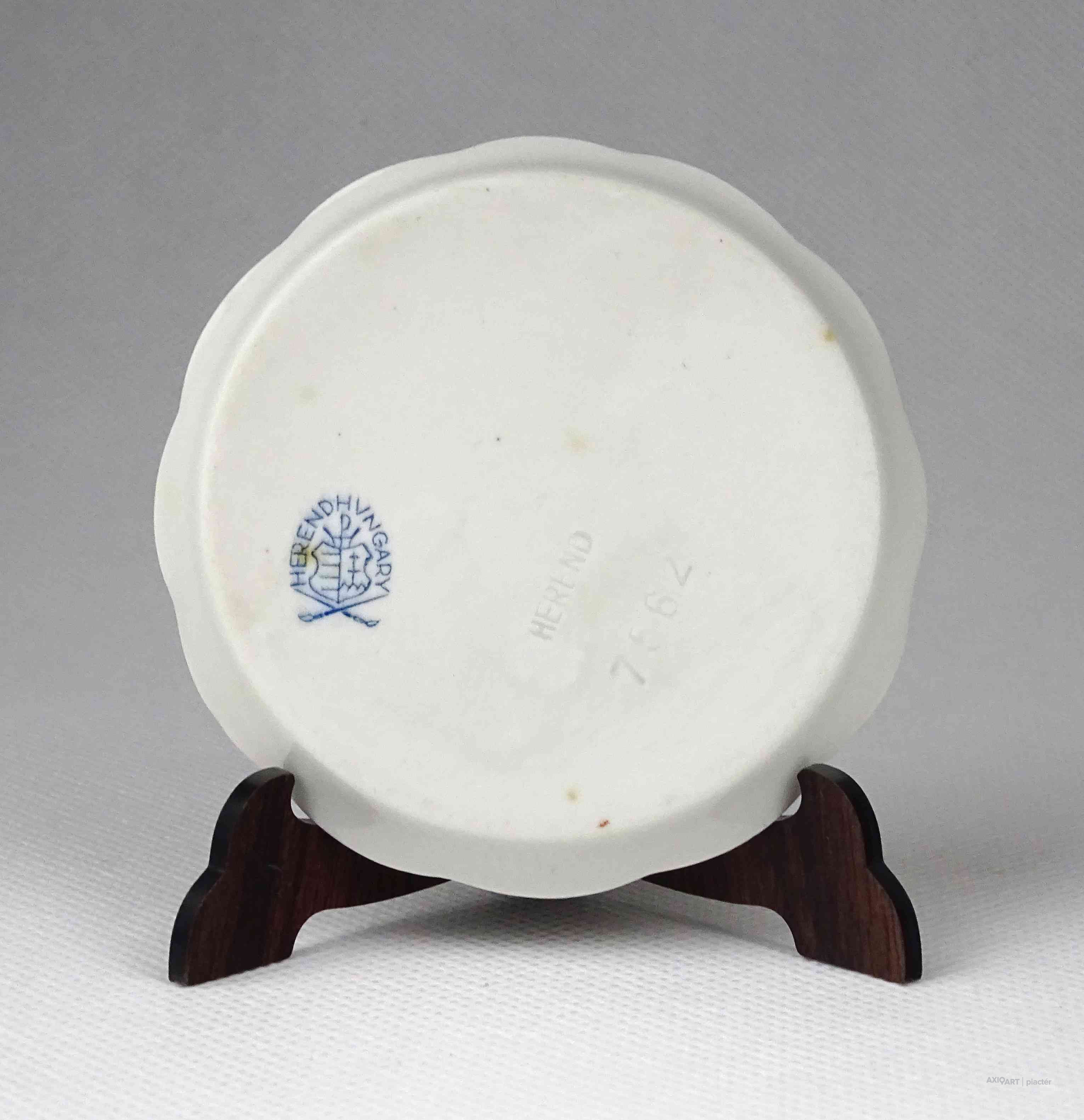 [1Y450/Z022] Hibátlan állapotú, Matyó népviseletes nőalakkal díszített Herendi porcelán tálka, hamutál. Alján kék Herendi jelzés: HEREND HUNGARY Mélynyomással: HEREND Formaszám: 7562 Szélesség: 8.1 cm Súly: 0.03 kg