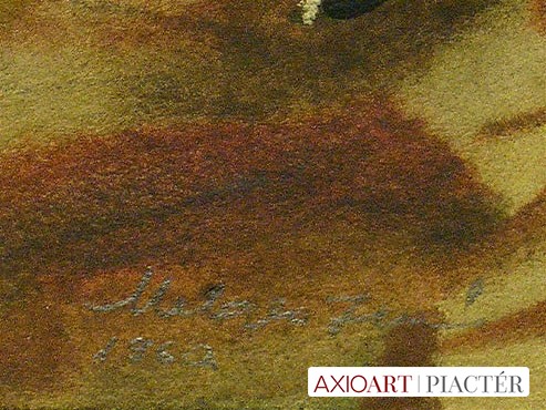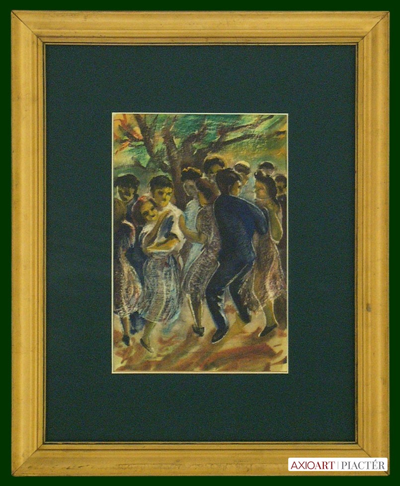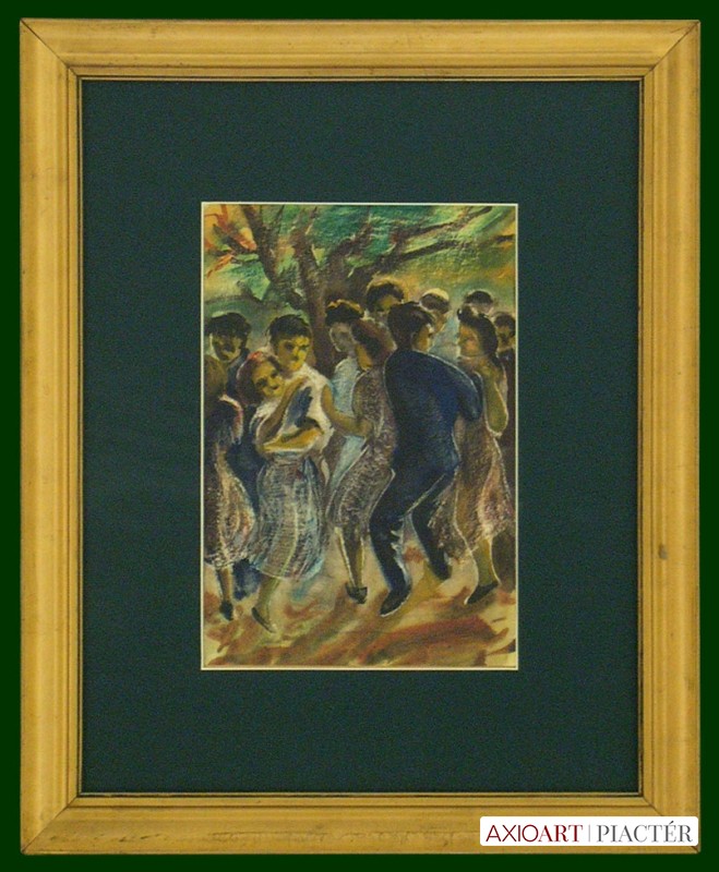[FK0037/Z018] A kép mérete: 50 x 70 cm keret nélkül. Készült: Olaj, Vászon A kép Paizs László (Szentpéterúr, 1935) alkotása. Jelezve Jobbra lent "P. L." A festmény jó állapotban van. Keret: Ép A festmény hátoldalán a Képcsarnokvállalat címkéje található. Magyar festők és grafikusok életrajzi lexikona I-II. Festő. Tanulmányait a budapesti Iparművészeti Főiskolán végezte 1959-ben. Z. Gács György, Rákosy Zoltán és Szentiványi Lajos növendéke volt. A '60-as évek első felében hagyományosabb felfogású olajképeket festett, mozaikokat, freskókat, utóbb a pop-art körébe tartozó, a francia Arman munkáival rokon műveket alkotott. 1961 óta kiállító művész. Egyéni (Fényes Adolf Terem, Csók Galéria, Műcsarnok, Magyar Nemzeti Galéria, Halászbástya, Bástya Galéria, Vigadó Galéria, Budapest Galéria, Győr, Szombathely, Szeged, Zalaegerszeg, Duisburg, Aix-en-Provence, stb). és vegyes (Ernst Múzeum, Műcsarnok, Óbuda Galéria, Magyar Nemzeti Galéria, Csók Galéria, Vigadó Galéria, Székesfehérvár, Kaposvár, Pécs, Hódmezővásárhely, Firenze, Milano, Padova, Nápoly, Velence, Düsseldorf, Aachen, Genf, stb) tárlatokon vett részt. 1980-ban Munkácsy-díjjal jutalmazták, 1988-ban Érdemes Művész kitüntető elismerésben részesült. Munkáit őrzi a Magyar Nemzeti Galéria, a Fővárosi Képtár, a szombathelyi képtár, a pécsi Janus P. Múzeum, a székesfehérvári István Király Múzeum és a dunaszerdahelyi Kortárs Magyar Galéria. (H.B.: Műv, 1972/4, K.Gy.: Műv. 1977/2, K.G.: Műv. 1978/10, M.L.: Műv, 1983/5, R.G.: Műv, 1987/9, Sz.Gy.: Új Műv. 1995/4, MK) Magyar festők és grafikusok életrajzi lexikona I-II. Műgyűjtők és kereskedők kézikönyve Festő. Tanulmányait a bp.-i Iparművészeti Főiskolán végezte. Mozaikokat ferskókat, utóbb a pop-art körébe tartozó, a francia Arman műveivel rokon műveket alkotott. Mozaikok: a Szegedi Megyei Tanács, a Pécsi Óvoda, a Gödöllői Agrártudományi Egyetem. Freskók: Budapest - Csatárka úti Gyermekotthon. 1971-ben a Fényes Adolf Teremben volt kiállítása, 1983-ban pedig a szegedi Móra Ferenc Múzeumban nagyszabású tárlatokon mutatta be munkáit. 1988-ban érdemes művész kitüntető elismerésben részesült. (MK) Magyar festők és grafikusok adattára Az Iparművészeti Főiskolán végzett 1959-ben. Mozaikokat (Szeged, Megyei Tanács; Pécs, Óvoda; Gödöllő, Agrártudományi Egyetem), freskókat (Budapest, Csatárka úti Gyermekotthon), újabban a pop art körébe tartozó, a francia Arman műveivel rokon műveket alkotott. 1971-ben a Fényes Adolf Teremben nyílt kiállítása. 1983 februárjában a szegedi Móra Ferenc Múzeumban megrendezett nagyszabású tárlaton mutatta be alkotásait. 1988-ban érdemes művész kitüntető elismerésben részesült. - MK Művészeti lexikon I-IV. (Szentpéterur, 1935. dec. 26.- ): festő. Az Iparművészeti Főiskolán 1959-ben végzett Rákosy Zoltán, Z. Gách György és Szentiványi Lajos növendékeként. Épületdiszítő mozaikokat, (Szeged, Megyei Tanács, 1961; Pécs, Óvoda, 1964), műanyagfreskókat (Bp., Csatárka úti Gyermekotthon, 1964) és gobelinterveket készít. Kortárs magyar művészeti lexikon I-III. Festő, szobrász, grafikus. 1959: MIF, mesterei: Z. Gács György, Rákosy Zoltán, Szentiványi Lajos. 1980: Munkácsy-díj; 1988: érdemes művész. Főiskolás éveinek második felében, majd azt követően számos murális munka kivitelezésében vett részt, Fónyi Géza, Konecsni György, Z. Gács György, Rákosi Zoltán és Domanovszky Endre mellett dolgozva. A 60-as évek első felének hagyományosabb fölfogású olajképeket festett. 1964-ben a Velencei B.-n megismerkedett az amerikai pavilonban a pop art Európában akkor még újnak számító törekvésével, és részben ez inspirálta, hogy 1967-ben textil, fém, bőr anyagú "varrottas" képeket küldjön az FKS éves tárlatára; a megnyitó előtt többek között az ő munkáit is eltávolították a falról. A 70-es években pop art-os objekteket (A trónörököspár politikai gyilkosság áldozata lett, 1970, plexiüveg, újság, szarvasbogarak), majd konstruktív, átlátszó plexiüveg plasztikákat készített belső fénytörő határfelületekkel. A 80-as években készültek az anyagában színezett, konstruktív, nagyméretű poliészter szobrai, majd színes poliészter táblaképeket alkotott, mesterségesen roncsolt felületekkel, mintha régészeti leletek vagy atomtámadás utáni festmény-szurrogátumok lennének. Ekkor kezdett organikus plaszikájú bronzszobrokat is mintázni. A 90-es években, a táblaképek és szobrok mellett nagyméretű, egyedi grafikákat készített, formavilágában némileg a roncsolt táblaképekből kiindulva, de szinte kizárólag az emberi alakból elvonatkoztatott torzókat megjelenítve. Ek: 1966: Művészklub, Győr; 1971: Fényes A. T.; 1972: Bercsényi 28-30 G.; 1973: BME B-épület; 1976: Csók G.; 1977: G. Hildebrandt, Duisburg (NSZK); 1979: Bástya G., Halászbástya; Helyőrségi Műv. H., Nagyatád; József A. Műv. Közp., Szeged; Göcsej M., Zalaegerszeg; 1982: Bezzegh G., Küsnacht (CH); 1983: Móra F. M., Szeged; 1987: Műcsarnok (kat.); MNG; 1988: Pandora G., Badacsonytomaj; 1989: Parktheatter, Iserlohn (NSZK); Qualitas G.; Hevesi S. Színház, Zalaegerszeg; 1990: Vasarely Fondation (Ferdinánd Judittal, Fóth Ernővel), Aix-en-Provence (FR); 1994: Vigadó G.; 1997: Pest Center G.; 1998: Budapest G. (kat.); 1999: Pest Center G. (kat); G. Arcis, Sárvár; MMA, Bp.; 2001: SZK, Szhely; Ernst M. (kat.) Vcsk: 1961, 1964, 1966: FKS, Ernst M.; 1962: 9. Magyar Képzőműv. kiállítás, Műcsarnok; 1967: Mai magyar festészet, Új-Delhi; 1969: Vas megyei művészek, Savaria M., Szhely; V. Orsz. Grafikai B., Miskolc; 1971: Új művek, Műcsarnok; 1972: Fiatal művészek Budapestről. Likovni Salon, Újvidék (YU); 1972, 1973: Balatonboglár