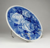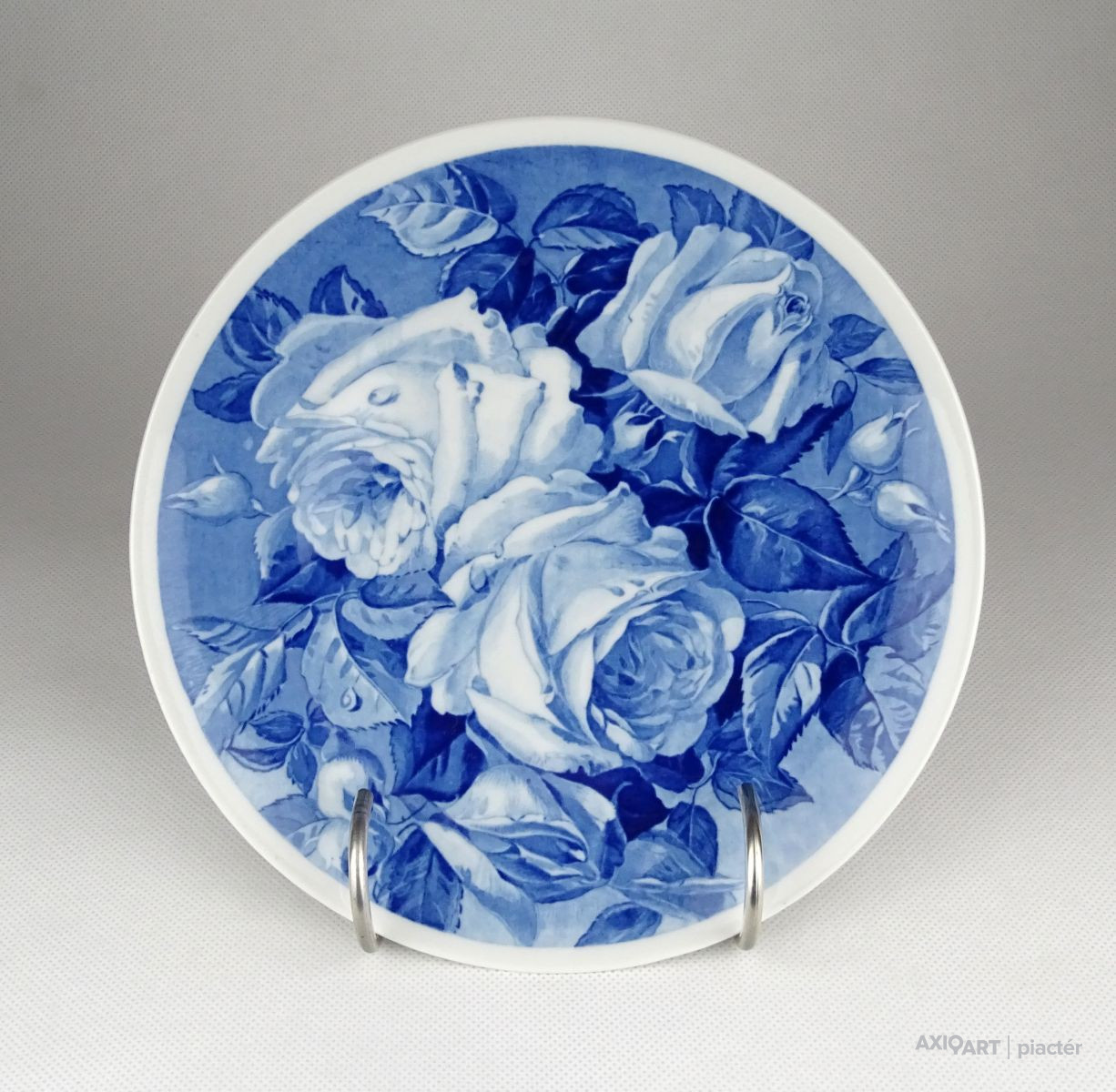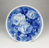Hibátlan állapotú, jelzett, kék-fehér rózsadíszes porcelán falitányér, dísztányér, falra akasztási lehetőséggel.