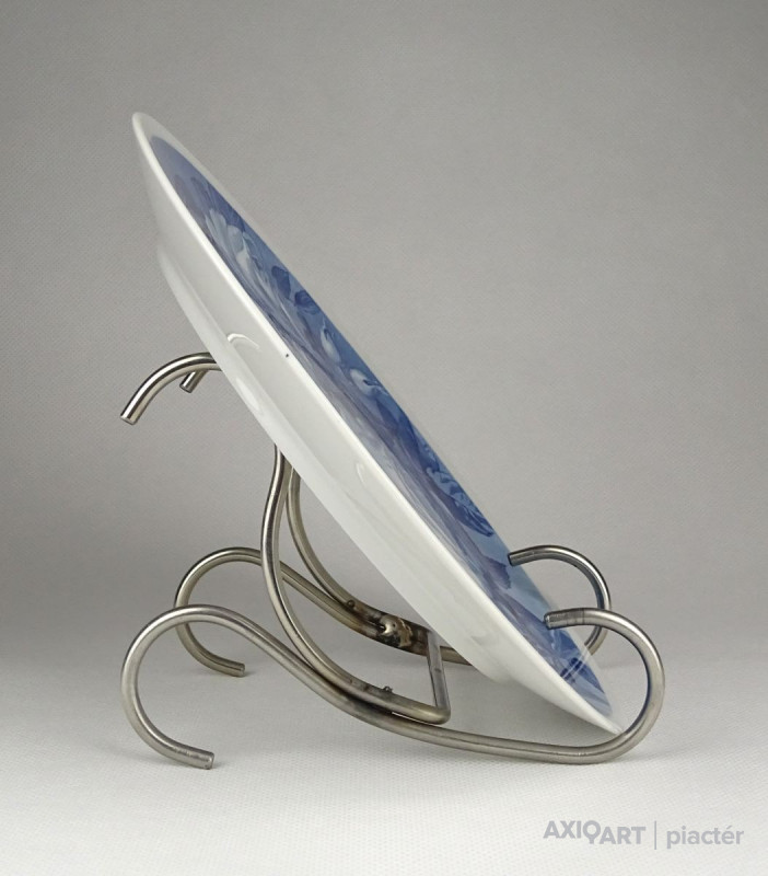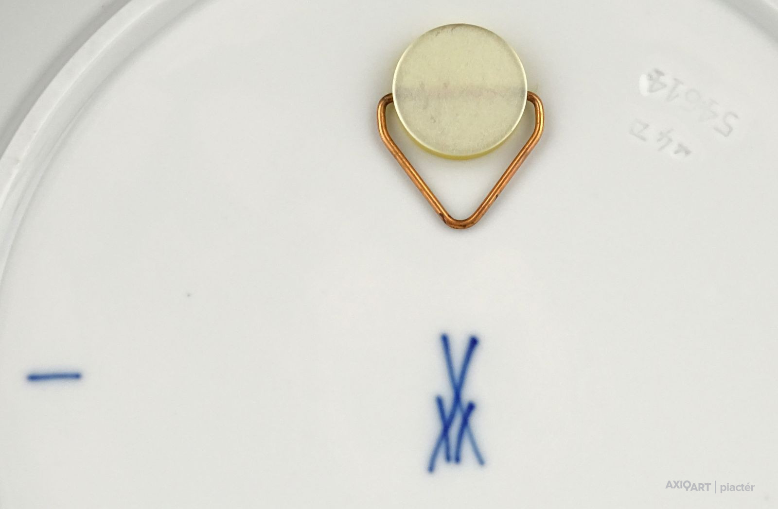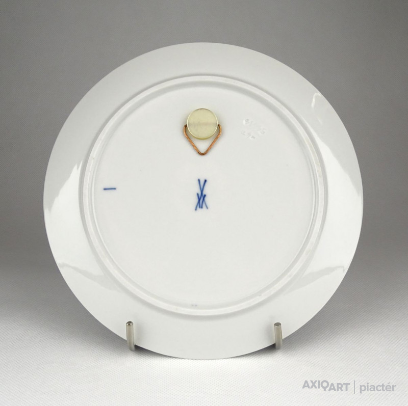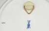 [0Z218/X211] Hibátlan állapotú, jelzett, kék-fehér rózsadíszes porcelán falitányér, dísztányér, falra akasztási lehetőséggel. Alján kék kardos jelzés, lásd fotó. Formaszám: 54614 Szélesség: 18.5 cm Súly: 0.3 kg