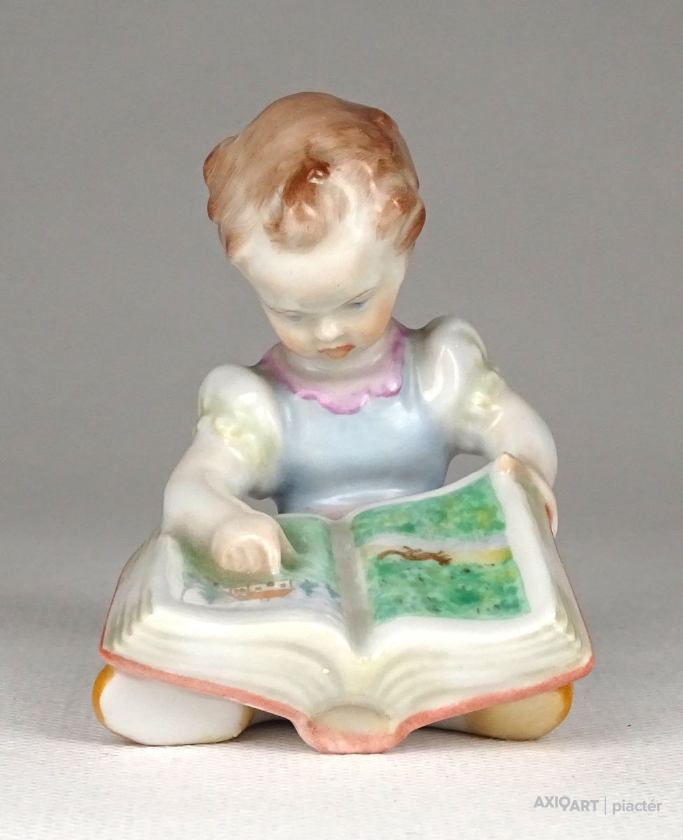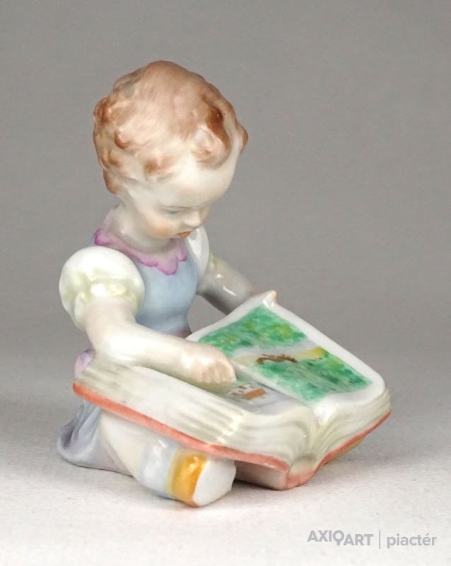 Mesekönyvet olvasó Herendi porcelán kislány figura