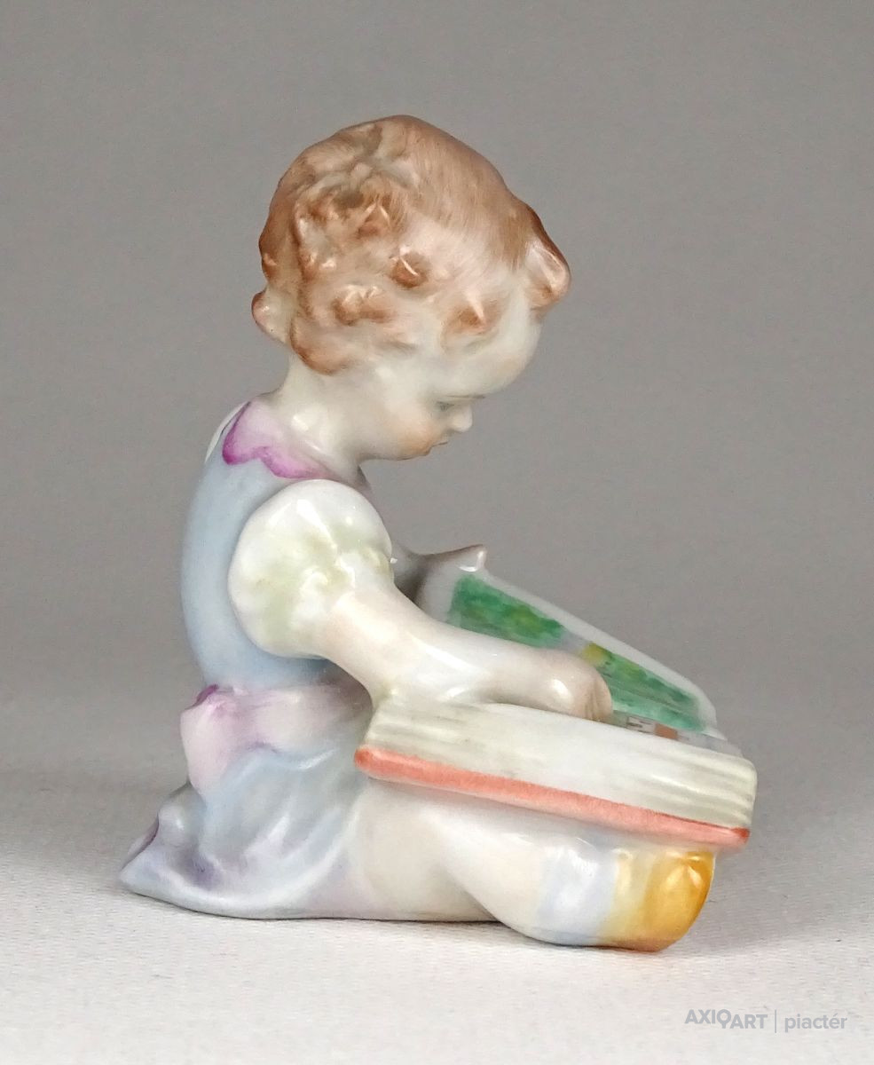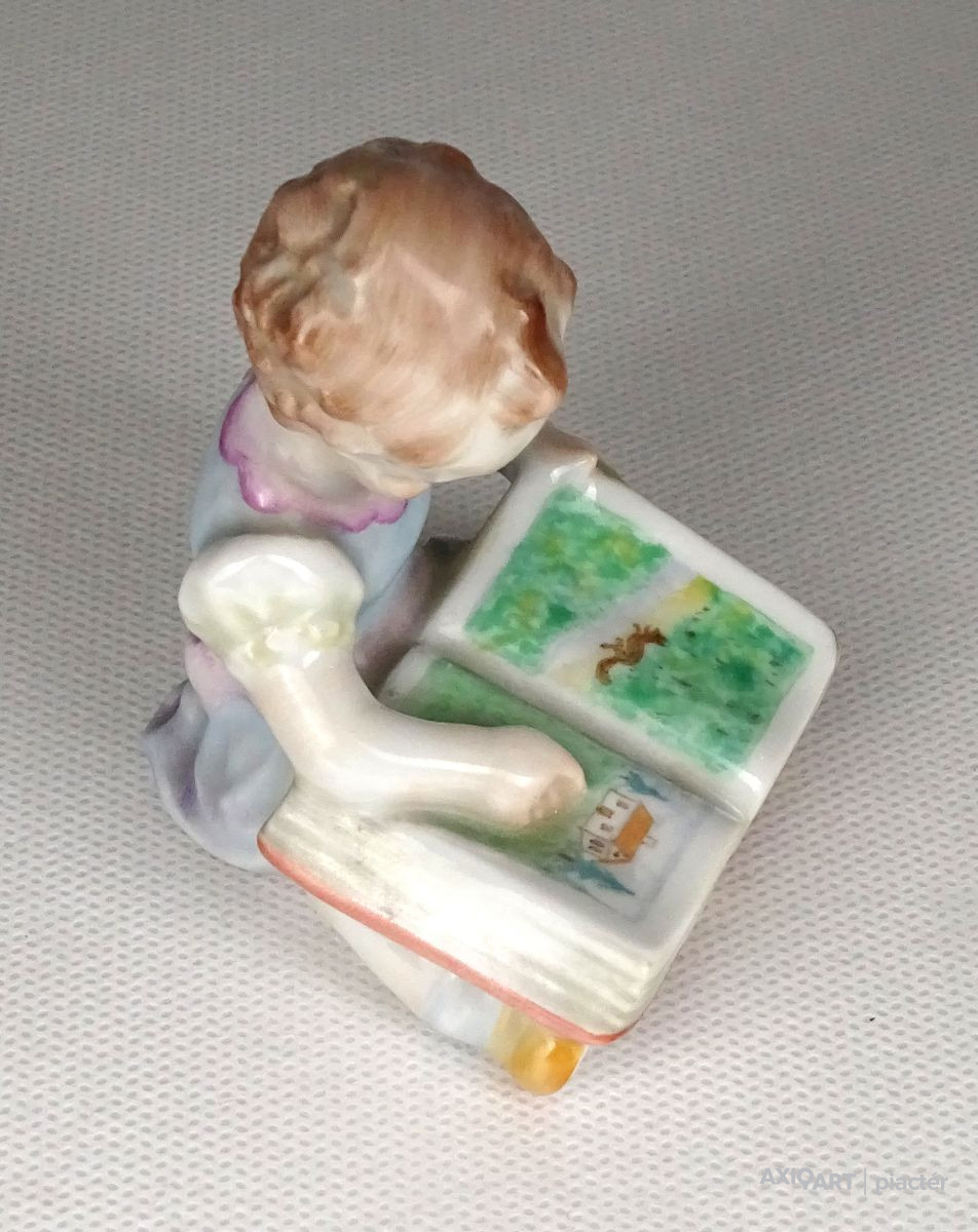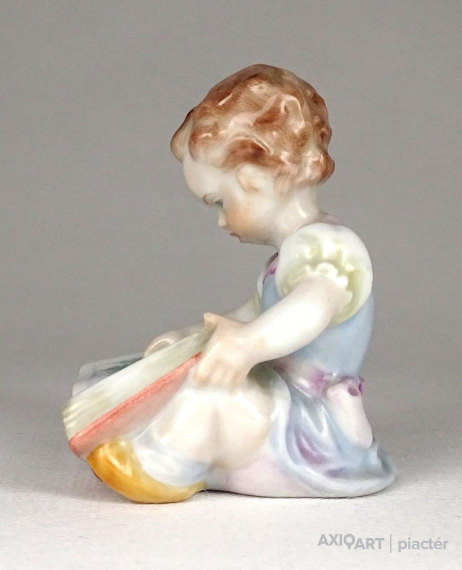 Hibátlan állapotú régi kézzel festett Herendi porcelán kislány. Kezében mesekönyv.