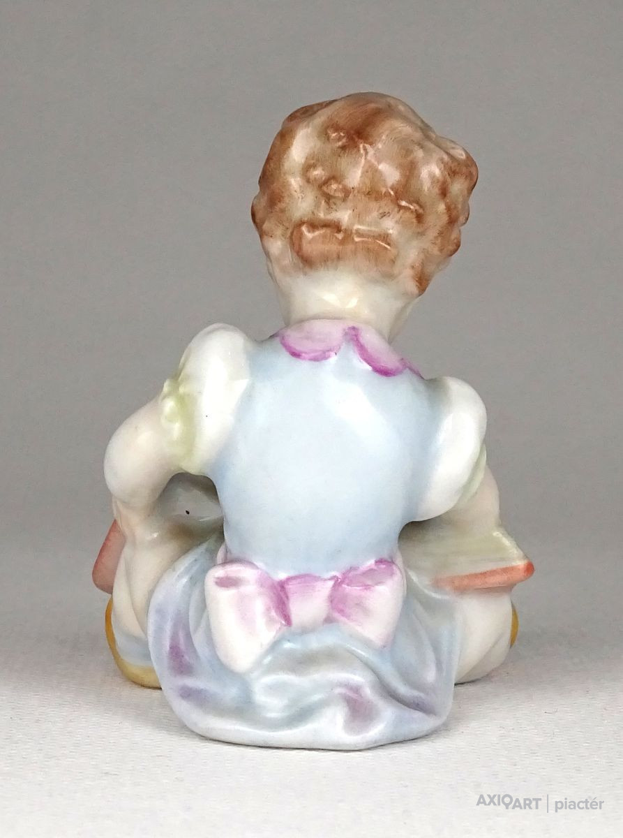 [1S415/Z009] Hibátlan állapotú régi kézzel festett Herendi porcelán kislány. Kezében mesekönyv. Alján jelzés mélynyomással: HEREND Formaszám: 5838 Magasság: 7.3 cm Szélesség: 5.5 cm Súly: 0.075 kg