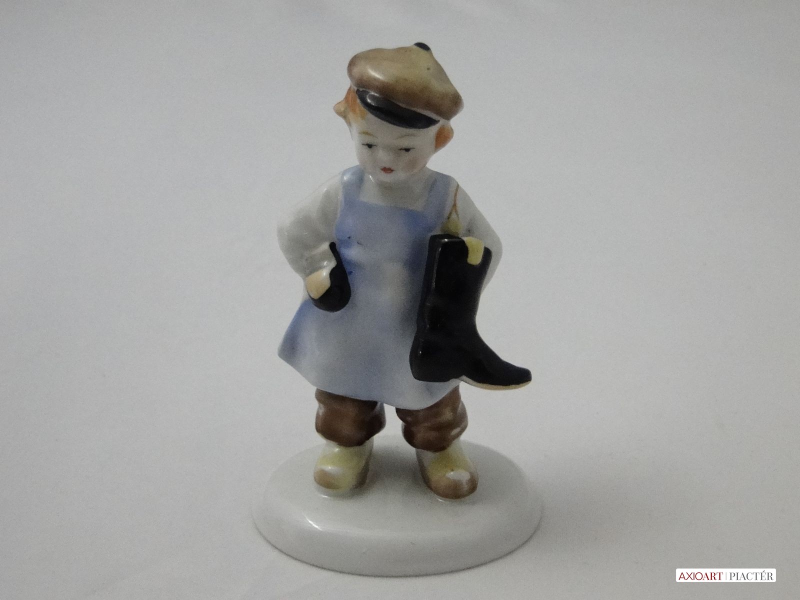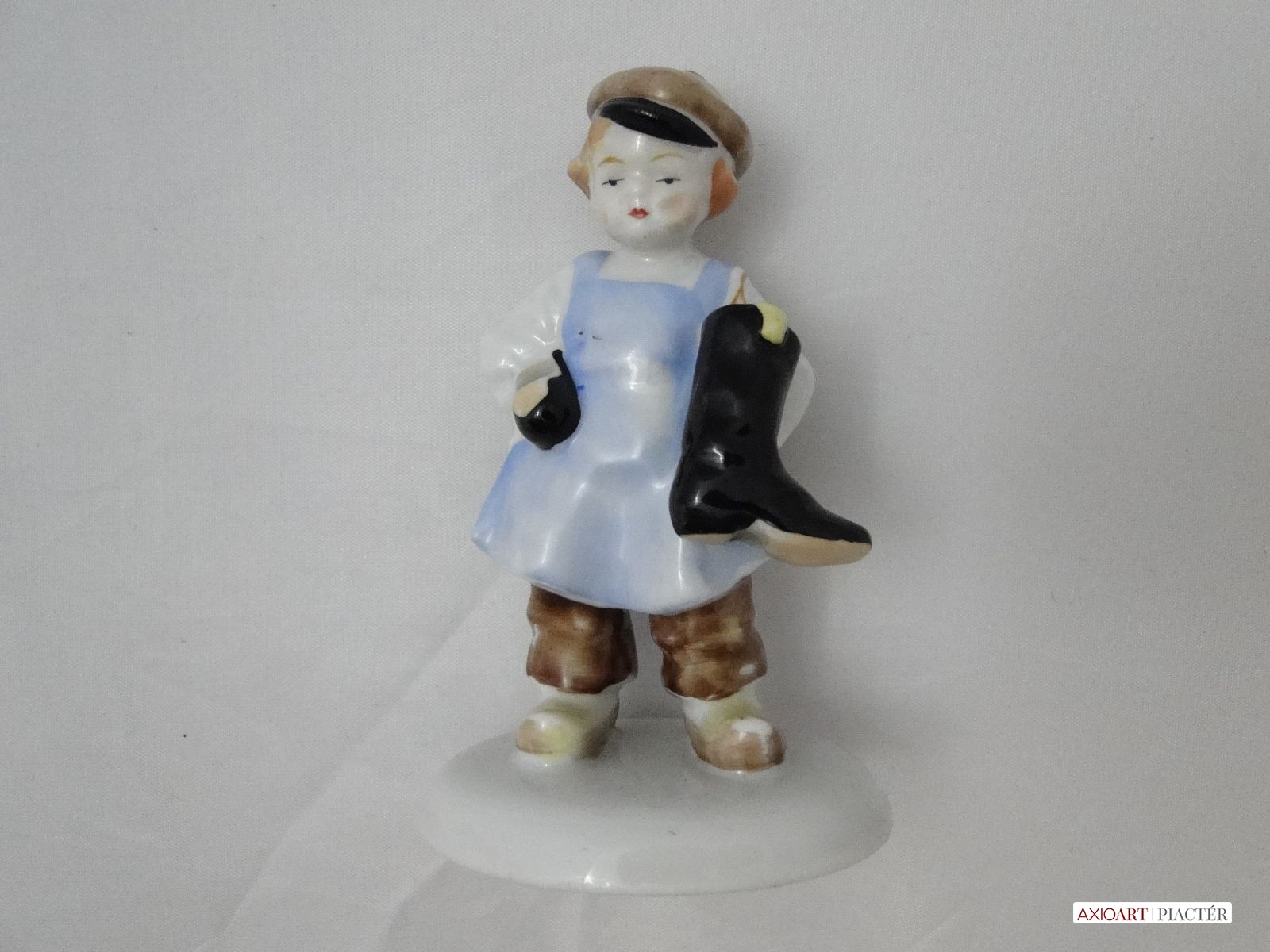 [7879/X108] Hibátlan kalapos cipész kisfiú német Metzler - Ortloff porcelán. Alján KUNST PORZELLAN felirattal papírvignetta. Magasság: 9 cm Súly: 0.073 kg