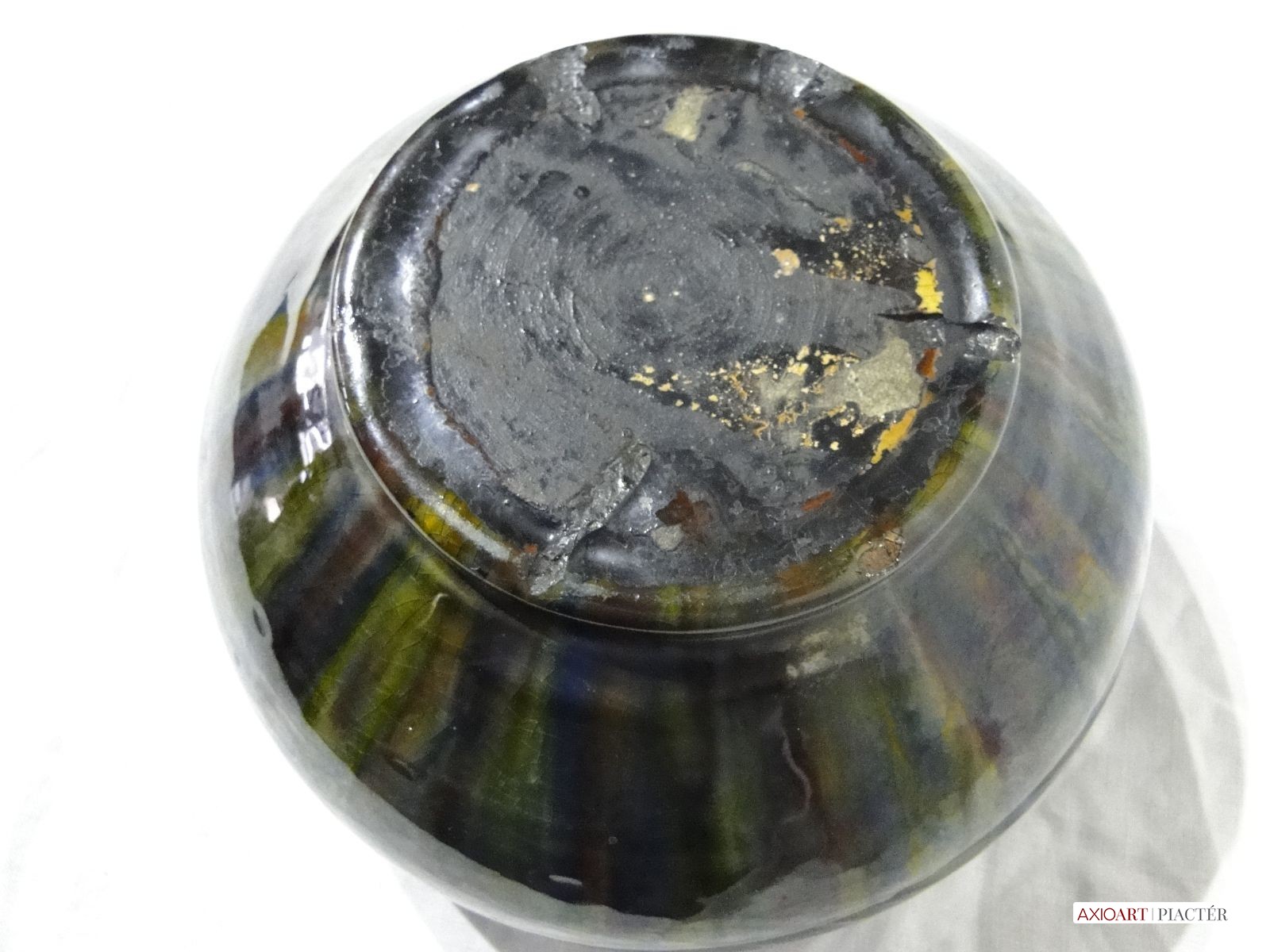 [1Y029/Z018] Olaj farost festmény, üveglap mögött, hibátlan képcsarnokos keretben. Hátoldalán Képcsarnok Vállalat papír címkéje: A művész neve: SCHÉNER MIHÁLY A kép címe: TÁJ Magasság: 66.5 cm Szélesség: 86 cm Súly: 6.54 kg Schéner Mihály festő, grafikus, szobrász, keramikus, bábtervező Medgyesegyháza, 1923-01-9 Elhalálozott: Budapest, 2009. május 11. Honlap: http://www.kormendigaleria.hu/kiadvany.html 1942-1947: Magyar Képzőművészeti Főiskola, tanára: Rudnay Gyula. 1978: Munkácsy-díj; 1984: érdemes művész; 1989: kiváló művész; 1995: Kossuth-díj. 1992-től a Magyar Művészeti Akadémia, 1993-tól a Széchenyi Irodalmi és Művészeti Akadémia tagja. 1956-ig tanított. 1982: Nagyatádi Faszobrász Alkotótelep, 1985: Nemzetközi Acélszobrász Alkotótelep, Dunaújváros. A stílusában felismerhető, mégis sokféle műtárgyat létrehozó ~ gazdag, állandóan alakuló életműve a folyton változó világban helyét kereső, az alkotói szabadságot megvalósító XX. századi képzőművész példázata lehetne. Magát expresszív-szürrealista alkotónak nevezi. Egyaránt dolgozik festékkel, textillel, fával, fémmel. Rajzol, szerkeszt, farag, épít, gyúr, varr és ragaszt, felhasználja a mézesbábok öntőformáit. Festő, rajzoló, textilszobor- és bábkészítő, fazekas, asztalos, esztergályos. Háromlépcsős folyamatban gondolkozik: rajzban tervez, majd fest, szobrot készít, “formába önt”, mindig a végső plasztikai megoldást keresi. Ami állandó és mégis játékosan változékony megjelenésű Schéner művészetében, az a gyermekkori emlékek által meghatározott népi mesterségek iránti tiszteletet kifejező motívumkincs, a tárgyi folklór formakészlete, amely már-már kézjegyként ismétlődik munkáin. Mitologikussá nőtt képzelete új lényeket teremt, pl: a Pigulát, amely disznótestű, emberfejű teremtmény. Schéner festményein a szürrealista motívumokat konstruktív szerkezetbe rendezi, a geometriát és az organikus természeti motívumokat egyaránt beépíti műveibe. A népi, népművészeti formakincsből merített lovas huszárok, betyárok, szegénylegények cifra szűr mentéje, piros csákója, fekete csizmája, az önálló életet élő zsinórdíszek és mézeskalács bábok, a kiskocsik a gyermekkori vásárok, búcsúk színes forgatagába vezet. A primér motívumokat aztán felváltják a vastagon felhordott felületbe karcolt jelek, vonalhálózatok, amelyek a játszó gyermek homokba rajzolt ábráit, a pásztorember fába vésett üzeneteit, az ősember barlang falába rótt mágikus jeleneteit idézik meg. A művész pillanatnyi érdeklődésének megfelelően a színek búvópatakként tűnnek el és jelennek meg ismét. A 60-as években leginkább a formákkal való játék érdekelte, a festmények felülete egyre gazdagodott: a táblaképek felületén applikációk jelentek meg, vagy lemállasztott rétegek hagyták maguk után hiányukat, motívumok nélküli ősformák, archetipikus képzetek bukkantak fel művészetében. A véletlenszerűnek látszó rétegekkel való játék azonban tudatos komponálás eredménye, amely később nyilvánvaló ritmusnak és formai szerkesztettségnek adja át a helyét, mint a Törvénytáblák c. sorozaton. A különböző művészi kifejezési formák egymásra termékenyítő hatással vannak, át- meg áthatják egymást. Textilszobrai, amelyekkel új műfajt teremtett, ugyanazzal az automatikus, expresszív-szürrealista módszerrel készülnek, mint festményei. A hagyományosan a népművészetben alkalmazott anyag, a filc lehetőséget ad a népi formakincs felelevenítésére, amely azonban a művész különös szürrealista átiratában jelenik meg. A szívekkel kivarrt, zsinórdíszes Posztókotlós c. művén mézesbábok lógnak, hátán huszárok lovagolnak. Egész sor textilből készült kéz-plasztikát alkot, amelyeket az ujjakra rávarrt díszekkel öltöztet, személyesít meg. A színes-különös világból aztán ~ újra puritán képi és formai rendbe juttatja el a nézőt, majd nemsokára tépett, gyűrt, vágott, csorgatott, repedezni hagyott szenvedélyesen vonagló képi felületeket hagy hátra. Schéner készített apró gyermekjátékokat, térstruktúra-tereket, mászókákat is. A magyar népi formák mellett szürreális játékaiban gyakran alkalmaz görög mitológiai alakokat, “elkentaurosodott” lovakat, Gorgó-fejeket, sellőket, hárpiákat, Pán-ábrázolásokat. Schéner nemcsak saját művészetéről publikál, hanem művésztársairól is számos írása jelenik meg, elsősorban az Új Auróra c. folyóiratban, amelynek egy ideig főmunkatársa volt. Irodalom kiállítása, Magyar Építőművészet, 1962/4. Húsz év után, Művészet, 1965/4. BOZÓKY M.: ~, Tiszatáj, 1968/5. PERNECZKY G.: Nincs uborkaszezon, Élet és Irodalom, 1969. augusztus 8. BARÁNSZKY-JÓB L.: ~, Művészet, 1969/9. LÁSZLÓ GY.: ~ kaposvári kiállítása, Jelenkor, 1969/4. MAJOR M.: Pásztorok, betyárok, huszárok - kezek, Tükör, 1970. szeptember 15. FRANK J.: Bemutatjuk ~t, Élet és Irodalom, 1972. május 6. ról kiállítása ürügyén, Képzőművészeti Almanach, Budapest, 1972 Sötétkék kokasok, Élet és Irodalom, 1973. szeptember 9. MAJOR M.: ~ játékai, Élet és Irodalom, 1974. július 27. BARTA J.: Egy különös művész, Alföld, 1974/6. VADAS J.: Szárnykészítők, Élet és Irodalom, 1975. október 4. JUHÁSZ F.: A halál ellen játszani, Élet és Irodalom, 1975. május 17. PAP G.: Kincsek és műkincsek, Művészet, 1975/6. P. SZŰCS J.: Az utak kettéválnak, Művészet, 1978/3. Békési művészet, Művészet, 1978/7. SZAMOSI F.: ~ [kismonográfia], Budapest, 1978 VADAS J.: Játék a játékkal, Élet és Irodalom, 1979. augusztus 18. NÉMETH L.: ~ műveiről, Művészet, 1979/4. MIKLÓS P.: Mit akar ez a múzeum?, Művésze