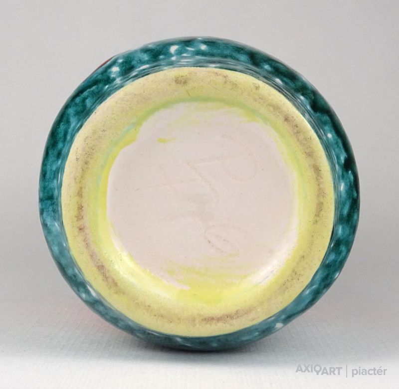 [1M055/X305] Retro hibátlan állapotú iparművészeti kerámia váza, díszváza. Alján jelzés: B. VÁRDEÁK Alján zsűri címke, rajta felirat: IPARMŰVÉSZETI VÁLLALAT ZSŰRISZÁM: 108154 69-995 Magasság: 10.5 cm Szélesség: 6.5 cm Hosszúság: 10.5 cm Súly: 0.35 kg B.Várdeák Ildikó keramikus Abony, 1929-05-13 Névváltozat: Bődy Oszkárné 1953-ban diplomázott a Magyar Iparművészeti Főiskolán Gádor István és Borsos Miklós növendékeként. 1971-ben és 1972-ben részt vett a Siklósi Kerámia Szimpóziumon. 1979: Faenza, aranyérem [Bődy Oszkárral]; 1980: Patikaedény-kiállítás, aranyérem, Gualdo Tadino. Kezdetben porcelán- és kerámiaedények tervezésével, kivitelezésével foglalkozott, majd kerti plasztikákat készített samottos agyagból. Jelenleg cserépkályhát, kandallót tervez és kivitelez, valamint régi épületkerámiák restaurálásával foglalkozik. Irodalom Mai magyar iparművészet. Kerámia, porcelán, üveg, Budapest, 1975. Egyéni kiállítások Egyéni kiállítások 1971 • Népház, Budapest-Óbuda 1980 • Faipari Szakiskola, Budapest 1992 • Angelika Cukrászda, Budapest. Válogatott csoportos kiállítások Válogatott csoportos kiállítások 1955 • Fiatal Iparművészek Kiállítása, Ernst Múzeum, Budapest 1955, 1959, 1965 • 2., 4., 5. Országos Iparművészeti kiállítás, Műcsarnok, Budapest 1958 • Magyar Iparművészek Kiállítása, Világkiállítás, Brüsszel 1959 • Magyar Képzőművésznők II. kiállítása, Műcsarnok, Budapest 1960 • Képzőművésznők nemzetközi kiállítása, Műcsarnok, Budapest 1963 • Modern magyar kerámia, Royal Festival Hall, London 1966 • Gádor István és tanítványai kiállítása, Ernst Múzeum, Budapest 1967 • Kerámia kiállítás, Vármúzeum, Siklós 1968, 1972, 1975, 1978, 1980 • I., III-VI. Országos Kerámia Biennálé, Pécs 1968, 1972, 1977, 1979 • Nemzetközi Kerámia Kiállítás, Faenza 1971, 1972 • Kerámia Szimpozion, Siklós 1972 • Edénykultúra, Műcsarnok, Budapest 1974 • Mai Magyar Iparművészet II., Iparművészeti Múzeum, Budapest 1975 • Jubileumi Iparművészeti Kiállítás, Műcsarnok, Budapest 1979 • Nemzetközi Kerámia Kiállítás, Sopot 1980 • Művészek az üzemekben, Magyar Nemzeti Galéria, Budapest 1982 • Magyar Kerámia, Palazzo delle Esposizione, Faenza 1983 • Nemzetközi Kerámia Kiállítás, Perugia – Gualdo Tadino 1995 • XX. századi magyar keramikusok. Válogatás az Iparművészeti Múzeum gyűjteményéből, Iparművészeti Múzeum, Budapest 1998 • In Memoriam Tornyai, Tornyai János Múzeum, Hódmezővásárhely 1998 • Őszi kerámia kiállítás, Palme Ház, Budapest Művek közgyűjteményekben Művek közgyűjteményekben Forrás: artportal.hu