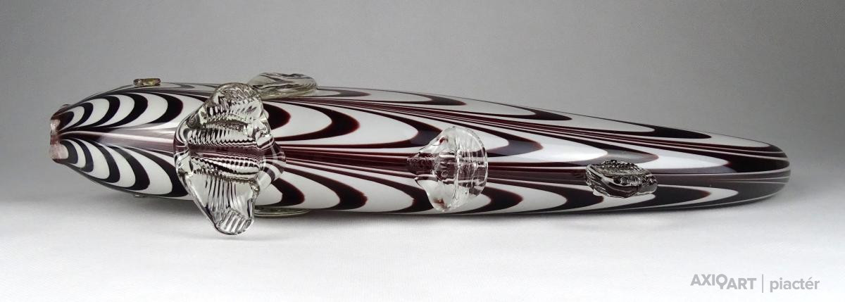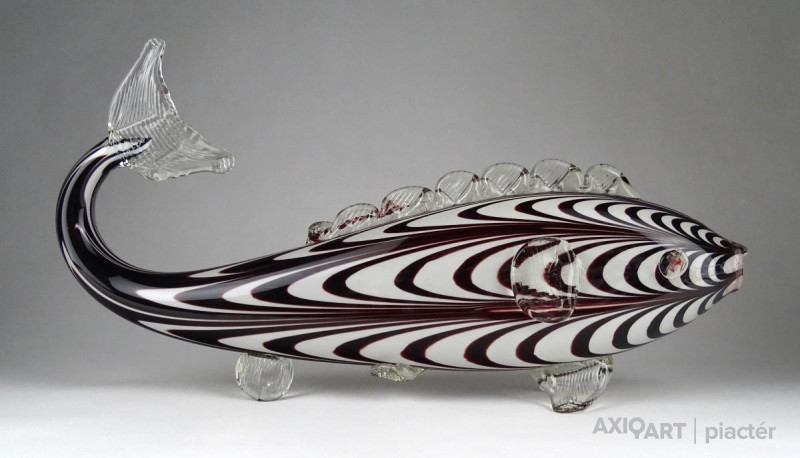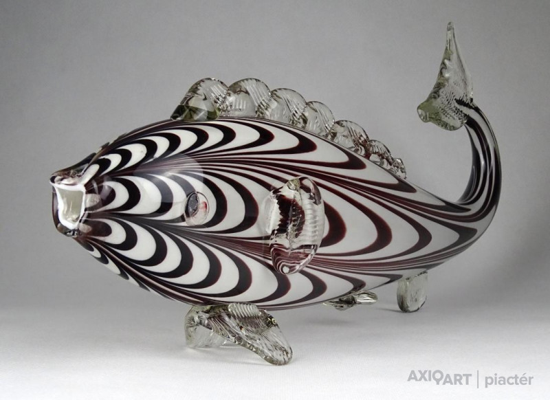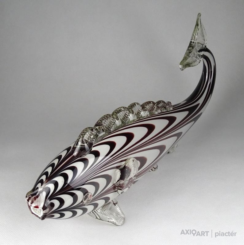 Hibátlan állapotú nagy méretű fújt üveg, színezett üveg dísz hal a XX. század közepéről.