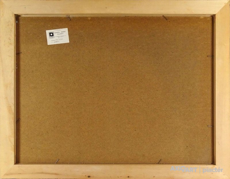 [FK0037/Z018] A kép mérete: 50 x 70 cm keret nélkül. Készült: Olaj, Vászon A kép Paizs László (Szentpéterúr, 1935) alkotása. Jelezve Jobbra lent "P. L." A festmény jó állapotban van. Keret: Ép A festmény hátoldalán a Képcsarnokvállalat címkéje található. Magyar festők és grafikusok életrajzi lexikona I-II. Festő. Tanulmányait a budapesti Iparművészeti Főiskolán végezte 1959-ben. Z. Gács György, Rákosy Zoltán és Szentiványi Lajos növendéke volt. A '60-as évek első felében hagyományosabb felfogású olajképeket festett, mozaikokat, freskókat, utóbb a pop-art körébe tartozó, a francia Arman munkáival rokon műveket alkotott. 1961 óta kiállító művész. Egyéni (Fényes Adolf Terem, Csók Galéria, Műcsarnok, Magyar Nemzeti Galéria, Halászbástya, Bástya Galéria, Vigadó Galéria, Budapest Galéria, Győr, Szombathely, Szeged, Zalaegerszeg, Duisburg, Aix-en-Provence, stb). és vegyes (Ernst Múzeum, Műcsarnok, Óbuda Galéria, Magyar Nemzeti Galéria, Csók Galéria, Vigadó Galéria, Székesfehérvár, Kaposvár, Pécs, Hódmezővásárhely, Firenze, Milano, Padova, Nápoly, Velence, Düsseldorf, Aachen, Genf, stb) tárlatokon vett részt. 1980-ban Munkácsy-díjjal jutalmazták, 1988-ban Érdemes Művész kitüntető elismerésben részesült. Munkáit őrzi a Magyar Nemzeti Galéria, a Fővárosi Képtár, a szombathelyi képtár, a pécsi Janus P. Múzeum, a székesfehérvári István Király Múzeum és a dunaszerdahelyi Kortárs Magyar Galéria. (H.B.: Műv, 1972/4, K.Gy.: Műv. 1977/2, K.G.: Műv. 1978/10, M.L.: Műv, 1983/5, R.G.: Műv, 1987/9, Sz.Gy.: Új Műv. 1995/4, MK) Magyar festők és grafikusok életrajzi lexikona I-II. Műgyűjtők és kereskedők kézikönyve Festő. Tanulmányait a bp.-i Iparművészeti Főiskolán végezte. Mozaikokat ferskókat, utóbb a pop-art körébe tartozó, a francia Arman műveivel rokon műveket alkotott. Mozaikok: a Szegedi Megyei Tanács, a Pécsi Óvoda, a Gödöllői Agrártudományi Egyetem. Freskók: Budapest - Csatárka úti Gyermekotthon. 1971-ben a Fényes Adolf Teremben volt kiállítása, 1983-ban pedig a szegedi Móra Ferenc Múzeumban nagyszabású tárlatokon mutatta be munkáit. 1988-ban érdemes művész kitüntető elismerésben részesült. (MK) Magyar festők és grafikusok adattára Az Iparművészeti Főiskolán végzett 1959-ben. Mozaikokat (Szeged, Megyei Tanács; Pécs, Óvoda; Gödöllő, Agrártudományi Egyetem), freskókat (Budapest, Csatárka úti Gyermekotthon), újabban a pop art körébe tartozó, a francia Arman műveivel rokon műveket alkotott. 1971-ben a Fényes Adolf Teremben nyílt kiállítása. 1983 februárjában a szegedi Móra Ferenc Múzeumban megrendezett nagyszabású tárlaton mutatta be alkotásait. 1988-ban érdemes művész kitüntető elismerésben részesült. - MK Művészeti lexikon I-IV. (Szentpéterur, 1935. dec. 26.- ): festő. Az Iparművészeti Főiskolán 1959-ben végzett Rákosy Zoltán, Z. Gách György és Szentiványi Lajos növendékeként. Épületdiszítő mozaikokat, (Szeged, Megyei Tanács, 1961; Pécs, Óvoda, 1964), műanyagfreskókat (Bp., Csatárka úti Gyermekotthon, 1964) és gobelinterveket készít. Kortárs magyar művészeti lexikon I-III. Festő, szobrász, grafikus. 1959: MIF, mesterei: Z. Gács György, Rákosy Zoltán, Szentiványi Lajos. 1980: Munkácsy-díj; 1988: érdemes művész. Főiskolás éveinek második felében, majd azt követően számos murális munka kivitelezésében vett részt, Fónyi Géza, Konecsni György, Z. Gács György, Rákosi Zoltán és Domanovszky Endre mellett dolgozva. A 60-as évek első felének hagyományosabb fölfogású olajképeket festett. 1964-ben a Velencei B.-n megismerkedett az amerikai pavilonban a pop art Európában akkor még újnak számító törekvésével, és részben ez inspirálta, hogy 1967-ben textil, fém, bőr anyagú "varrottas" képeket küldjön az FKS éves tárlatára; a megnyitó előtt többek között az ő munkáit is eltávolították a falról. A 70-es években pop art-os objekteket (A trónörököspár politikai gyilkosság áldozata lett, 1970, plexiüveg, újság, szarvasbogarak), majd konstruktív, átlátszó plexiüveg plasztikákat készített belső fénytörő határfelületekkel. A 80-as években készültek az anyagában színezett, konstruktív, nagyméretű poliészter szobrai, majd színes poliészter táblaképeket alkotott, mesterségesen roncsolt felületekkel, mintha régészeti leletek vagy atomtámadás utáni festmény-szurrogátumok lennének. Ekkor kezdett organikus plaszikájú bronzszobrokat is mintázni. A 90-es években, a táblaképek és szobrok mellett nagyméretű, egyedi grafikákat készített, formavilágában némileg a roncsolt táblaképekből kiindulva, de szinte kizárólag az emberi alakból elvonatkoztatott torzókat megjelenítve. Ek: 1966: Művészklub, Győr; 1971: Fényes A. T.; 1972: Bercsényi 28-30 G.; 1973: BME B-épület; 1976: Csók G.; 1977: G. Hildebrandt, Duisburg (NSZK); 1979: Bástya G., Halászbástya; Helyőrségi Műv. H., Nagyatád; József A. Műv. Közp., Szeged; Göcsej M., Zalaegerszeg; 1982: Bezzegh G., Küsnacht (CH); 1983: Móra F. M., Szeged; 1987: Műcsarnok (kat.); MNG; 1988: Pandora G., Badacsonytomaj; 1989: Parktheatter, Iserlohn (NSZK); Qualitas G.; Hevesi S. Színház, Zalaegerszeg; 1990: Vasarely Fondation (Ferdinánd Judittal, Fóth Ernővel), Aix-en-Provence (FR); 1994: Vigadó G.; 1997: Pest Center G.; 1998: Budapest G. (kat.); 1999: Pest Center G. (kat); G. Arcis, Sárvár; MMA, Bp.; 2001: SZK, Szhely; Ernst M. (kat.) Vcsk: 1961, 1964, 1966: FKS, Ernst M.; 1962: 9. Magyar Képzőműv. kiállítás, Műcsarnok; 1967: Mai magyar festészet, Új-Delhi; 1969: Vas megyei művészek, Savaria M., Szhely; V. Orsz. Grafikai B., Miskolc; 1971: Új művek, Műcsarnok; 1972: Fiatal művészek Budapestről. Likovni Salon, Újvidék (YU); 1972, 1973: Balatonboglár