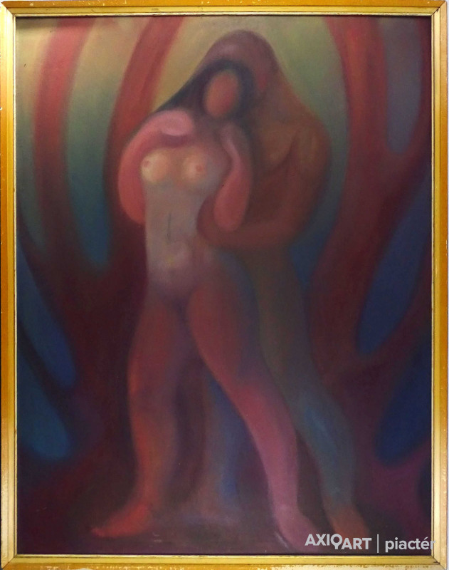 Móczár Károly /1917 - 1975/: "Ádám-Éva" kiállítási raglapon 110 x 85 cm