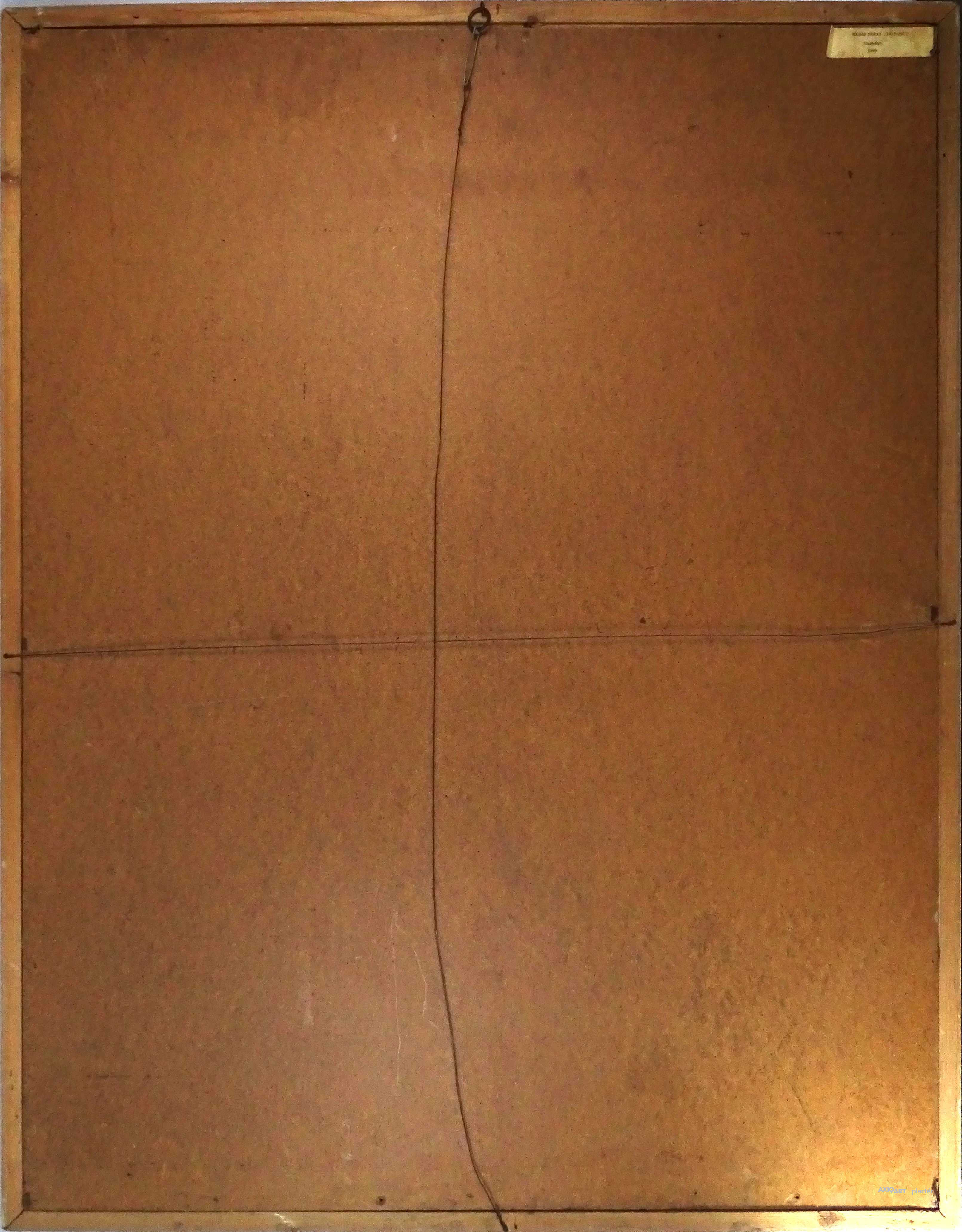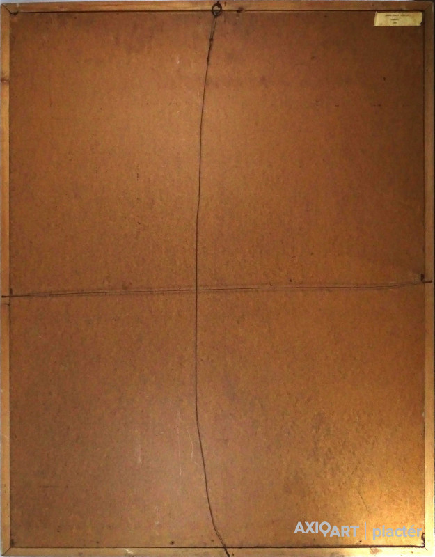 Hátoldalán kiállítási papírcimke, rajta felirat: