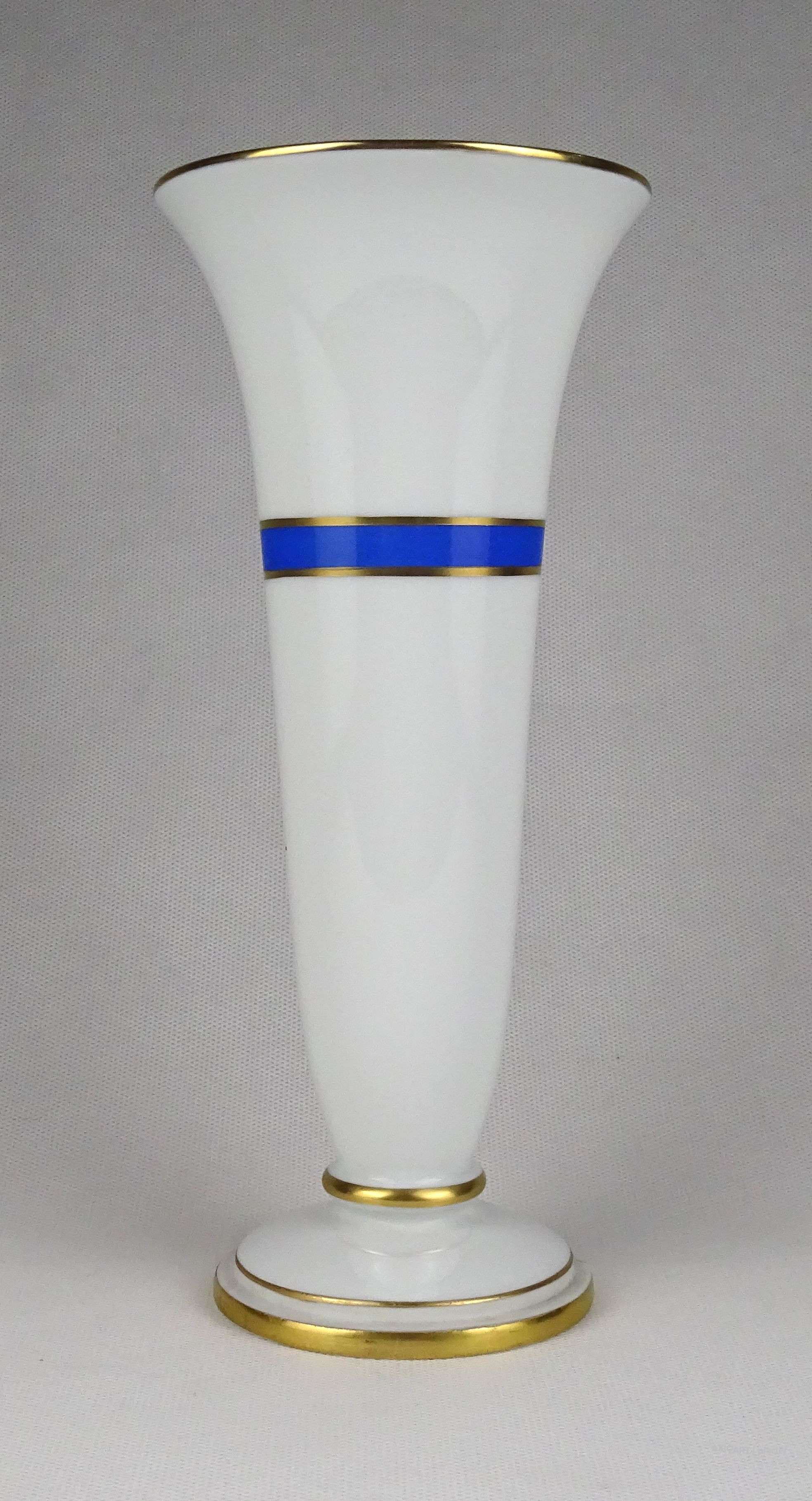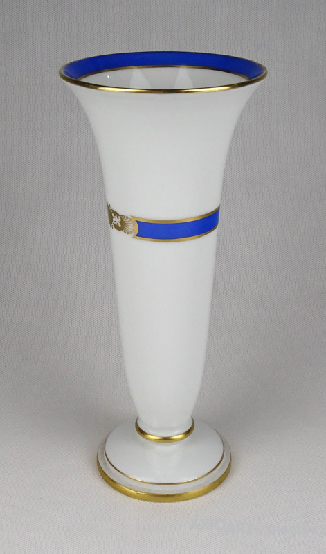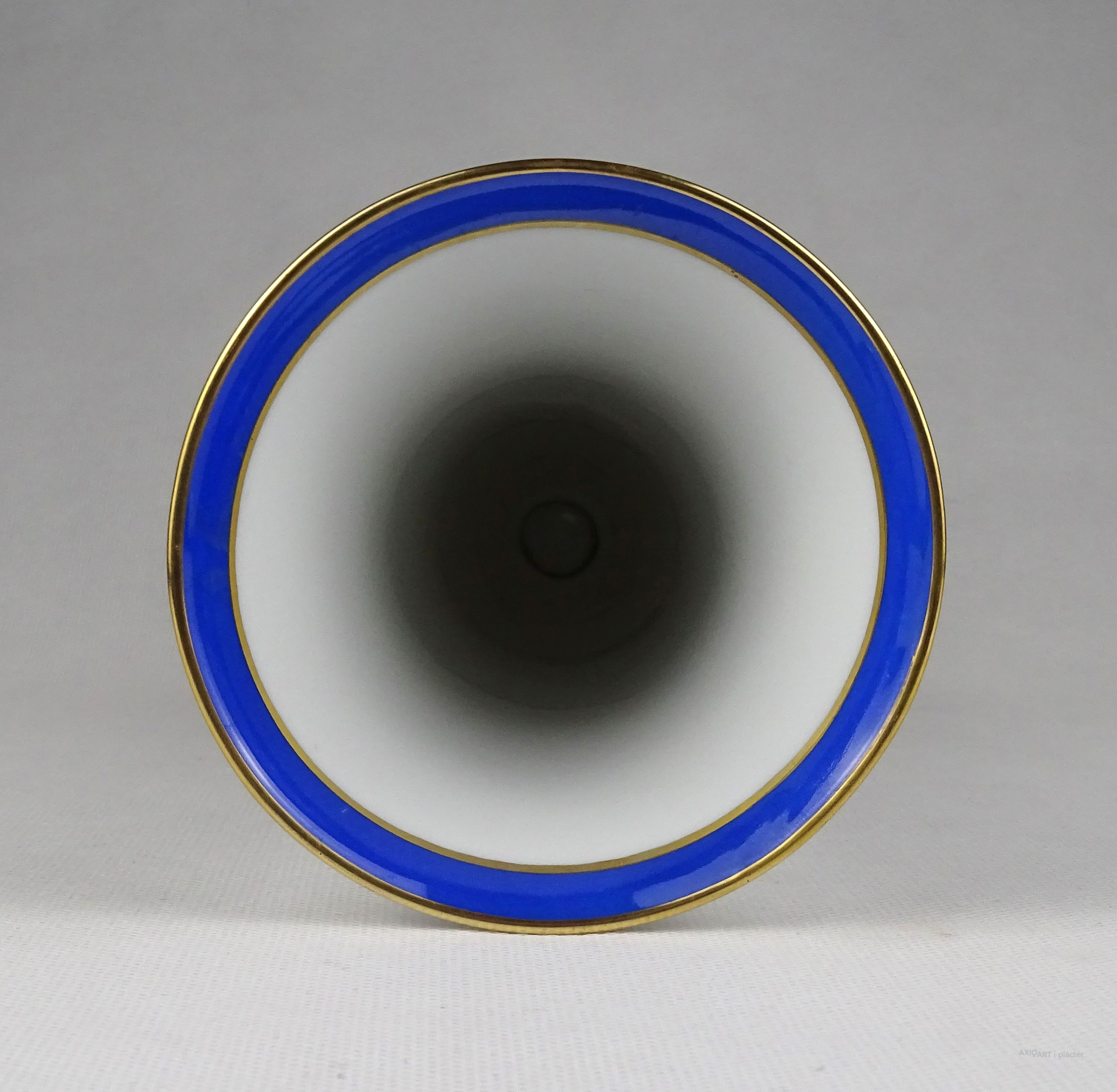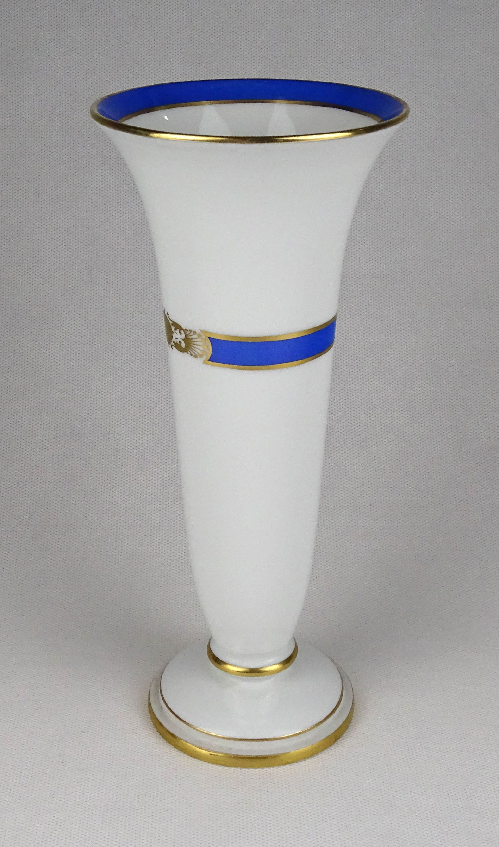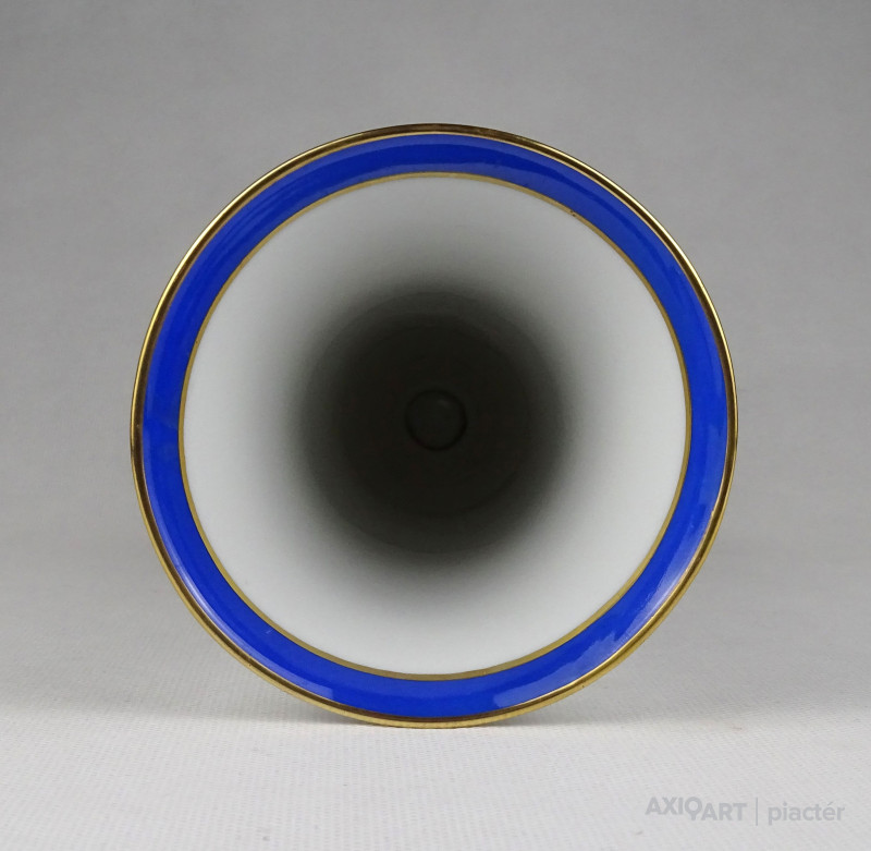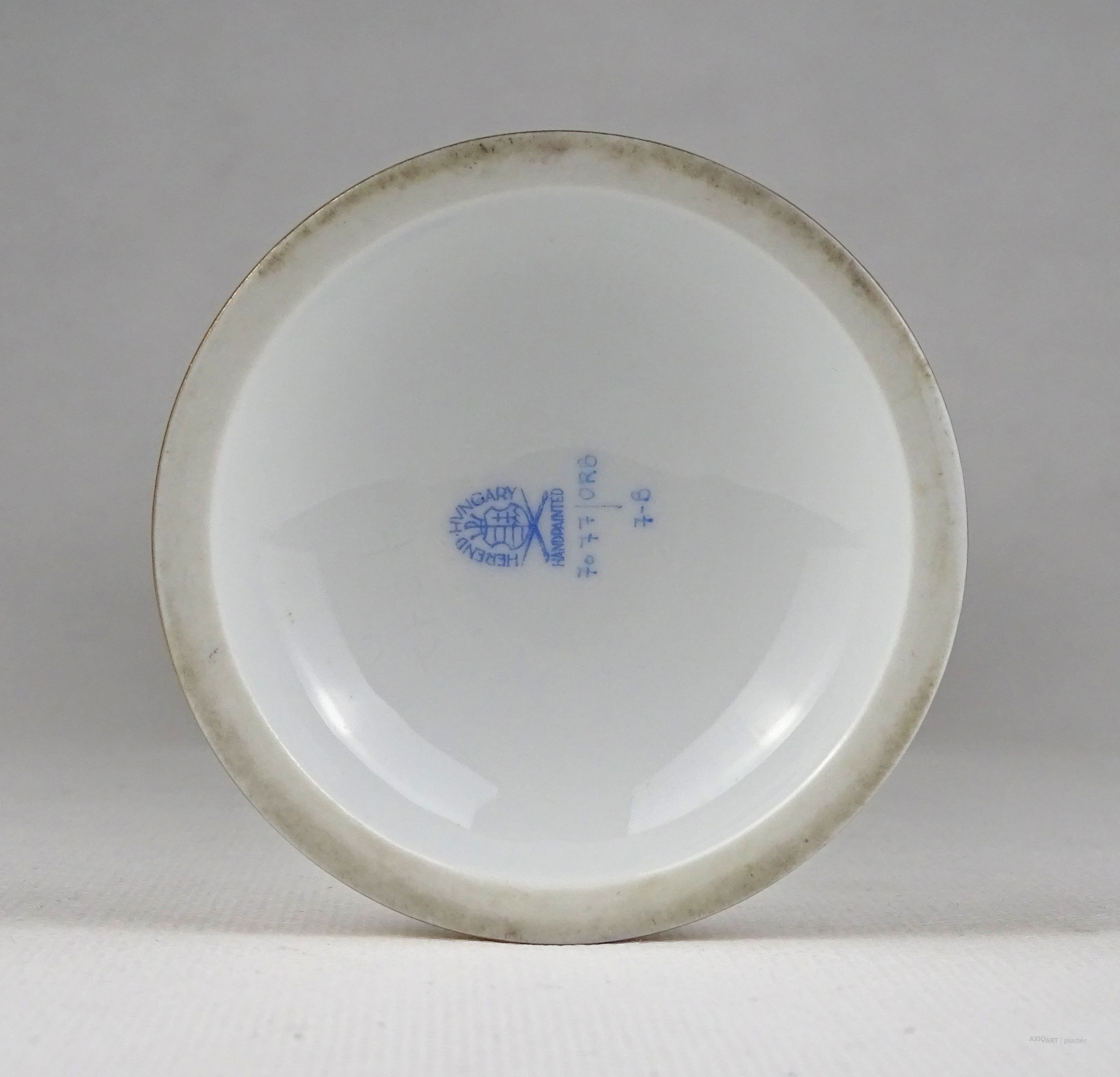 [1U059/Z008] Különleges, hibátlan állapotú porcelán váza. Talpas Herendi porcelán váza, virágváza. Herend Blue Ribbon design Alján kék herendi jelzés: HEREND HUNGARY HANDPAINTED Formaszám: 7077/ORB 7-B https://www.herendexperts.com/product/6401-0-00-orb-blue/ Magasság: 23.3 cm Szélesség: 10.3 cm Súly: 0.365 kg