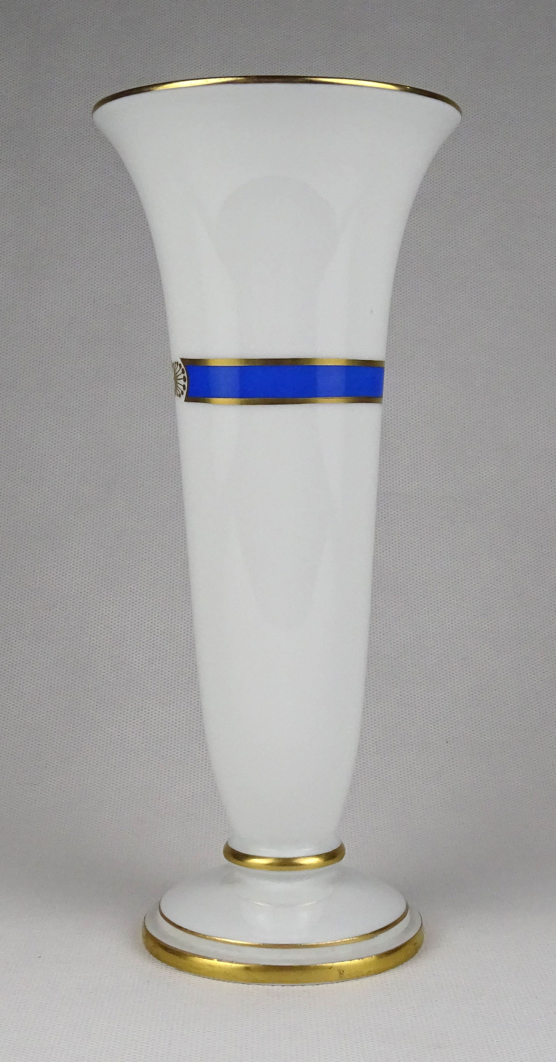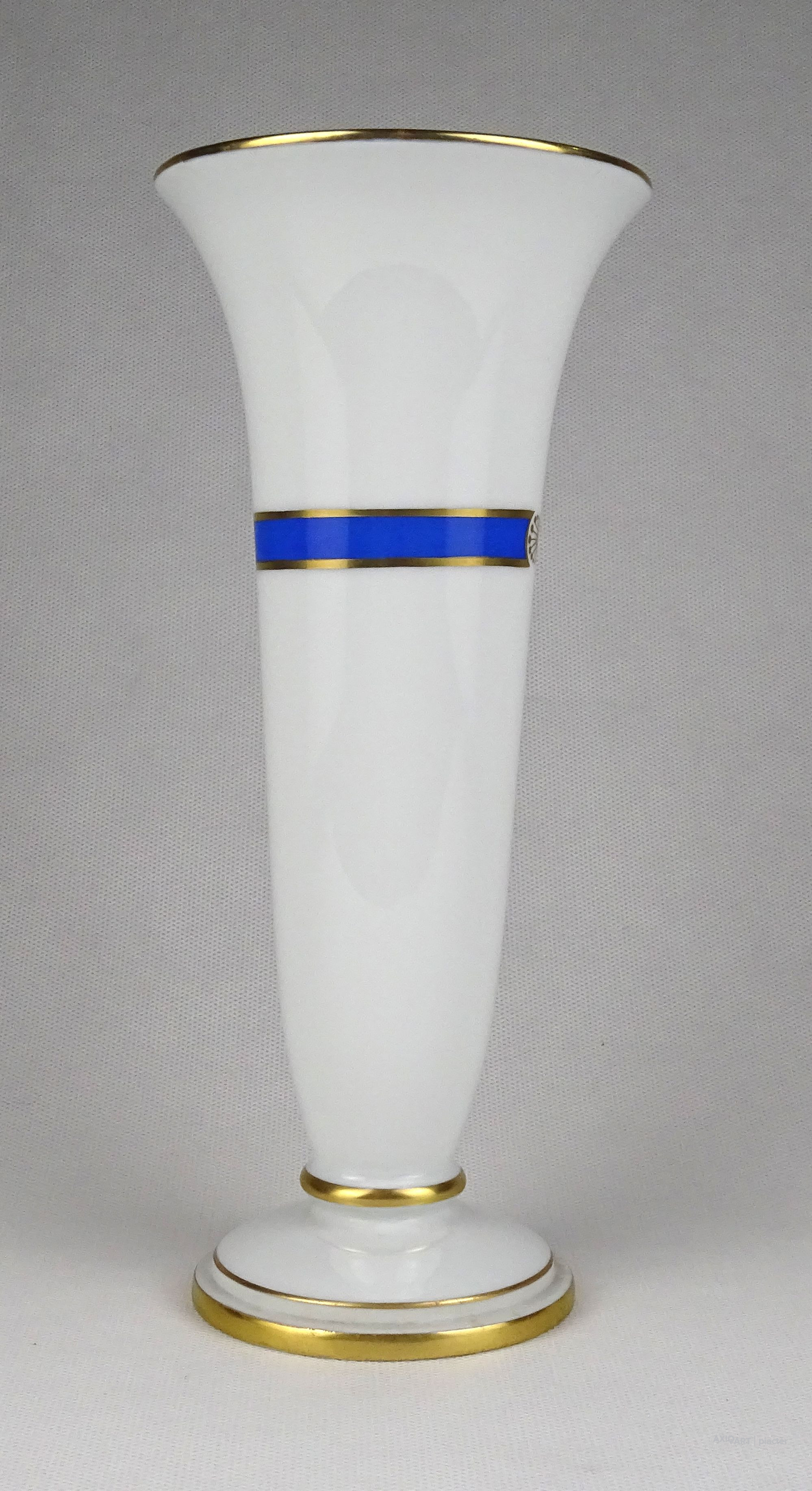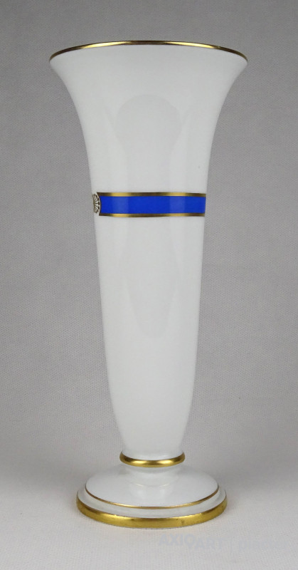 Modern fehér kék Herendi porcelán talpas Herend Blue Ribbon design váza 23.3 cm