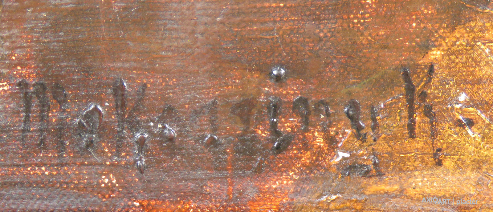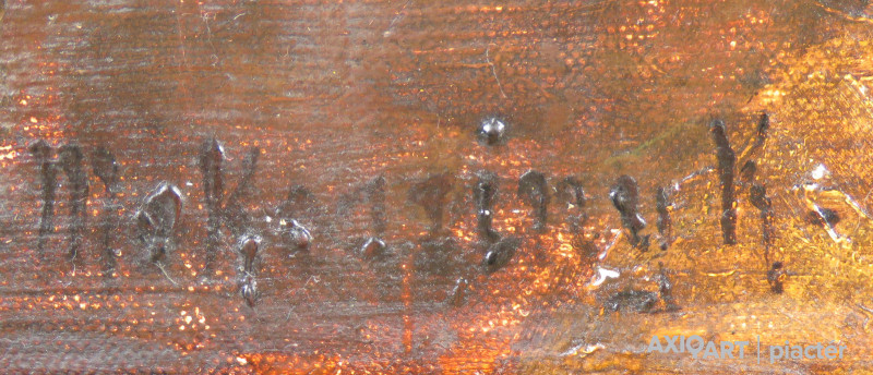 [FK0037/Z018] A kép mérete: 50 x 70 cm keret nélkül. Készült: Olaj, Vászon A kép Paizs László (Szentpéterúr, 1935) alkotása. Jelezve Jobbra lent "P. L." A festmény jó állapotban van. Keret: Ép A festmény hátoldalán a Képcsarnokvállalat címkéje található. Magyar festők és grafikusok életrajzi lexikona I-II. Festő. Tanulmányait a budapesti Iparművészeti Főiskolán végezte 1959-ben. Z. Gács György, Rákosy Zoltán és Szentiványi Lajos növendéke volt. A '60-as évek első felében hagyományosabb felfogású olajképeket festett, mozaikokat, freskókat, utóbb a pop-art körébe tartozó, a francia Arman munkáival rokon műveket alkotott. 1961 óta kiállító művész. Egyéni (Fényes Adolf Terem, Csók Galéria, Műcsarnok, Magyar Nemzeti Galéria, Halászbástya, Bástya Galéria, Vigadó Galéria, Budapest Galéria, Győr, Szombathely, Szeged, Zalaegerszeg, Duisburg, Aix-en-Provence, stb). és vegyes (Ernst Múzeum, Műcsarnok, Óbuda Galéria, Magyar Nemzeti Galéria, Csók Galéria, Vigadó Galéria, Székesfehérvár, Kaposvár, Pécs, Hódmezővásárhely, Firenze, Milano, Padova, Nápoly, Velence, Düsseldorf, Aachen, Genf, stb) tárlatokon vett részt. 1980-ban Munkácsy-díjjal jutalmazták, 1988-ban Érdemes Művész kitüntető elismerésben részesült. Munkáit őrzi a Magyar Nemzeti Galéria, a Fővárosi Képtár, a szombathelyi képtár, a pécsi Janus P. Múzeum, a székesfehérvári István Király Múzeum és a dunaszerdahelyi Kortárs Magyar Galéria. (H.B.: Műv, 1972/4, K.Gy.: Műv. 1977/2, K.G.: Műv. 1978/10, M.L.: Műv, 1983/5, R.G.: Műv, 1987/9, Sz.Gy.: Új Műv. 1995/4, MK) Magyar festők és grafikusok életrajzi lexikona I-II. Műgyűjtők és kereskedők kézikönyve Festő. Tanulmányait a bp.-i Iparművészeti Főiskolán végezte. Mozaikokat ferskókat, utóbb a pop-art körébe tartozó, a francia Arman műveivel rokon műveket alkotott. Mozaikok: a Szegedi Megyei Tanács, a Pécsi Óvoda, a Gödöllői Agrártudományi Egyetem. Freskók: Budapest - Csatárka úti Gyermekotthon. 1971-ben a Fényes Adolf Teremben volt kiállítása, 1983-ban pedig a szegedi Móra Ferenc Múzeumban nagyszabású tárlatokon mutatta be munkáit. 1988-ban érdemes művész kitüntető elismerésben részesült. (MK) Magyar festők és grafikusok adattára Az Iparművészeti Főiskolán végzett 1959-ben. Mozaikokat (Szeged, Megyei Tanács; Pécs, Óvoda; Gödöllő, Agrártudományi Egyetem), freskókat (Budapest, Csatárka úti Gyermekotthon), újabban a pop art körébe tartozó, a francia Arman műveivel rokon műveket alkotott. 1971-ben a Fényes Adolf Teremben nyílt kiállítása. 1983 februárjában a szegedi Móra Ferenc Múzeumban megrendezett nagyszabású tárlaton mutatta be alkotásait. 1988-ban érdemes művész kitüntető elismerésben részesült. - MK Művészeti lexikon I-IV. (Szentpéterur, 1935. dec. 26.- ): festő. Az Iparművészeti Főiskolán 1959-ben végzett Rákosy Zoltán, Z. Gách György és Szentiványi Lajos növendékeként. Épületdiszítő mozaikokat, (Szeged, Megyei Tanács, 1961; Pécs, Óvoda, 1964), műanyagfreskókat (Bp., Csatárka úti Gyermekotthon, 1964) és gobelinterveket készít. Kortárs magyar művészeti lexikon I-III. Festő, szobrász, grafikus. 1959: MIF, mesterei: Z. Gács György, Rákosy Zoltán, Szentiványi Lajos. 1980: Munkácsy-díj; 1988: érdemes művész. Főiskolás éveinek második felében, majd azt követően számos murális munka kivitelezésében vett részt, Fónyi Géza, Konecsni György, Z. Gács György, Rákosi Zoltán és Domanovszky Endre mellett dolgozva. A 60-as évek első felének hagyományosabb fölfogású olajképeket festett. 1964-ben a Velencei B.-n megismerkedett az amerikai pavilonban a pop art Európában akkor még újnak számító törekvésével, és részben ez inspirálta, hogy 1967-ben textil, fém, bőr anyagú "varrottas" képeket küldjön az FKS éves tárlatára; a megnyitó előtt többek között az ő munkáit is eltávolították a falról. A 70-es években pop art-os objekteket (A trónörököspár politikai gyilkosság áldozata lett, 1970, plexiüveg, újság, szarvasbogarak), majd konstruktív, átlátszó plexiüveg plasztikákat készített belső fénytörő határfelületekkel. A 80-as években készültek az anyagában színezett, konstruktív, nagyméretű poliészter szobrai, majd színes poliészter táblaképeket alkotott, mesterségesen roncsolt felületekkel, mintha régészeti leletek vagy atomtámadás utáni festmény-szurrogátumok lennének. Ekkor kezdett organikus plaszikájú bronzszobrokat is mintázni. A 90-es években, a táblaképek és szobrok mellett nagyméretű, egyedi grafikákat készített, formavilágában némileg a roncsolt táblaképekből kiindulva, de szinte kizárólag az emberi alakból elvonatkoztatott torzókat megjelenítve. Ek: 1966: Művészklub, Győr; 1971: Fényes A. T.; 1972: Bercsényi 28-30 G.; 1973: BME B-épület; 1976: Csók G.; 1977: G. Hildebrandt, Duisburg (NSZK); 1979: Bástya G., Halászbástya; Helyőrségi Műv. H., Nagyatád; József A. Műv. Közp., Szeged; Göcsej M., Zalaegerszeg; 1982: Bezzegh G., Küsnacht (CH); 1983: Móra F. M., Szeged; 1987: Műcsarnok (kat.); MNG; 1988: Pandora G., Badacsonytomaj; 1989: Parktheatter, Iserlohn (NSZK); Qualitas G.; Hevesi S. Színház, Zalaegerszeg; 1990: Vasarely Fondation (Ferdinánd Judittal, Fóth Ernővel), Aix-en-Provence (FR); 1994: Vigadó G.; 1997: Pest Center G.; 1998: Budapest G. (kat.); 1999: Pest Center G. (kat); G. Arcis, Sárvár; MMA, Bp.; 2001: SZK, Szhely; Ernst M. (kat.) Vcsk: 1961, 1964, 1966: FKS, Ernst M.; 1962: 9. Magyar Képzőműv. kiállítás, Műcsarnok; 1967: Mai magyar festészet, Új-Delhi; 1969: Vas megyei művészek, Savaria M., Szhely; V. Orsz. Grafikai B., Miskolc; 1971: Új művek, Műcsarnok; 1972: Fiatal művészek Budapestről. Likovni Salon, Újvidék (YU); 1972, 1973: Balatonboglár