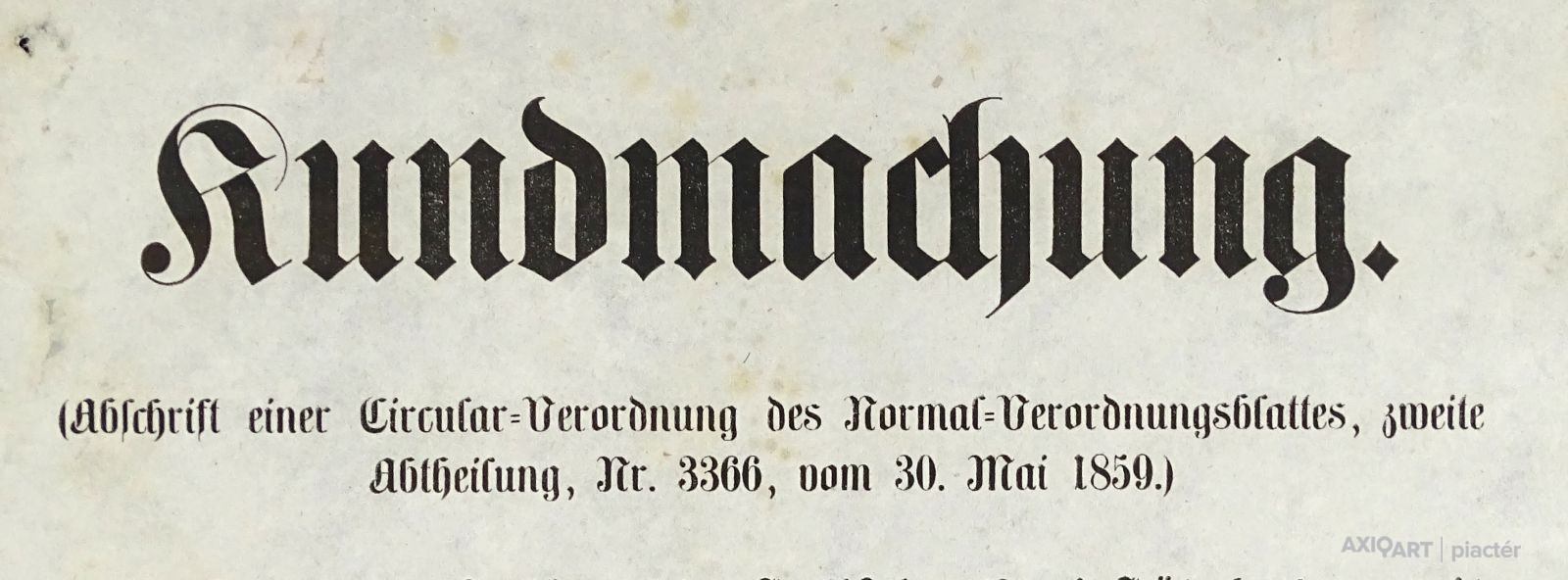 A hirdetmény címe, hivatkozása: Másolata a német nyelvű szabályrendeleti lapok második részében 1859 év május 30-áról 3366. sz.a. megjelent (katonai) körrendeletnek.