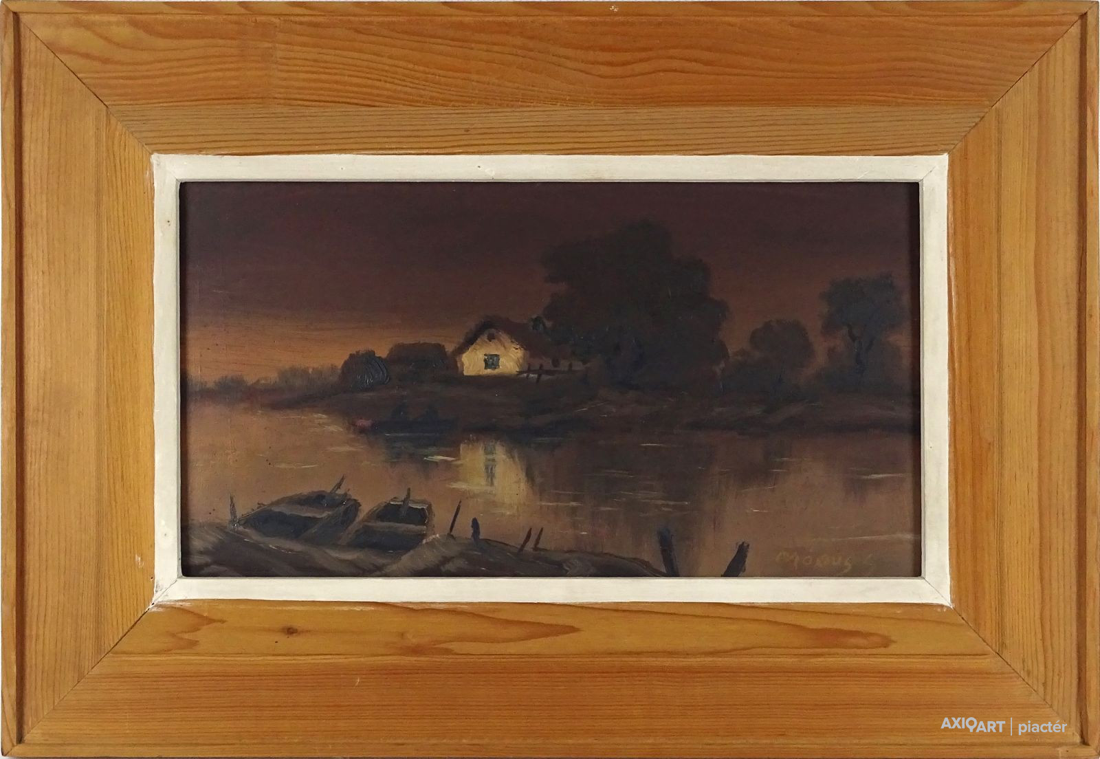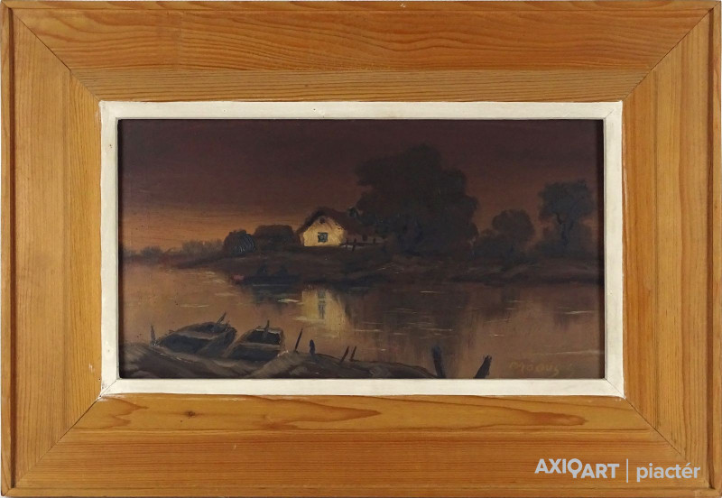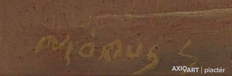 [1L941/060] Olaj farost festmény, eredeti fenyő keretében. Akasztási lehetőséggel rendelkezik. Jelzés jobbra lent: MÓNUS S. Magasság: 29 cm Szélesség: 42.5 cm Súly: 0.84 kg