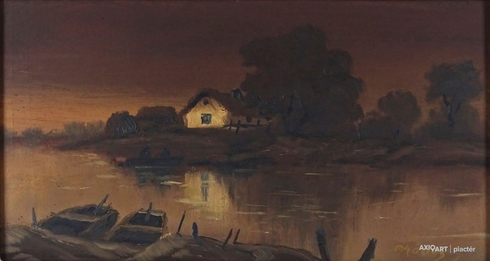 Olaj farost festmény, eredeti fenyő keretében. Akasztási lehetőséggel rendelkezik.