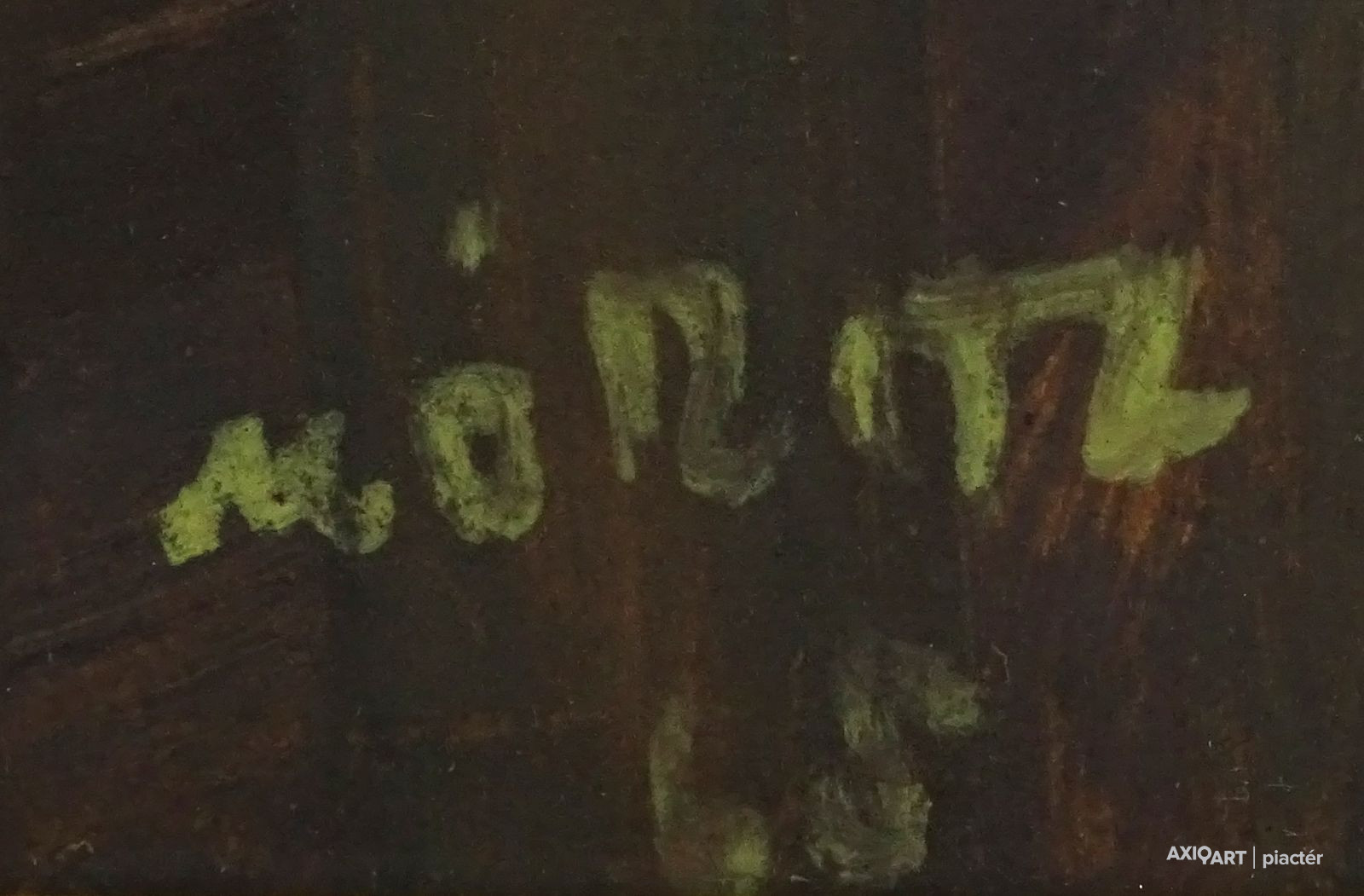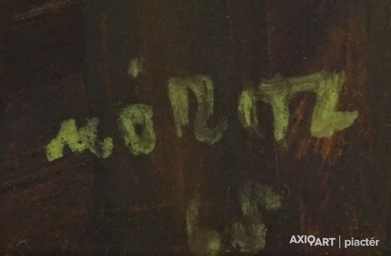 [1P310/131] Olaj farost festmény üveglap mögött, képcsarnokos keretben. Akasztási lehetőséggel rendelkezik. Jelzés jobbra lent: MÓRITZ 68 Magasság: 66 cm Szélesség: 80 cm Súly: 7.175 kg