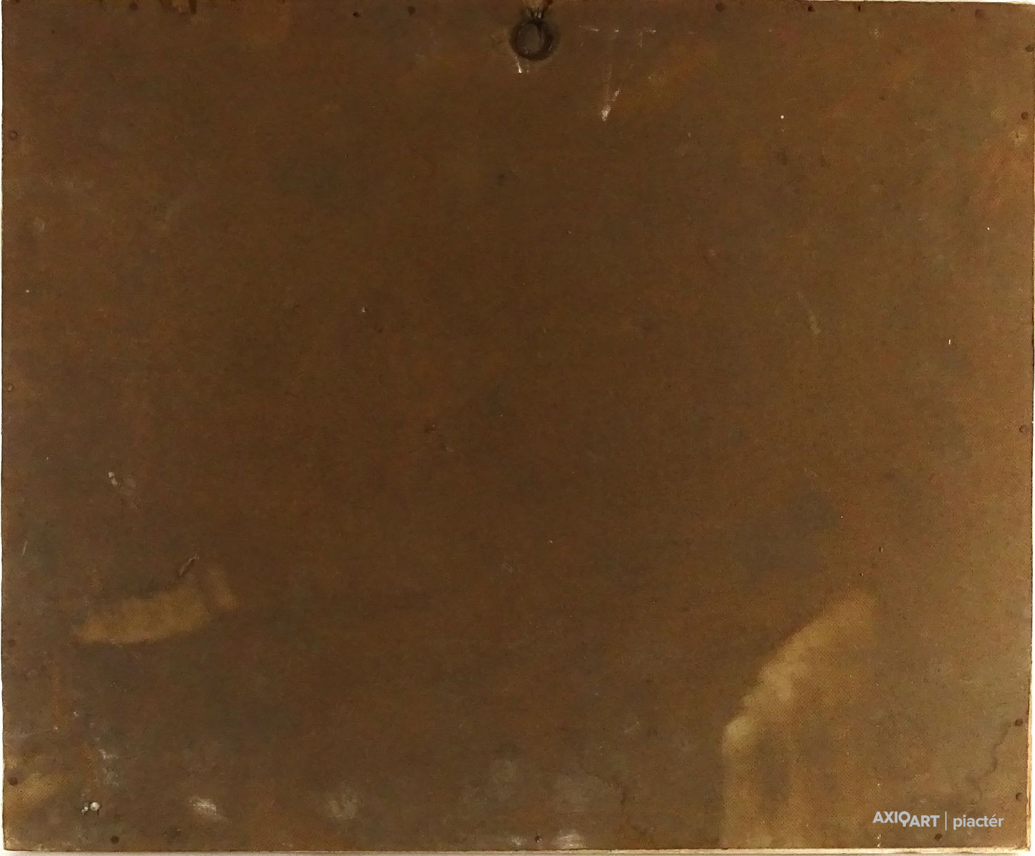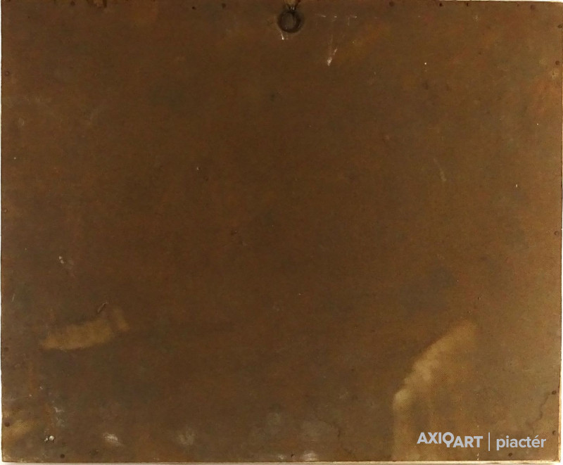 Olaj farost festmény üveglap mögött, képcsarnokos keretben. Akasztási lehetőséggel rendelkezik.