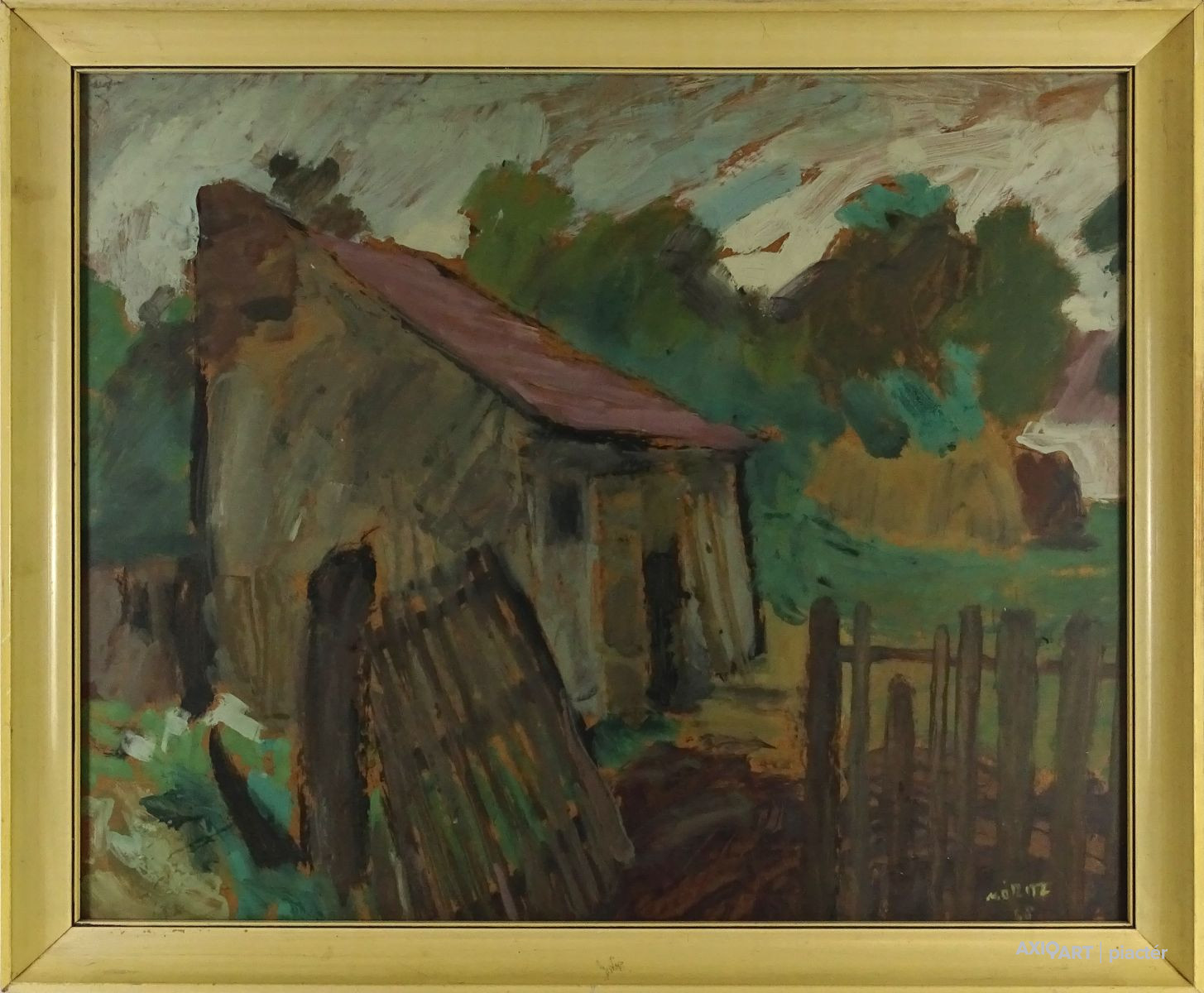 [FK2668/Bp301/4] A kép mérete: 50,5 x 80,5 cm keret nélkül. Készült: Olaj, Vászon A kép Moldován István (Kolozsvár, 1911) alkotása. Jelezve Jobbra lent "Moldován István" A festmény jó állapotban van. Keret: Ép A festmény hátoldalán a Képcsarnokvállalat raglapja láltható. Magyar festők és grafikusok életrajzi lexikona I-II. Festő. Tanulmányait Kolozsvárott, a Szépművészeti Főiskolán kezdte 1930-ban. A következő esztendőben a nagybányai Szépművészeti Iskolában Thorma János és Krizsán János korrektúráján képezte magát. 1931-ben a budapesti Képzőművészeti Főiskola hallgatója lett. Réti István, később Szőnyi István volt a mestere. Már mint főiskolás sok díjat és kitüntetést nyert. 1948-ban megkapta a római ösztöndíjat, de lemondva róla, Erdélybe ment. 1948-1950 között Erdélyben élt, és népművészetben gazdag vidékein festett. 1943-ban Kolozsvárott, 1946-ban Gyöngyösön, 1955-ben, 1959-ben és 1962-ben a Kulturális Kapcsolatok Intézetében, illetve a Csók Galériában rendezett egyéni bemutatókat. Ezen kívül több Európai országban, az USA-ban, Kanadában és Indiában is bemutatta munkáit. Eleinte sajátos atmoszférájú, lírai tájképeket, eleven színvilágú képmásokat festett, később mondernebb, erőteljesebben szerkesztett művekkel jelentkezett. A Pécsi Tanárképző Főiskola számára mozaikot készített. Erdély szerelmese volt. A székely népművészet gazdag formavilágának hatása döntő jelentőségűvé vált sokoldalú művészetében. Műv. díjak: a Szinyei Társaság elismerő oklevele, a Főváros festészeti-díja, "Kolozsvár a képzőművészetben" II. díj, állami ösztöndíj, római ösztöndíj, a Képzőművészek Szövetsége Észak-Magyarországi festészeti díja, SZOT festészeti díj. Több murális művet (mozaik) alkotott. A Magyar Nemzeti Galéria több alkotását őrzi. (M. L.: Műv. 1967/6, RI-NM) Magyar festők és grafikusok életrajzi lexikona I-II. Műgyűjtők és kereskedők kézikönyve Festő. Tanulmányait a kolozsvári Szépművészeti Főiskolán kezdte 1930-ban. A nagybányai szabadiskolában is megfordult. Itt Thorma János és Krizsán János korrektúráján képezte magát. 1931-ben Budapesten a Képzőművészeti Főiskola hallgatója lett. Réti István, később Szőnyi István volt a mestere. Már mint főiskolás sok díjat nyert. 1948-ban megkapta a római ösztöndíjat, de lemondva róla, Erdélybe ment. 1948-1950 k. Erdélyben élt, és népművészetben gazdag vidékein festett. 1943-ban Kolozsváron, 1946-ban Gyöngyösön, 1955-ben, 1959-ben és 1962-ben a Kulturális Kapcsolatok Intézetében, illetve a Csók Galériában rendezett önálló kiállítást. Ezen kívül több Európai országban, az USA-ban, Kanadában és Indiában is bemutatta műveit. Eleinte sajátos atmoszférájú, lírai tájképeket, eleven színvilágú képmásokat festett, később mondernebb, erőteljesebben szerkesztett művekkel jelentkezett. A Pécsi Tanárképző Főiskola számára mozaikot készített. Erdély szerelmese volt. A székely népművészet gazdag formavilágának hatása döntő jelentőségűvé vált sokoldalú művészetében. 1942-ben megkapta a Szinyei Társaság elismerését, és a Főváros festészeti-díjat,1943-ban elnyerte a "Kolozsvár a képzőművészetben" c. díjat. 1947-ben állami ösztöndíjat,1948-ban a római ösztöndíjat, 1972-ben a Képzőművészek Szövetsége Észak-Magyarországi festészeti díját kapta meg. A MNG több művét őrzi. (M. L.: Műv.-1976/6) Magyar festők és grafikusok adattára Tanulmányait Kolozsvárott a Képzőművészeti Főiskolán, majd Nagybányán Thorma János és Krizsán János irányítása mellett kezdte, 1931-től Budapesten megszakításokkal a Képzőművészeti Főiskolán Réti István és Szőnyi István növendékeként fejezte be. 1949-ben és 1950-ben ösztöndíjjal dolgozott Erdélyben, majd hosszú tanulmányutakra indult Nyugat-Európába, az Egyesült Államokba, s a Szovjetunióba. Először Kolozsvárott lépett a nyilvánosság elé 1943-ban, majd 1946-ban Egerben és Gyöngyösön, 1947-ben Miskolcon, 1948-ban Hatvanban, 1955, 1961 és 1981-ben a Csók Galériában, 1959-ben a KKI-ben, 1960-ban Nagykanizsán, 1963-ban Kiskunfélegyházán, 1966-ban Debrecenben, 1969 és 1975-ben Békéscsabán, 1971-ben a Mednyánszky Teremben, 1973-ban Gyöngyösön és Debrecenben, 1977-ben Egerben, 1979-ben Veszprémben, 1983-ban Miskolcon, 1984-ben Csepelen, 1986-ban a Vigadó Galériában rendezett önálló kiállítást. Külföldi kiállításai: Moszkva, Varsó, India, Szófia, Párizs, Bukarest, Belgrád, New York, Montreál és Toronto. Eddig közel kétezer színes táblaképet festett, de szívesen foglalkozik mozaikkészítéssel is. 1964-ben a Pécsi Pedagógiai Főiskola, 1968-ban a Salgótarjáni Kórház, 1969-ben a názáreti templom és 1970-ben a Videoton Vállalat díszterme részére mozaikot készített. - Erdély szerelmese. A székely népművészet gazdag formavilágának hatása döntő jelentőségűvé vált festészetében. Olyan formanyelvet alakított ki magának, amely színvilágában és summázó formaalakításában sajátos erdélyi zamat érződik, ugyanakkor korszerűen modern is konstruktivista stílusa. Munkásságát 1942-ben a Szinyei Társaság elismerésével és a Fővárosi festészeti-díjjal, 1943-ben Római-ösztöndíjjal, 1947-ben Állam ösztöndíjjal (Románai), 1963-ben a SZOT festészeti-díjával, 1972-ben a Képzőművészek Szövetsége Észak-Magyarországi festészeti-díjával tüntették ki. - Irod.: Bíró Béla: Kolozsváry Moldován István. Erdélyi Helikon, 1943.; Felvinczi Takács Zoltán: Kolozsváry Moldován István. Kolozsvár, 1943.; Dutka Mária: Magyar Nemzet, 1961.; Maksay László: Moldován István. Művészet, 1965.; D. Fehér Zsuzsa. Moldován István, Bp. 1971.; Theisler G