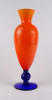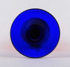 Látványos, szemkápráztatóan élénk színű, kék - sárga, anyagában festett, művészi, kézműves, fújtüveg talpas váza.