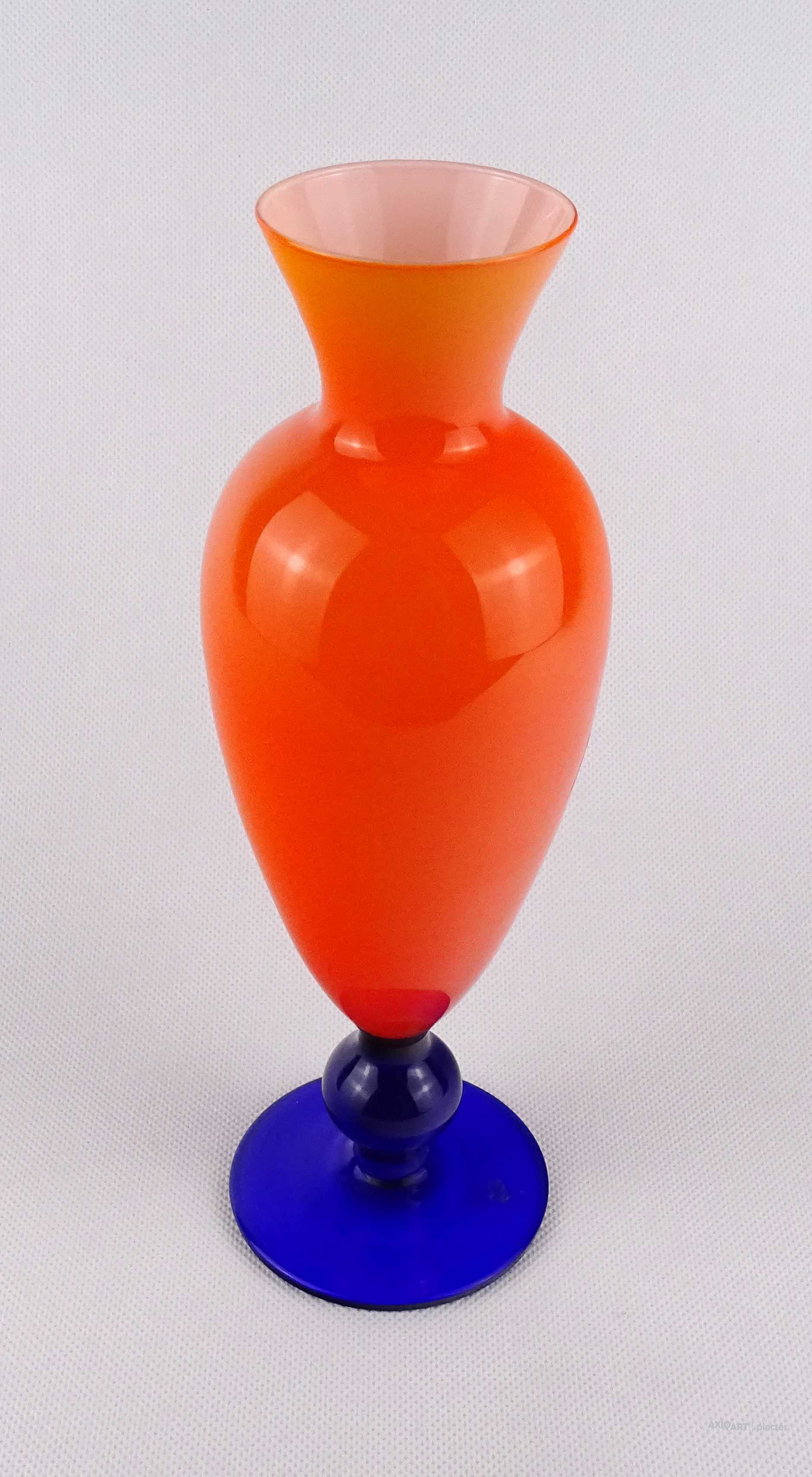 Művészi, festett, tango üveg talpas váza 25.5 cm
