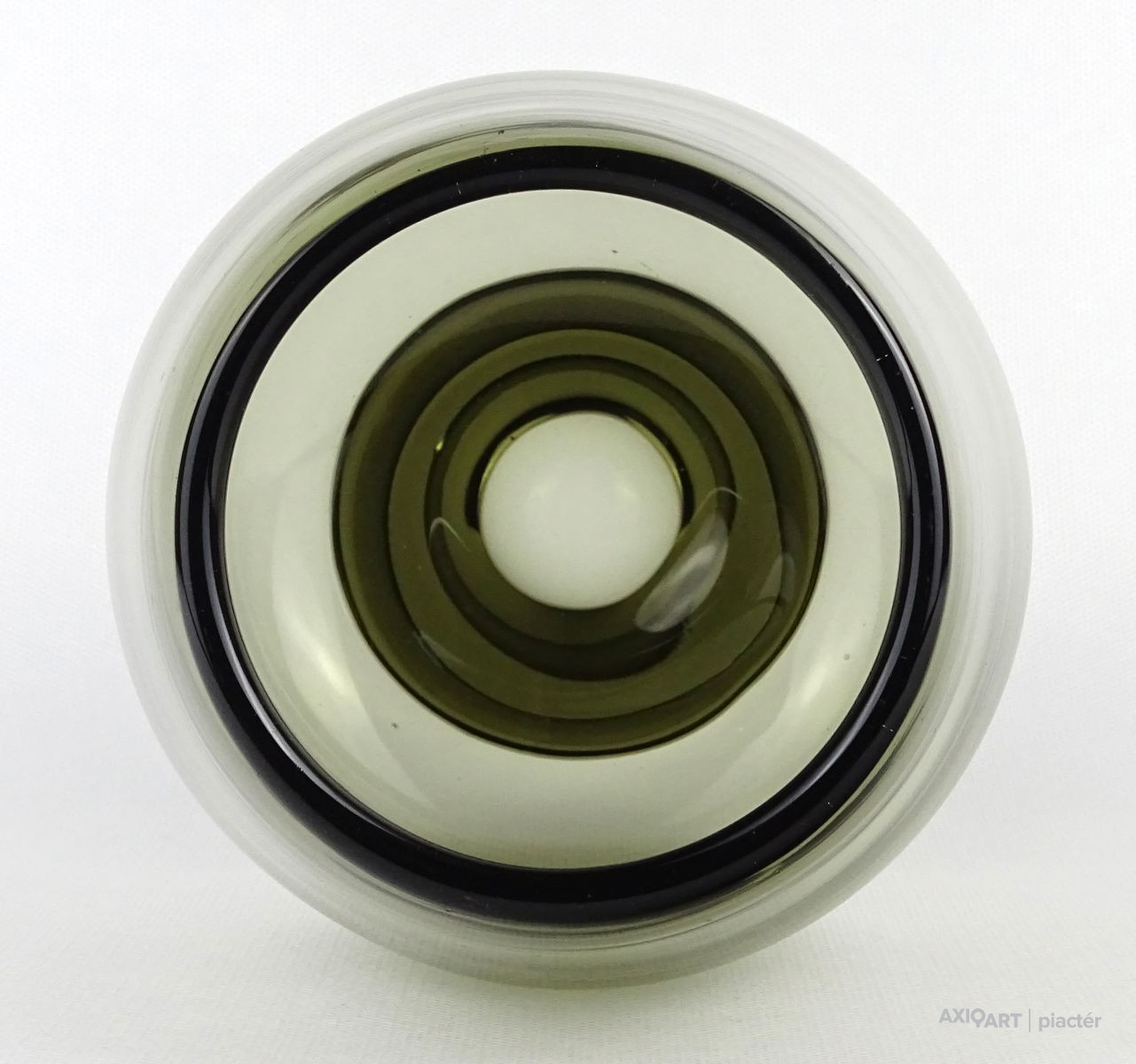 [1N037/X147] Retro füstüveg, öblös vastagfalú üveg váza, virágváza. Művészi üveg, formatervezett váza. Magasság: 18 cm Szélesség: 13.5 cm Súly: 1.225 kg