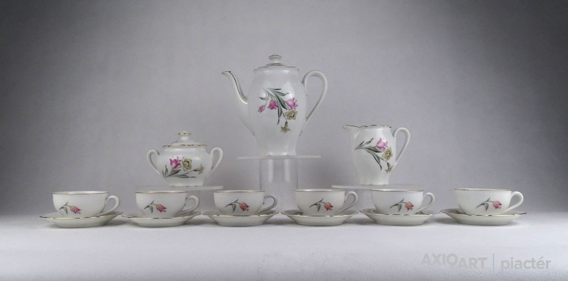 Szép állapotú, aranyozott, virág motívumokkal díszített porcelán kávéskészlet.
