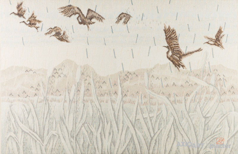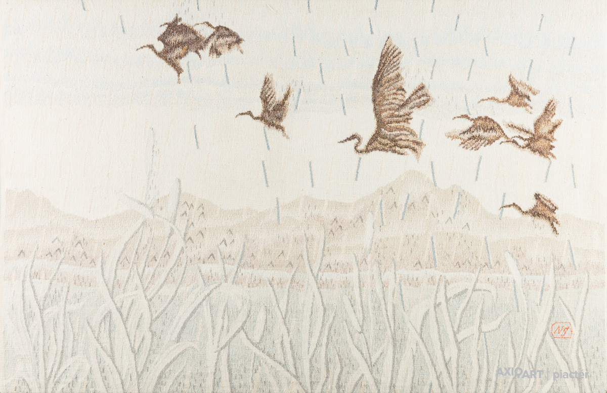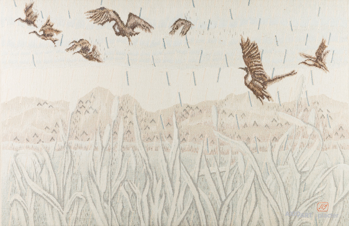 Nádas l-ll., egyenként, 1995 2x100x150 cm gobelin, gyapjú, selyem, 4,5-ös fölvetés; A Matáv Üdülő, Balatonkenese számára ; egykori megbízó: Zakariás András belsőépítész. A megadott méretek egy képre vonatkoznak.