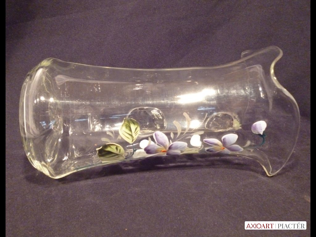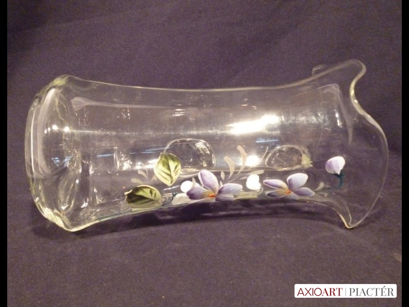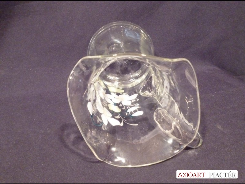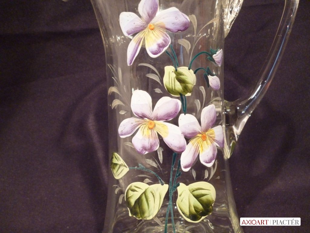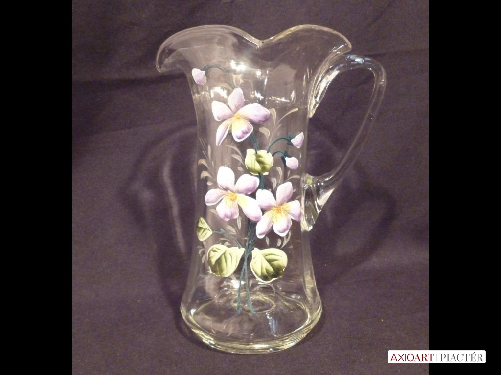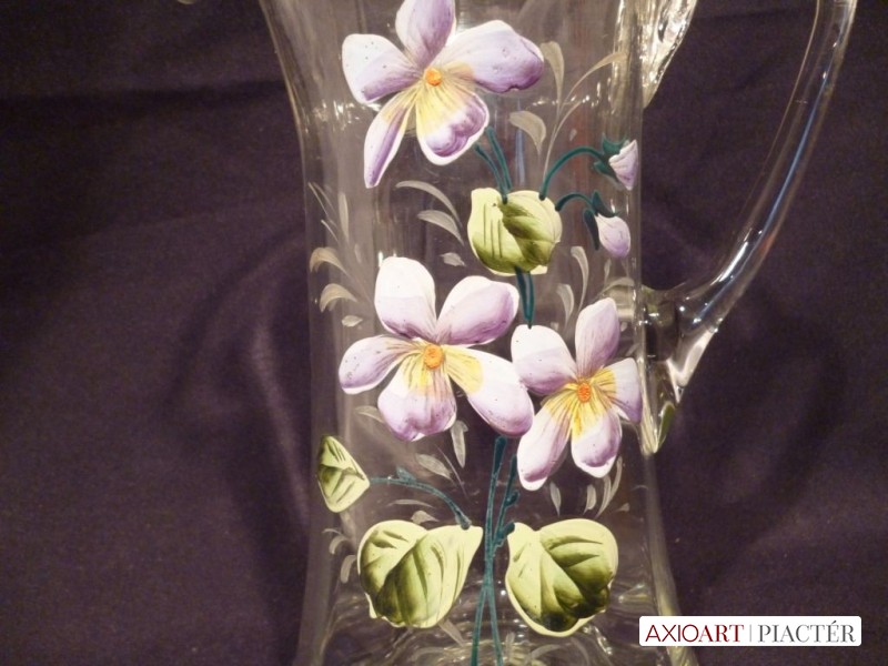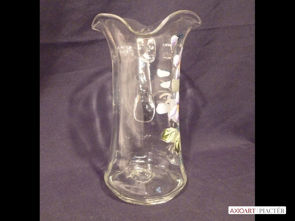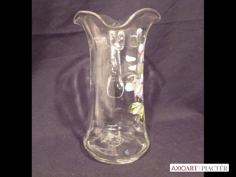 Nagyméretű antik hutaüveg kancsó festett
