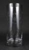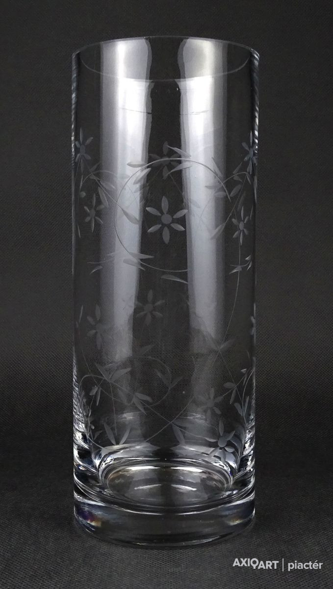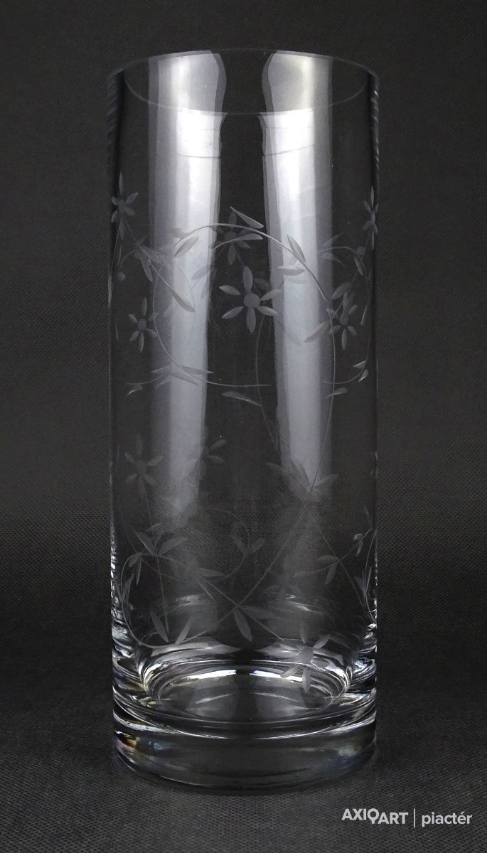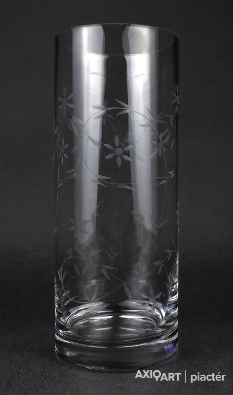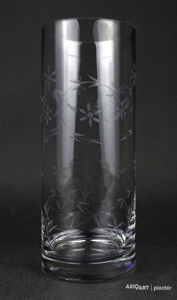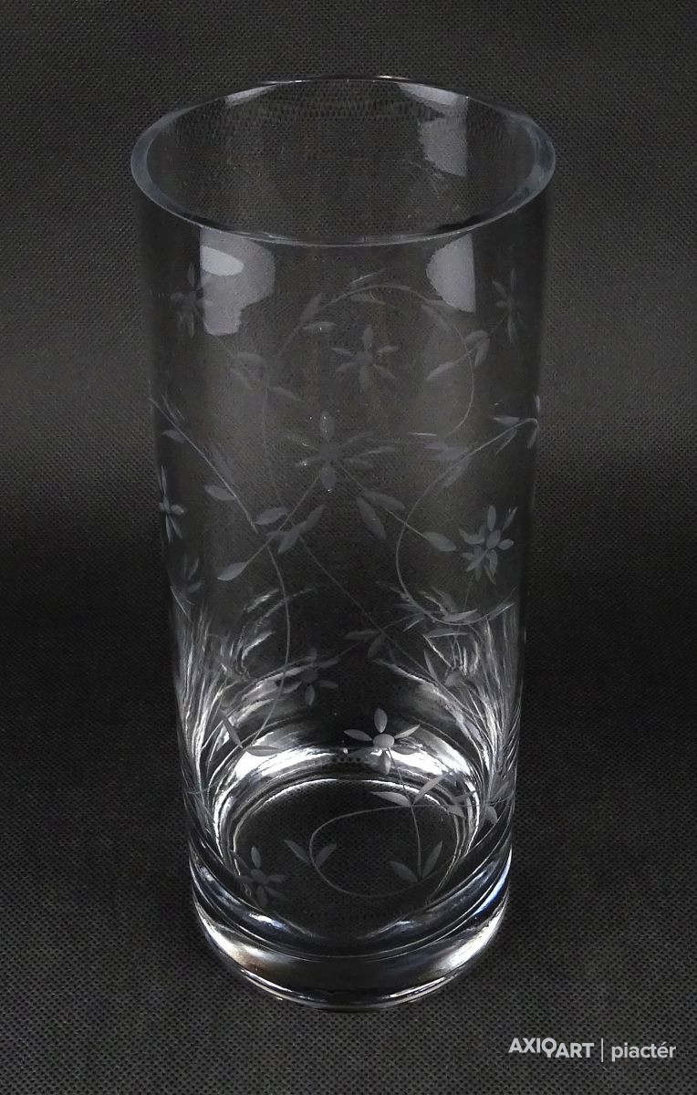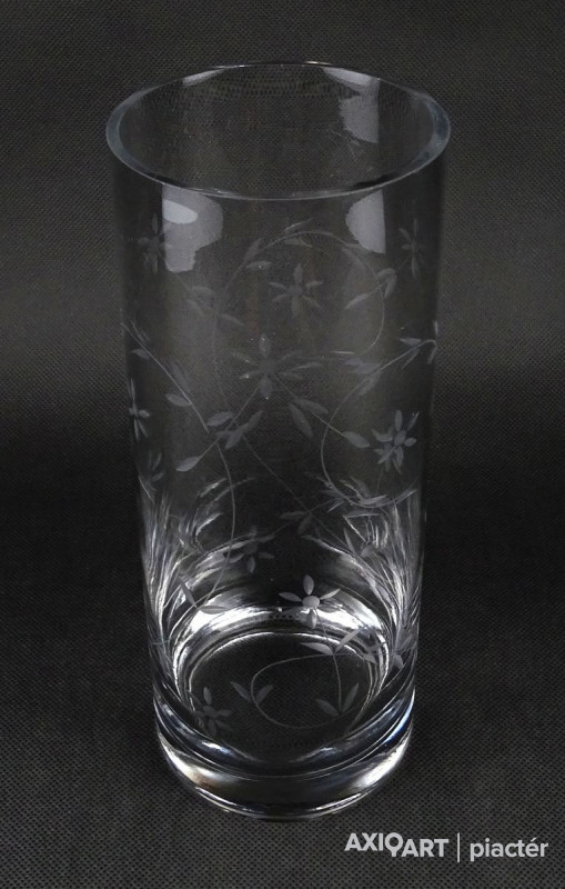 Hibátlan állapotú, nagy méretű, finom, szolid csiszolatokkal gazdagon díszített üveg váza, virágváza, csőváza.