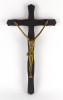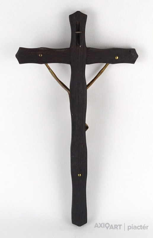 [1P709/X215] Hibátlan állapotú, nagy méretű fekete fa feszület, vallási kegytárgy, falra akasztási lehetőséggel. Rajta modern Jézus ábrázolás, réz Jézus szobor. Magasság: 41 cm Szélesség: 22 cm Súly: 0.49 kg