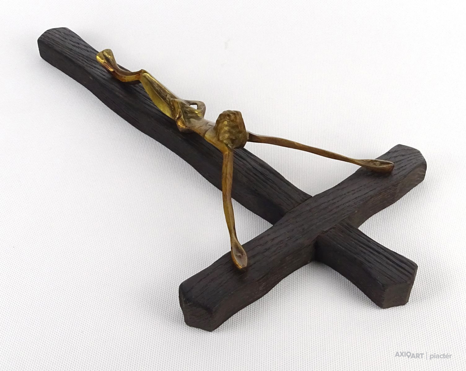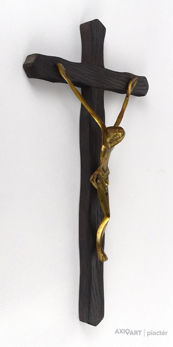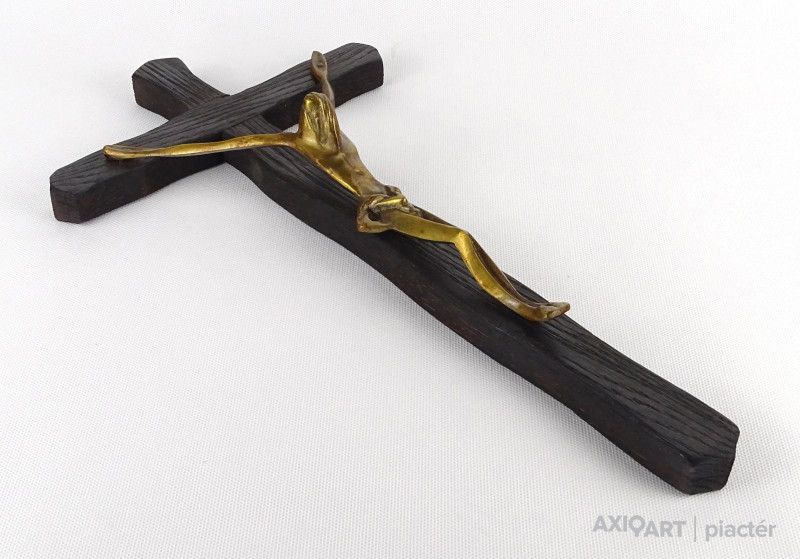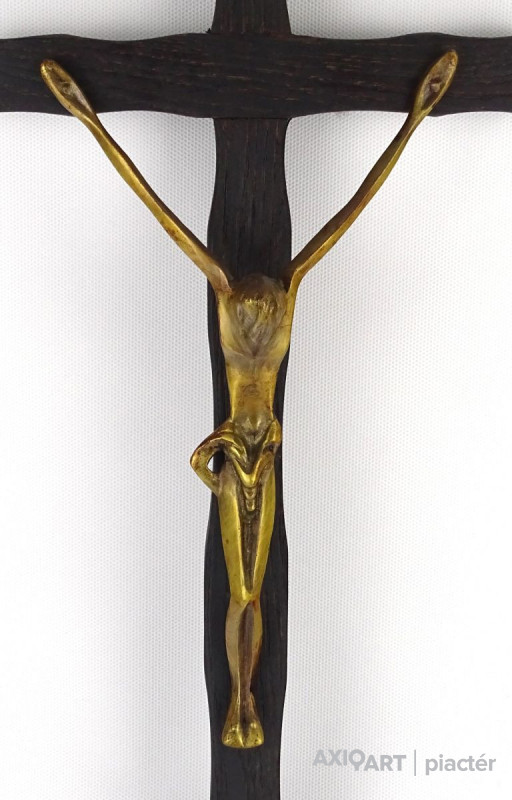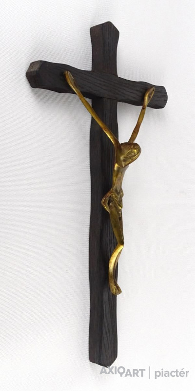 Nagyméretű fa kereszt feszület bronz Jézussal 41 cm