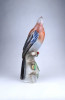 Régi hibátlan állapotú Herendi porcelán madár figura, Hecsedlis ágon ülő nagy méretű szajkó.