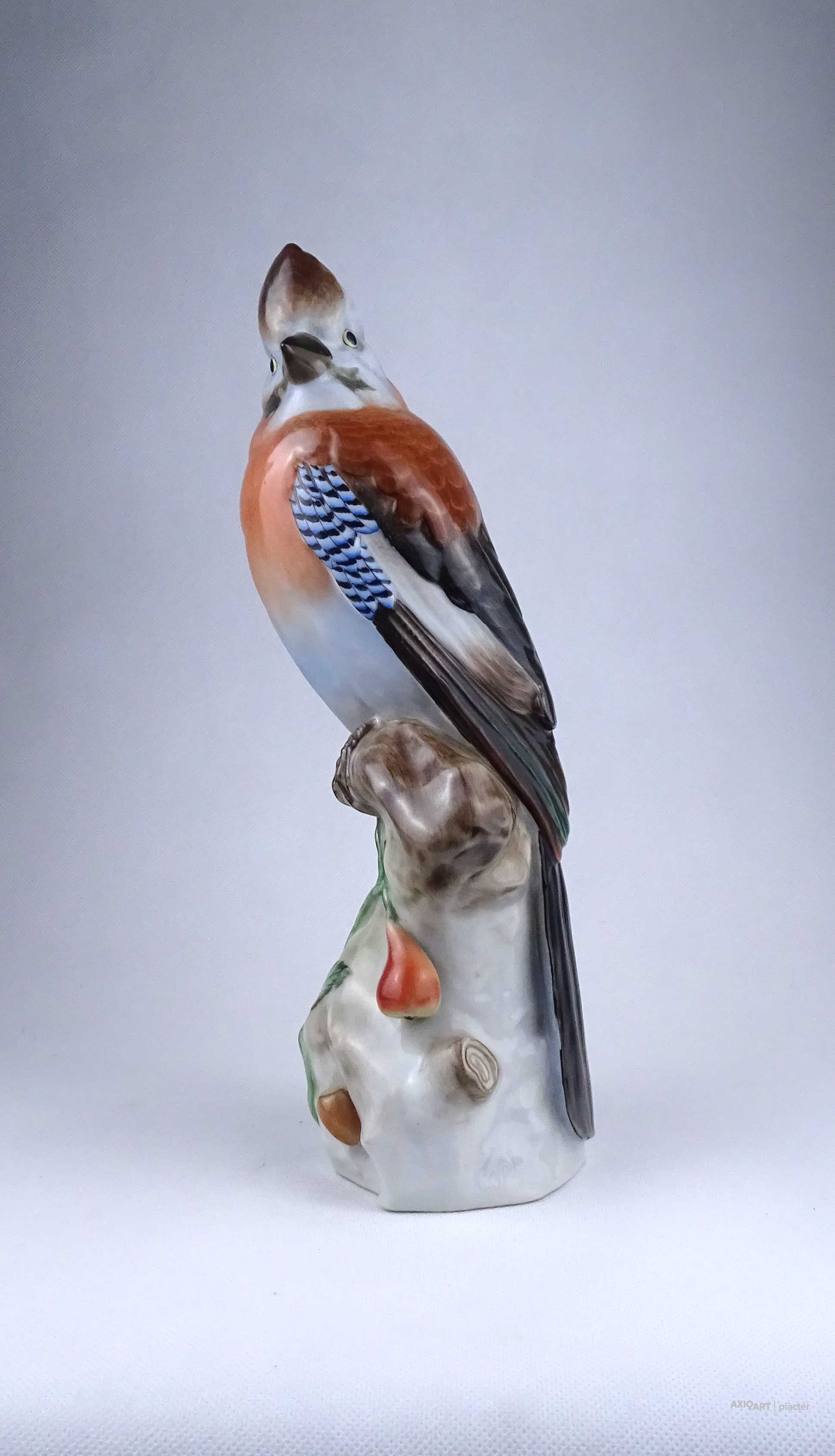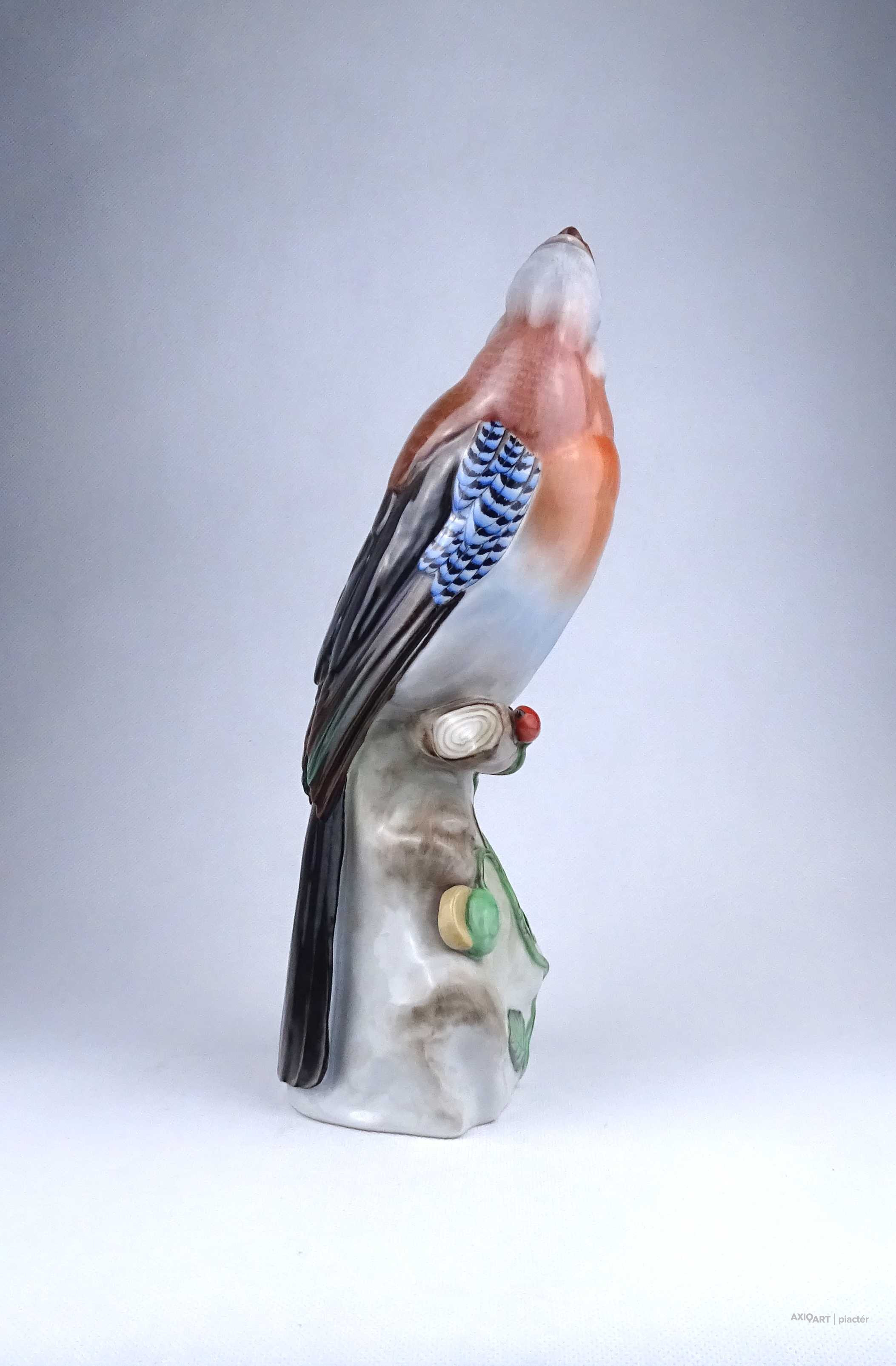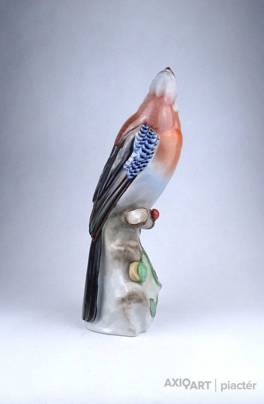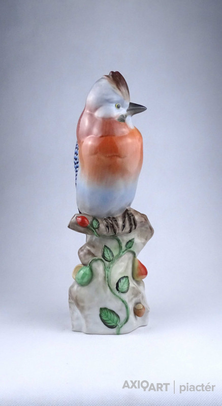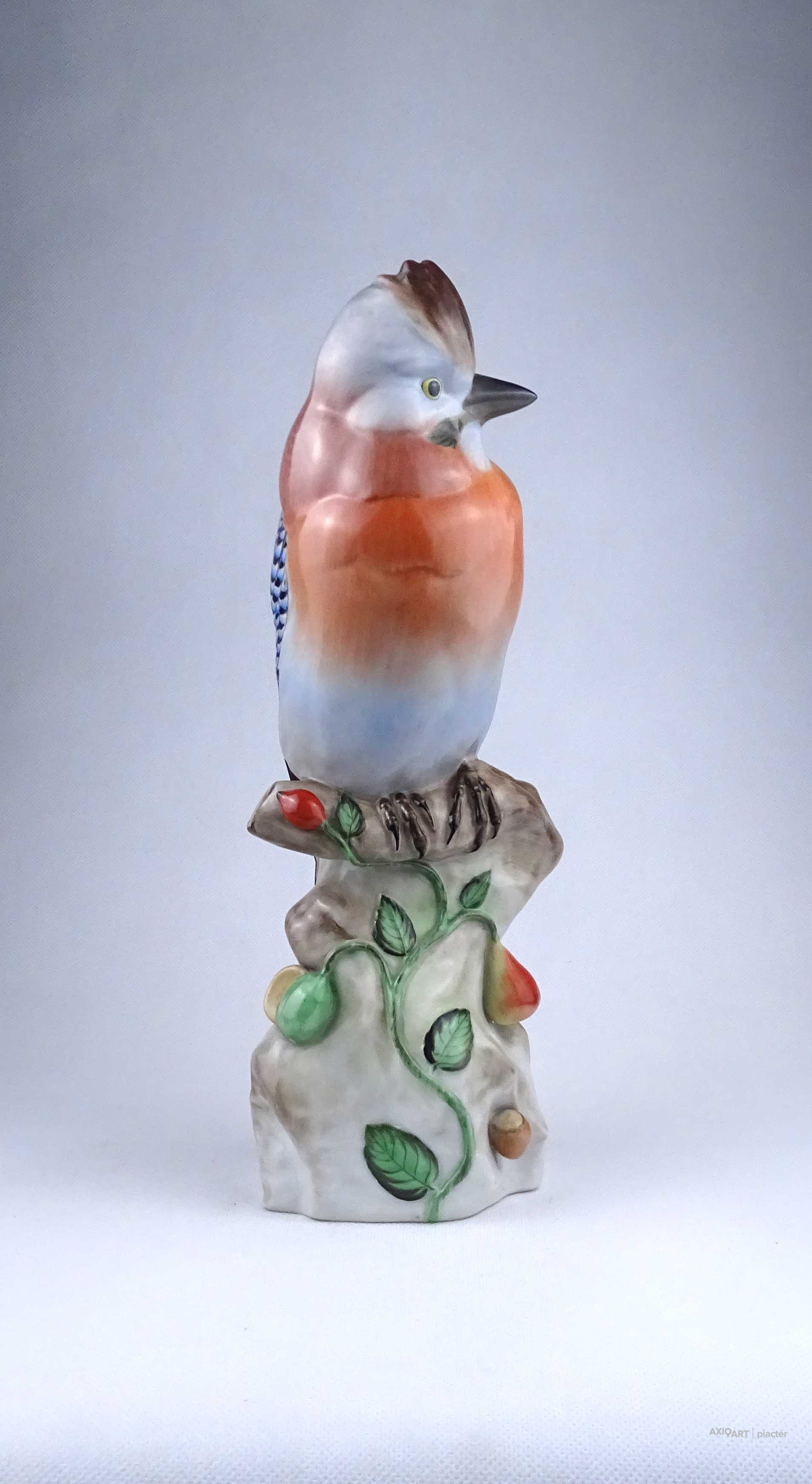 [1Z996/Z028] Régi hibátlan állapotú Herendi porcelán madár figura, Hecsedlis ágon ülő nagy méretű szajkó. Alján kék Herendi márkajelzés: HEREND HUNGARY Mélynyomással: HEREND Formaszám: 5072 Magasság: 33 cm Szélesség: 12.5 cm Hosszúság: 12.5 cm Súly: 0.895 kg