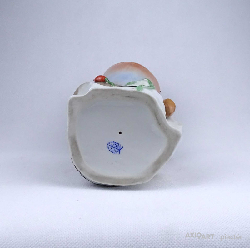 [2A009/X326] Hibátlan állapotú, jelzett, talapzaton gugoló, pisztollyal játszó, festett terrakotta puttó szobor. A talapzaton elöl karolt jelzés: BORY J. 1910 Magasság: 24.5 cm Szélesség: 11.5 cm Hosszúság: 12 cm Súly: 2 kg Bory Jenő (Székesfehérvár, 1879. november 9. – Székesfehérvár, 1959. december 20.)  Magyar építészmérnök, szobrász- és festőművész, egyetemi tanár, 1943-tól 1945-ig a Magyar Képzőművészeti Egyetem rektora. Leghíresebb alkotása a „magyar Tádzs Mahal”-ként emlegetett székesfehérvári Bory-vár. Felesége Komócsin Ilona (1885–1974) festőművész volt. A József Műegyetemen építészmérnöki oklevelet szerzett (1903). Stróbl Alajosnál három évig mintázni tanult, majd a Mintarajziskolában Székely Bertalan festőnövendéke. Németországba (1905), majd ösztöndíjjal Olaszországba ment tanulmányútra (1906–1907); Carrarában, Pablo Triscorinál, a márványfaragást sajátította el. Kiállító művész (1906-tól). Az Országos Magyar Képzőművészeti Főiskola r. tanára (1911–1920), a József Műegyetemen a szobrászat előadó tanára (1920-tól), a Képzőművészeti Főiskola rektora (1943-tól). Találmánya a pirobazalt nevű fekete kerámia. Az 1920-as évek elejétől a Székesfehérvár melletti Máriavölgyben építtette fel saját tervei alapján a Bory-várat betonból, neoromán stílusban. A plasztikai részek is tőle származtak. Néhány székesfehérvári vonatkozású érme is ismeretes.   forrás: intezet.nori.gov.hu, hu.wikipedia.org