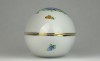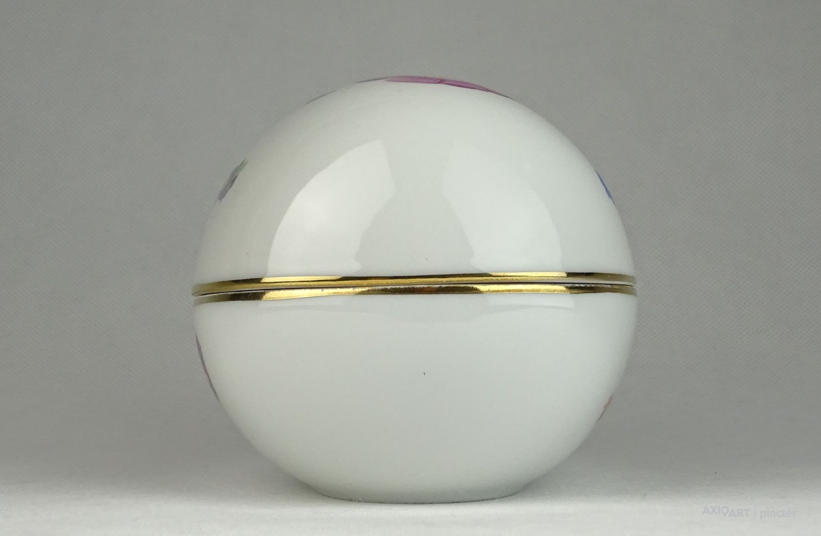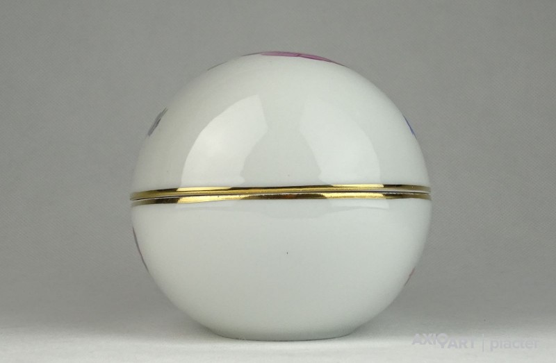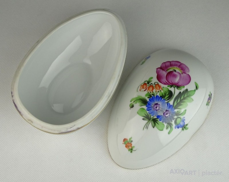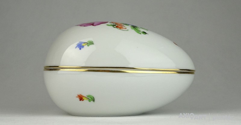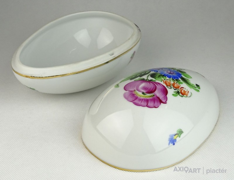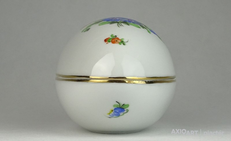Hibátlan állapotú, jelzett, extra nagyméretű, kézzel festett, virágmintás, aranyozott szegélyű Herendi porcelán gyűrűtartó, ékszertartó, bonbonier.