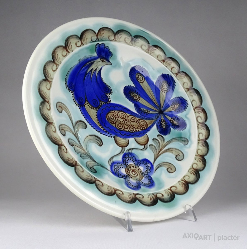 Hibátlan állapotú, nagy méretű, kézi festéssel díszített porcelán tál, dísztál, fali dísz tányér. Nagy méretű kakasos vagy páva díszes tál. Akasztási lehetőséggel rendelkezik.