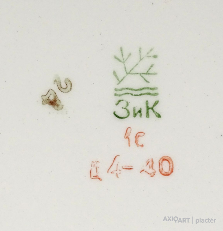 [1N513/X102] Hibátlan állapotú, kézi festéssel díszített, jelzett porcelán figura az 1950-60-as évekből, kettő darab: - 1 darab aranyhal (8.5 x 10 cm) - 1 darab őzike (15 x 4 x 9.5 cm) Aljukon a Kőbányai Porcelángyár jelzései: - KP HANDPAINTED HUNGARY - KP Súly: 0.22 kg Egy kis történelem Kőbányai Porcelángyár a hatvanas években, fekete-fehér képekből összeállítva, színezve; Fotó: ismeretlen   Az ős gyár Alois Miesbach X. Külső Jászberényi út 41. téglagyárának kibővítése révén jött létre. A termelés 1846.-ban indult meg és 1908.-ig kizárólag tégla, tetőcserép és keramit útburkoló kockákat gyártottak. A társulat a fajansz- és porcelángyárat 1908.-ban hozta létre. A termelés főként falburkoló áruk, műszaki és egészségügyi porcelánok készítésével folyt. A díszmű gyártás, bár erről pontos adatok nem állnak rendelkezésre, a húszas évek elejéig tarthatott és 1936.-ig a Porcelángyár újraindításáig megint csak ipari és egészségügyi árut termelt. 1936.-tól ismét beindult a díszműgyártás. A gyárat 1941.-ben hadiüzemmé nyilvánították, majd 1944.-ben súlyos bombatalálat érte. A termelés a szovjet parancsnokság alatt 1945.-ben indult be újra. 1949.-ben a Kőszénbánya és Téglagyár Társulat Pesten (azelőtt Drasche) államosításakor három téglagyárra, egy tűzállógyárra és a Drasche Porcelángyár Nemzeti Vállalatra osztották.   A gyár profilja műszaki porcelán, edény és díszműporcelán lett. 1949. május 31-től a Nagybátony-Újlaki Téglagyár telepén működött elektrokerámiai üzemet átadták a Porcelángyárnak. Ezzel egy időben megkezdődött Kőbányán a szteatit szigetelők és pirolit nevü hőtechnikai szigetelők gyártása is. Az elektrokerámiai (híradástechnikai) üzemet először a megszűnt edénygyár területére helyezték, később 1953 végén külön épületet kapott. Fotó: ismeretlen, 1975, a kémény mögött a magas Drasche lakóházon jól látszik a később épített felső szint, az utca felé a gyár épületén még csak a vörös csillag van, nincs ott a nagy "Finomkerámiaipari Művek", aminek a helyére a KŐPORC felirat került később. Fotó: archivum.mtva.hu, 1961, Liget utcai telephely 1950-51-ben új laboratórium épült a gyárban. A modern 5 szintes épületben az anyagvizsgáló kémiai laboratóriumon kívül itt kapott helyet a híradástechnikai fejlesztés-, és vizsgálólabor, valamint új nagyfeszültségű vizsgálólabor is. A gyárban a termelést gyáregységekbe szervezték. Így alakult ki a porcelán, a híradástechnikai és gépészeti gyáregység. A gépészeti gyáregységben a folyamatos karbantartási munkák mellett jelentős helyet foglalt el a gépfejlesztés, azaz új célgépek és kemencék tervezése és kivitelezése. A híradástechnikai gyáregység részére terveztek és készítettek számos speciális gyártó és szerelő gépet, automatákat. Fotó: ismeretlen, a massza üzem eleje Fotó: ismeretlen, a mai Porcelán utca a 70-es években 1951 Kőbányai Porcelángyár lett a gyár neve. 1954-ben a megszűnt Solus Csiszolókoronggyár kőbányai Liget utcai telepét a gyárhoz csatolták, ahol sajtolt porcelánszerelési cikkeket, porcelán díszműárut, kordierit-, és pirolit hőtechnikai termékeket állítottak elő. 1969-ben a Budapesti Porcelángyár nógrádverőcei telepét a gyárhoz csatolták, ahol laboratóriumi porcelánokat gyártottak. A Liget utcai telepet 1969-ben átadták a Hollóházi Porcelángyárnak, ezzel megszűnt a díszmű gyártás. A festést végző dolgozókkal együtt a tervező csapat is a Hollóházi Porcelángyárhoz került. A széntüzelésű, szennyező kemencéket bezárták. Fotó: ismeretlen, 1976(?), főbejárat A híradástechnikai gyáregységben a kísérleti és kutatómunka alapján megkezdték a csőkondenzátorok gyártását. Ezek égetésére előbb egy periódikusan működő, gáztüzelésű (Pb-gáz), majd egy folyamatos üzemű gáztüzelésű, tolólapos kemencét építettek. 1957-ben megkezdték a trimmer kondenzátorok gyártását. Úgyszintén eredményesen végződtek a lágymágnes-ferrit termékek gyártására megindított kísérletek is és ferrit gyártó üzem létesült. Fotó: ismeretlen, 1982 előtt 1959-60-ban jelentős beruházások kezdődtek. Megkezdődött a porcelán gyáregység rekonstrukciója. Ennek keretében újjáépítették, ill. korszerűsítették a nyersanyagtárolót és a porcelánmassza üzemet. 1970-ben sajtolómassza előkészítésére porlasztószárítási (atomizer) technológiát vezettek be. Fotó: ismeretlen, 1976(?) A gyár 1960-ban új telephelyet létesített Balassagyarmaton, ahol saját tervezésű és készítésű célgépekkel kondenzátor termékeket gyártottak. A IV. ötéves terv keretében Debrecenben és Bernecebarátiban létesült híradástechnikai üzem. Fotó: Bognár József - KŐPORC 1836-1988, 1982(?)   1982 Átnevezik KŐPORC Elektronikai Alkatrész és Műszaki Kerámiagyártó Vállalat névre a gyárat. A kilencvenes évek felé az elektronika-technikai fejlődés annyira felgyorsult, hogy a hagyományos termékek folyamatosan kiszorultak a piacról. Ez és a KGST piac összeomlása azt eredményezte, hogy a gyár fokozatosan megszűntetni kényszerült először a vidéki telephelyeit, majd Budapesten is megszűnt a híradástechnikai termékek gyártása. A porcelánszigetelő gyártmányok iránt is csökkent a kereslet, ezért a porcelán gyáregység átszervezésére is sor került. Fotó: ismeretlen, 1982 előtt, még a FINOMKERÁMIAIPARI MŰVEK felirat látható 1990 Megkezdődött a privatizáció. A minisztériumi felügyelet átkerült az Állami Vagyonügynökséghez. Az új vevő a termelést leállította és nem is kívánta folytatni. Az értékes berendezések jelentős része tönkrement, a kemencéket lebontották, fejle