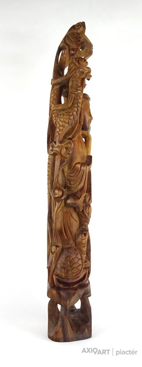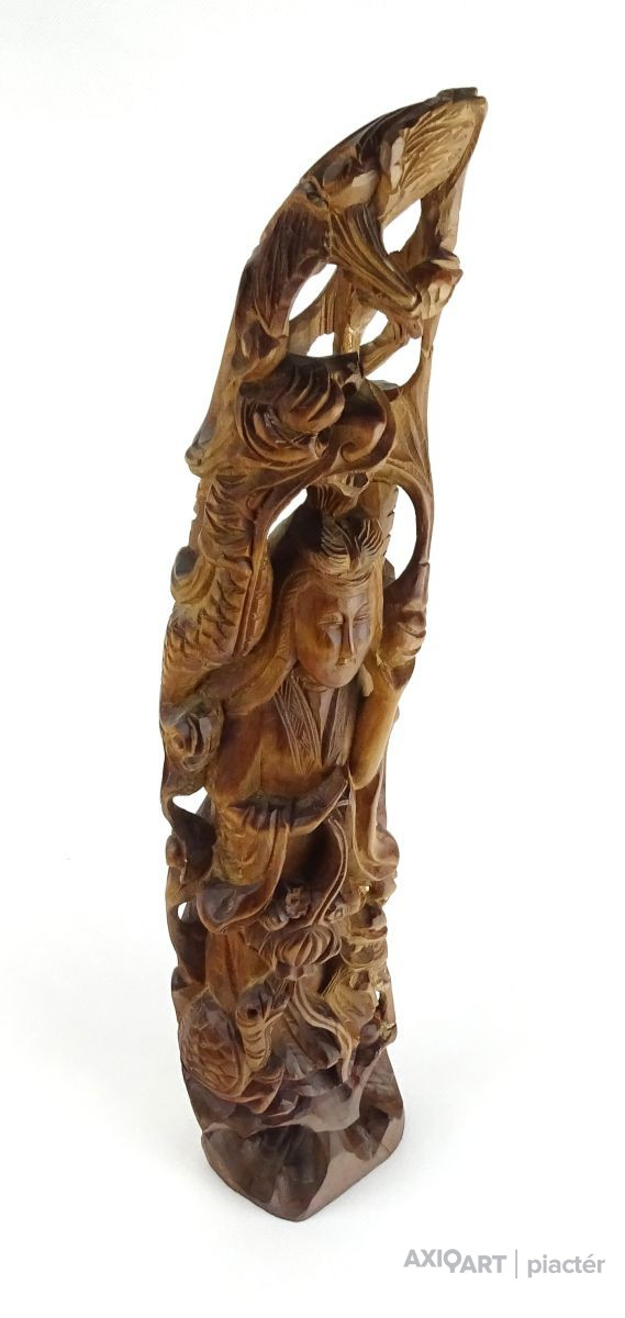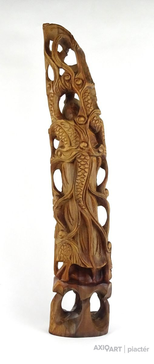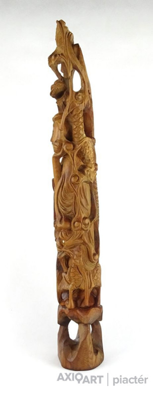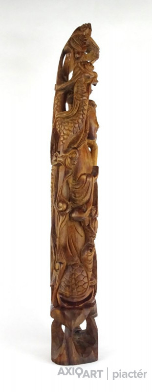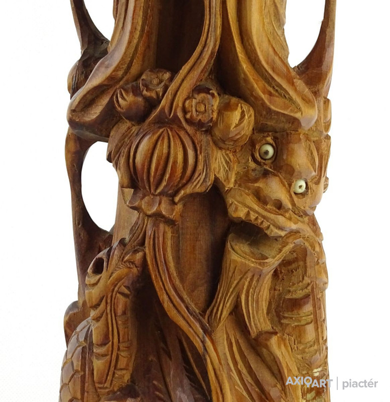 [1G389/X015] Egy fából faragott, nagy méretű, részletgazdag kínai fafaragás sárkánnyal. A szobor több helyen törött, ragasztott. Magasság: 59.5 cm Szélesség: 11 cm Súly: 1.995 kg