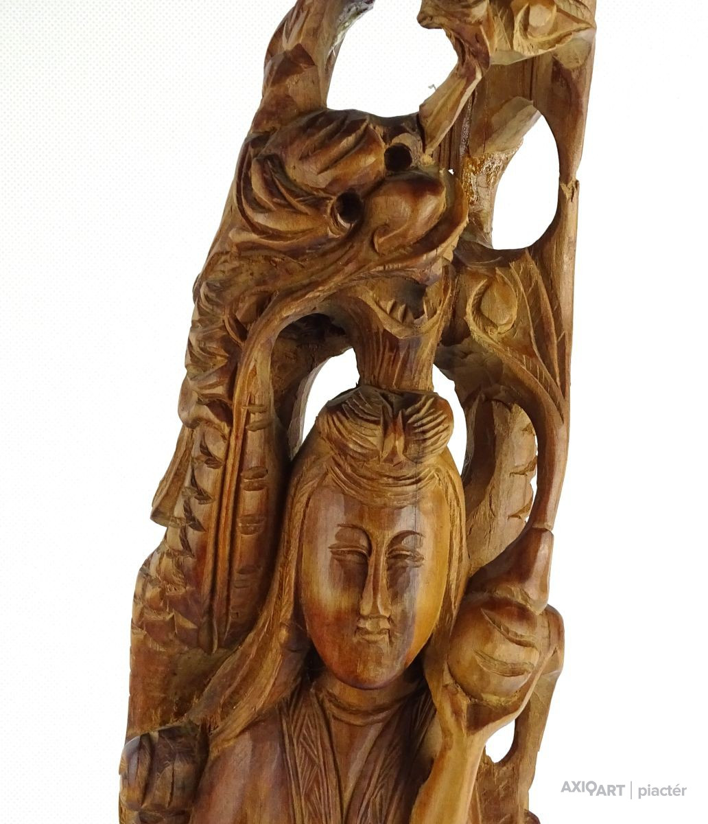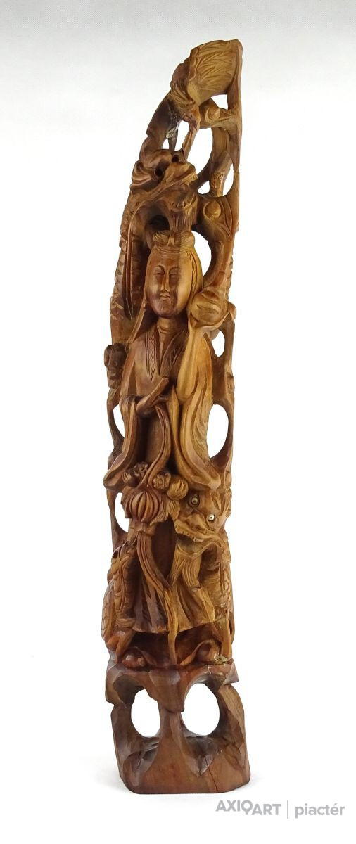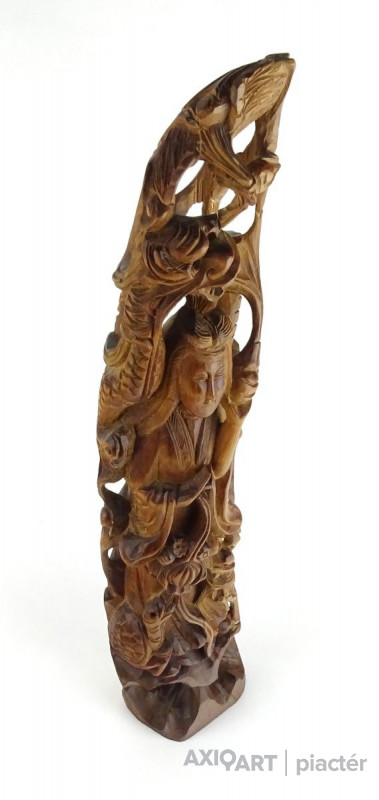 Egy fából faragott, nagy méretű, részletgazdag kínai fafaragás sárkánnyal. A szobor több helyen törött, ragasztott.