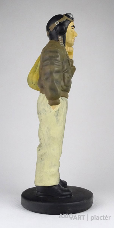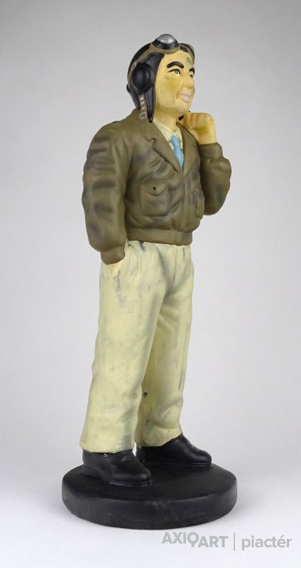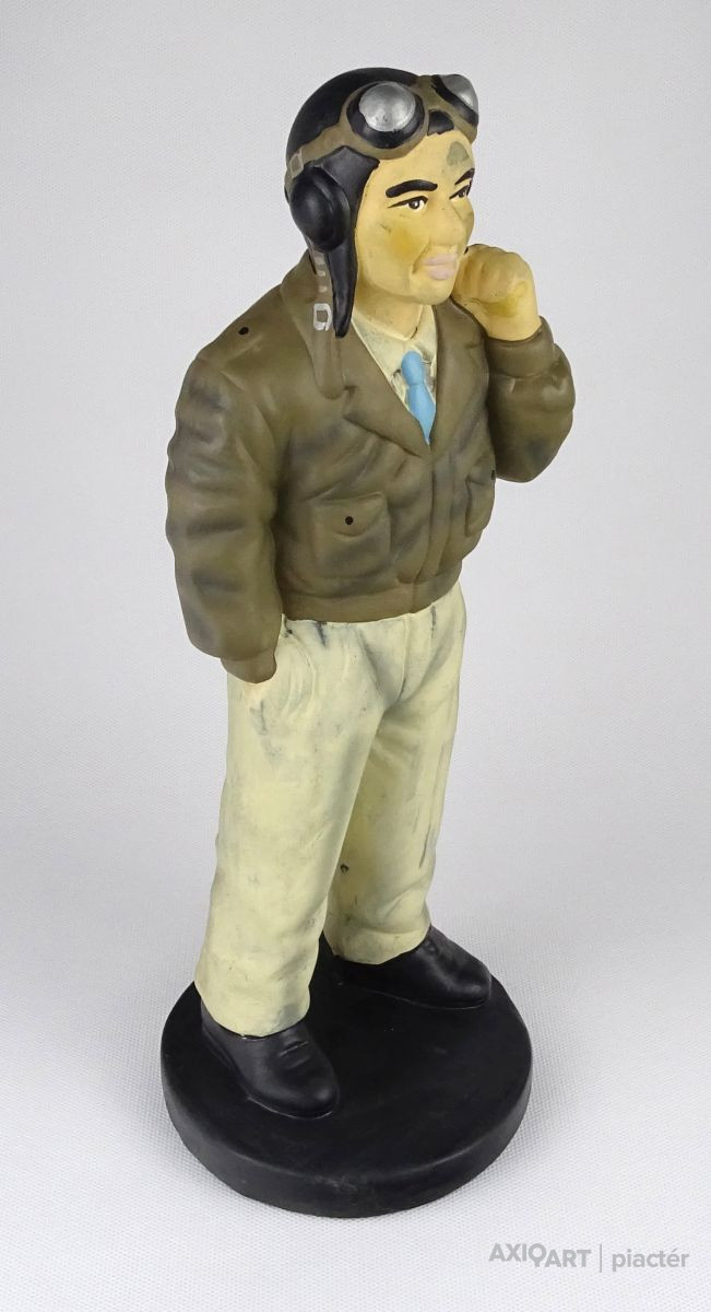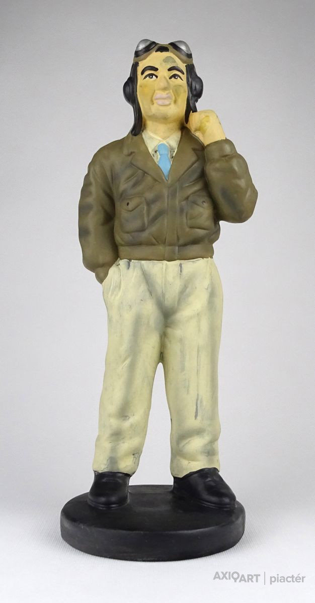 Nagyméretű kerámia repülőgép pilóta szobor militária 32 cm