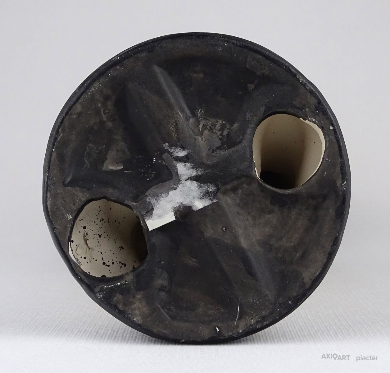 [1M055/X305] Retro hibátlan állapotú iparművészeti kerámia váza, díszváza. Alján jelzés: B. VÁRDEÁK Alján zsűri címke, rajta felirat: IPARMŰVÉSZETI VÁLLALAT ZSŰRISZÁM: 108154 69-995 Magasság: 10.5 cm Szélesség: 6.5 cm Hosszúság: 10.5 cm Súly: 0.35 kg B.Várdeák Ildikó keramikus Abony, 1929-05-13 Névváltozat: Bődy Oszkárné 1953-ban diplomázott a Magyar Iparművészeti Főiskolán Gádor István és Borsos Miklós növendékeként. 1971-ben és 1972-ben részt vett a Siklósi Kerámia Szimpóziumon. 1979: Faenza, aranyérem [Bődy Oszkárral]; 1980: Patikaedény-kiállítás, aranyérem, Gualdo Tadino. Kezdetben porcelán- és kerámiaedények tervezésével, kivitelezésével foglalkozott, majd kerti plasztikákat készített samottos agyagból. Jelenleg cserépkályhát, kandallót tervez és kivitelez, valamint régi épületkerámiák restaurálásával foglalkozik. Irodalom Mai magyar iparművészet. Kerámia, porcelán, üveg, Budapest, 1975. Egyéni kiállítások Egyéni kiállítások 1971 • Népház, Budapest-Óbuda 1980 • Faipari Szakiskola, Budapest 1992 • Angelika Cukrászda, Budapest. Válogatott csoportos kiállítások Válogatott csoportos kiállítások 1955 • Fiatal Iparművészek Kiállítása, Ernst Múzeum, Budapest 1955, 1959, 1965 • 2., 4., 5. Országos Iparművészeti kiállítás, Műcsarnok, Budapest 1958 • Magyar Iparművészek Kiállítása, Világkiállítás, Brüsszel 1959 • Magyar Képzőművésznők II. kiállítása, Műcsarnok, Budapest 1960 • Képzőművésznők nemzetközi kiállítása, Műcsarnok, Budapest 1963 • Modern magyar kerámia, Royal Festival Hall, London 1966 • Gádor István és tanítványai kiállítása, Ernst Múzeum, Budapest 1967 • Kerámia kiállítás, Vármúzeum, Siklós 1968, 1972, 1975, 1978, 1980 • I., III-VI. Országos Kerámia Biennálé, Pécs 1968, 1972, 1977, 1979 • Nemzetközi Kerámia Kiállítás, Faenza 1971, 1972 • Kerámia Szimpozion, Siklós 1972 • Edénykultúra, Műcsarnok, Budapest 1974 • Mai Magyar Iparművészet II., Iparművészeti Múzeum, Budapest 1975 • Jubileumi Iparművészeti Kiállítás, Műcsarnok, Budapest 1979 • Nemzetközi Kerámia Kiállítás, Sopot 1980 • Művészek az üzemekben, Magyar Nemzeti Galéria, Budapest 1982 • Magyar Kerámia, Palazzo delle Esposizione, Faenza 1983 • Nemzetközi Kerámia Kiállítás, Perugia – Gualdo Tadino 1995 • XX. századi magyar keramikusok. Válogatás az Iparművészeti Múzeum gyűjteményéből, Iparművészeti Múzeum, Budapest 1998 • In Memoriam Tornyai, Tornyai János Múzeum, Hódmezővásárhely 1998 • Őszi kerámia kiállítás, Palme Ház, Budapest Művek közgyűjteményekben Művek közgyűjteményekben Forrás: artportal.hu