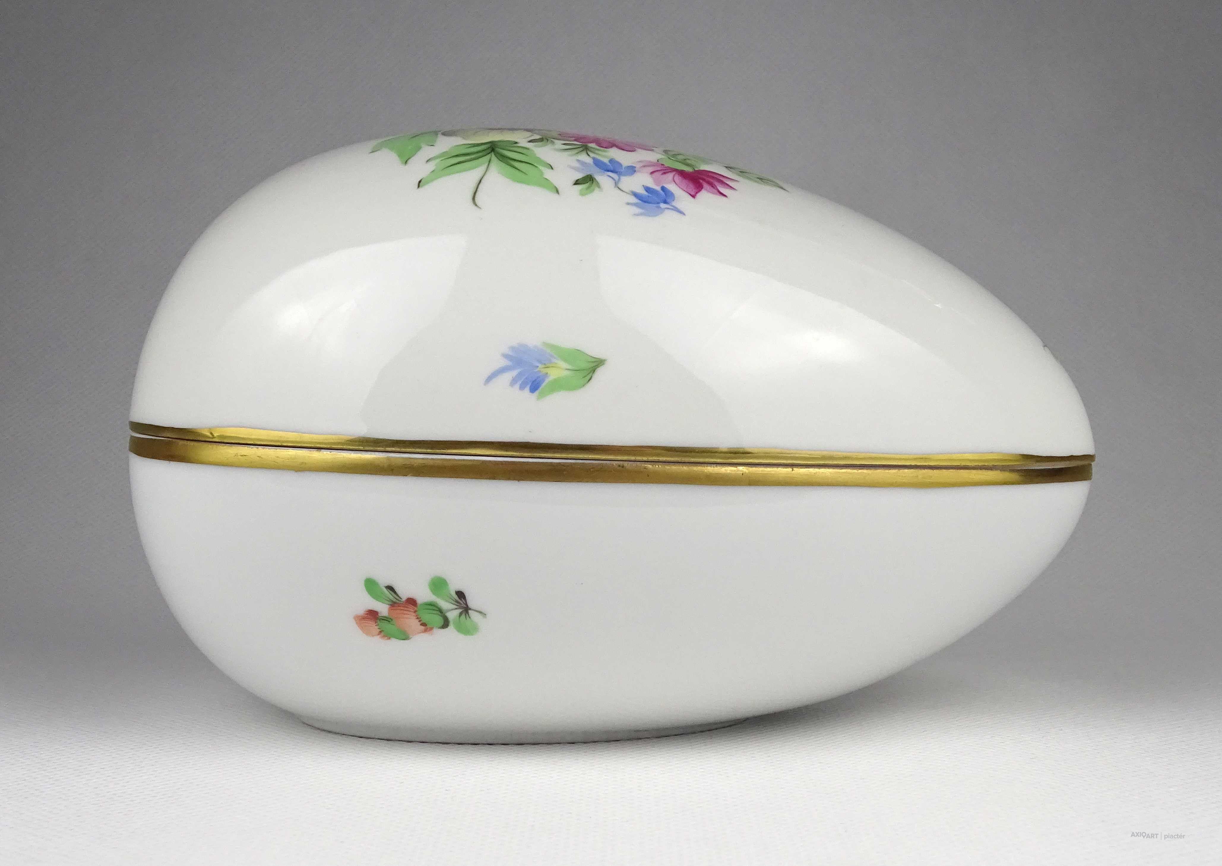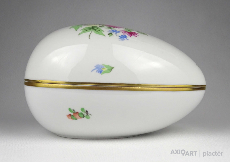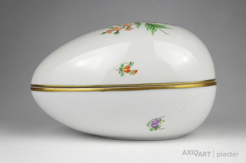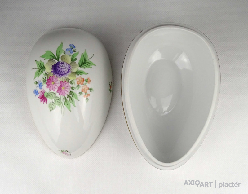 Hibátlan állapotú, hatalmas méretű Kitty mintás, tojás alakú Herendi porcelán gyűrűtartó, ékszertartó, bonbonier. Aranyozása is kopásmentes, ajándékozható állapotban van.