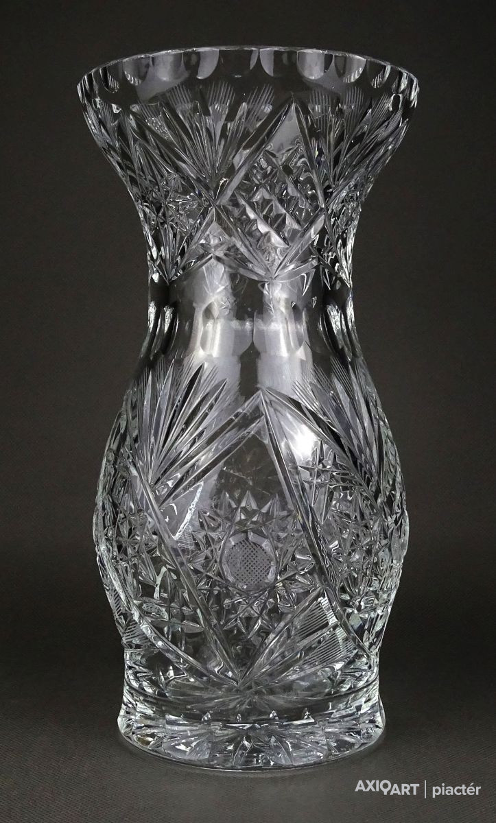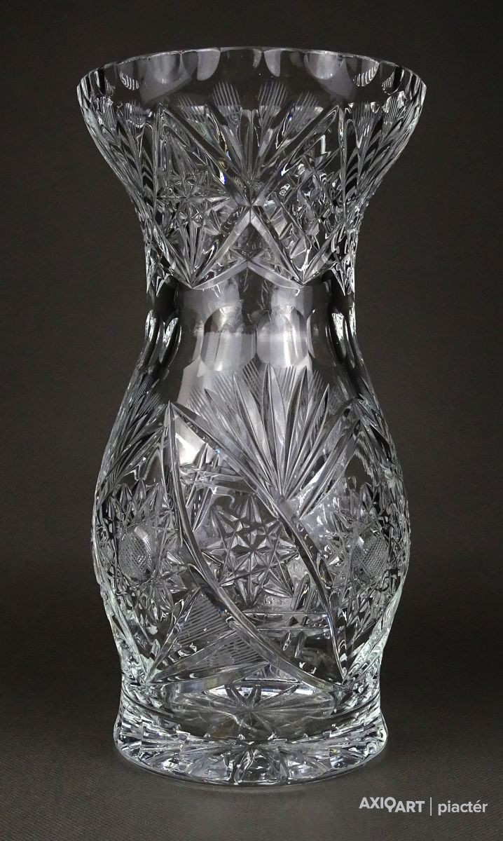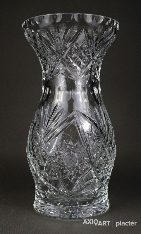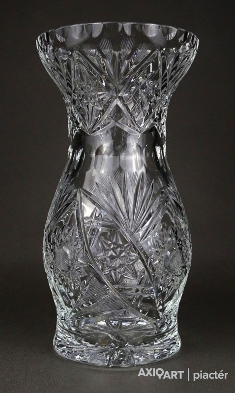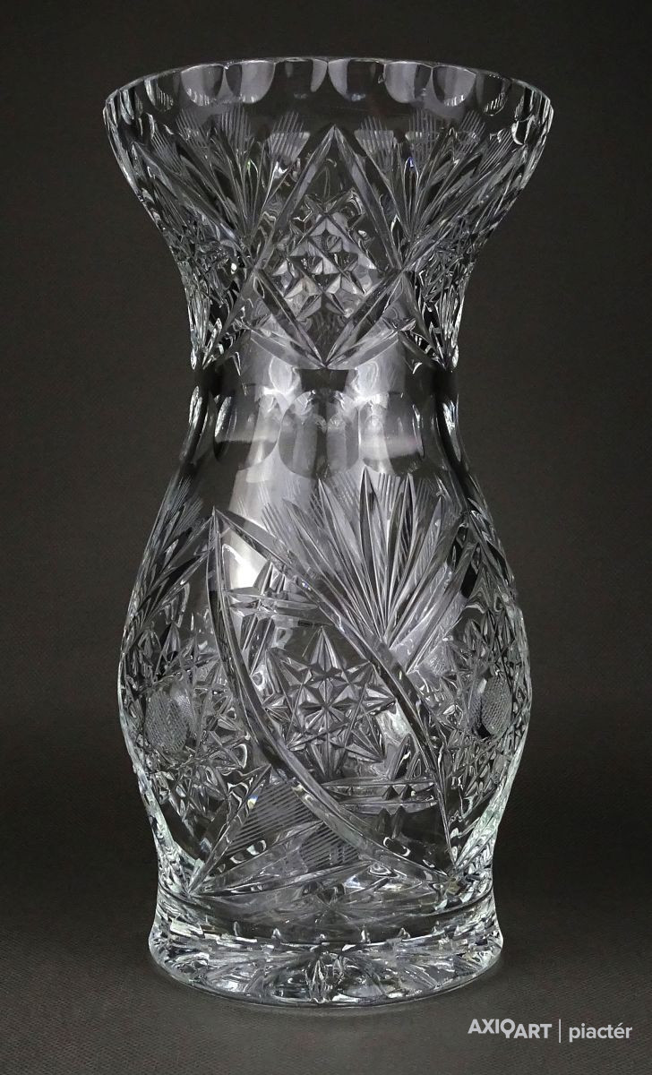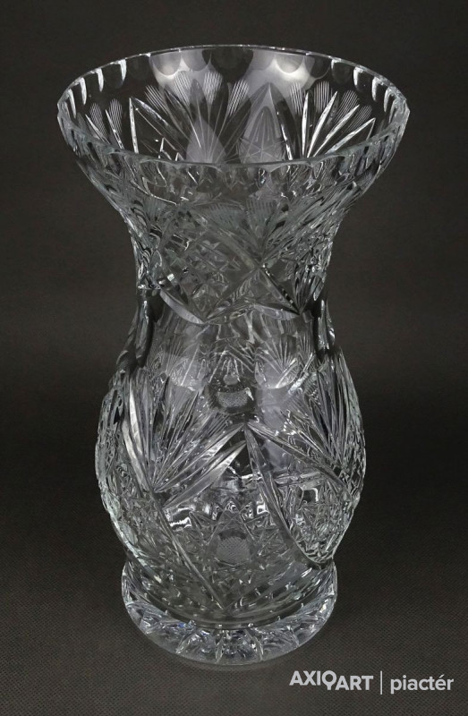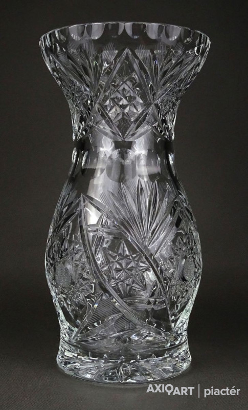 Hibátlan állapotú, vastagfalú, nehéz, nagy méretű, gyönyörű, csiszolatokkal díszített kristályváza, díszváza.