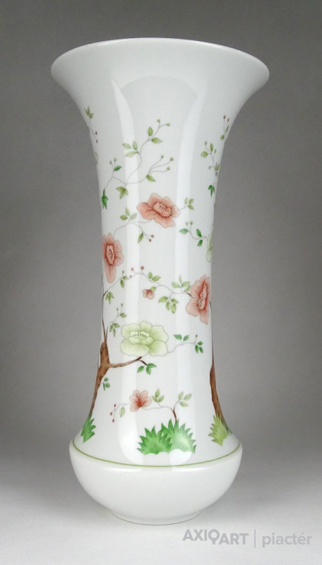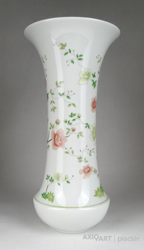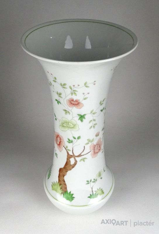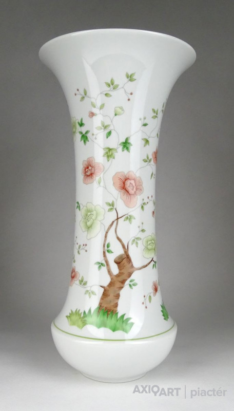 Hibátlan állapotú, gazdagon díszített, ritkán előforduló nagy méretű, kézzel festett jelzett Hollóházi porcelán váza.