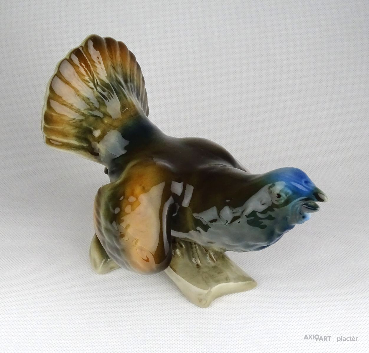 Hibátlan állapotú, jelzett Royal Dux porcelán fajdkakas figura.